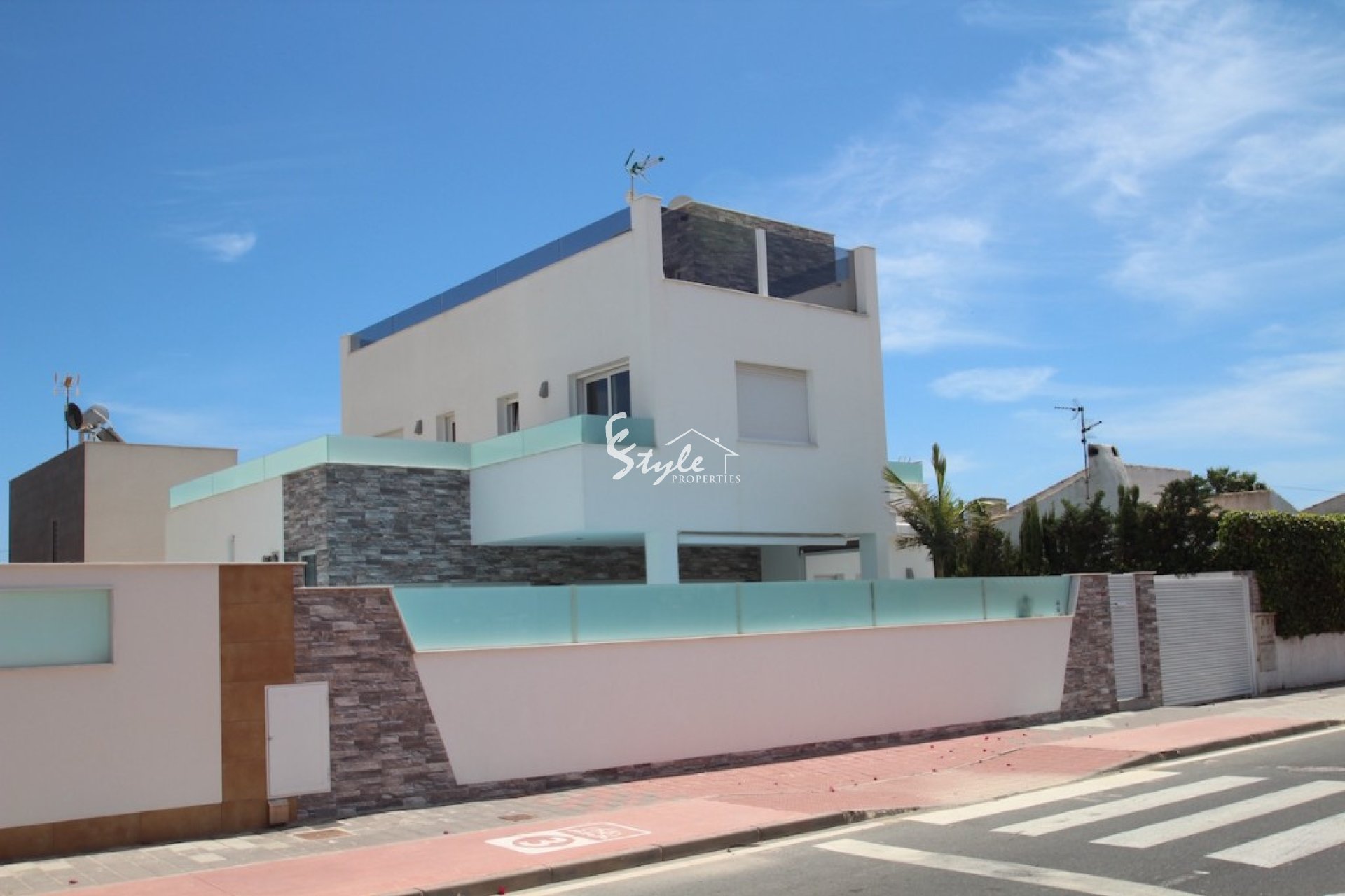 We have for sale this beautiful villa with its own magnificent pool. The house is located near the sea, very close to the beaches of the Mediterranean Sea. The 147m2 of living space is distributed on two levels and the basement that is developed and used completely as a garage and multipurpose room, including a separate office space (all together 129m2). On the ground floor you can enjoy a nice large living room, open and fully equipped kitchen with access to the terrace. From the kitchen you have an access to the outside and to the summer kitchen. House in total has 3 bedrooms with elegant fitted wardrobes and 3 bathrooms and are equipped with automatic blinds. All rooms are air-conditioned and the living room is equipped with infrared heaters. The garden offers beautiful terraces around the house and a southwest-facing pool with midday and afternoon sun.