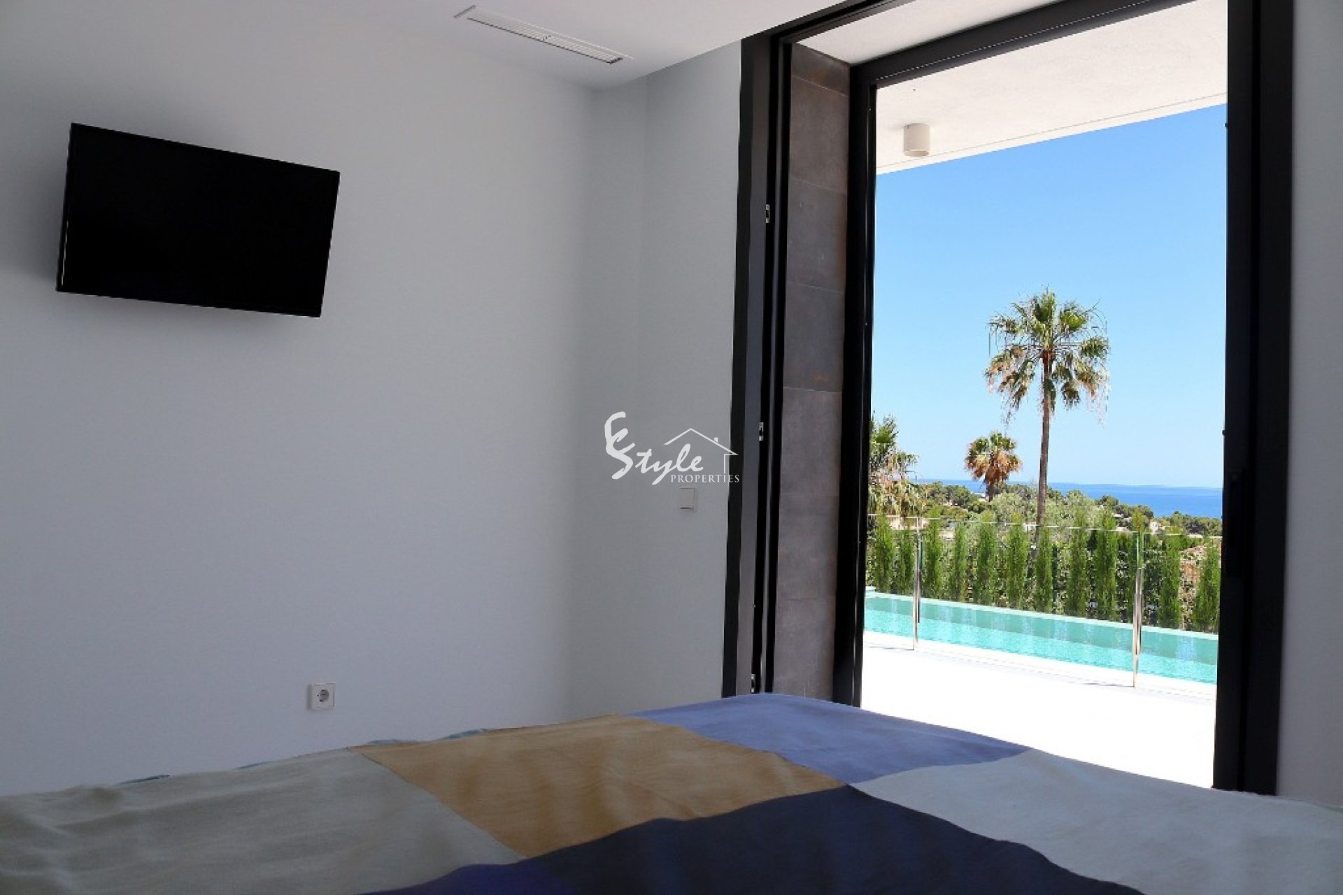 The house has 4 bedrooms, 3 bathrooms, 2 toilets, a living room with impressive views, a separate dining room, an open kitchen with panoramic windows, a laundry room, a storage room and a large terrace with impressive sea views. Outside there is a beautiful terrace overlooking the huge private pool with relaxation area. The house will be delivered with underfloor heating, smart alarm system, installed kitchen appliances and all equipment.