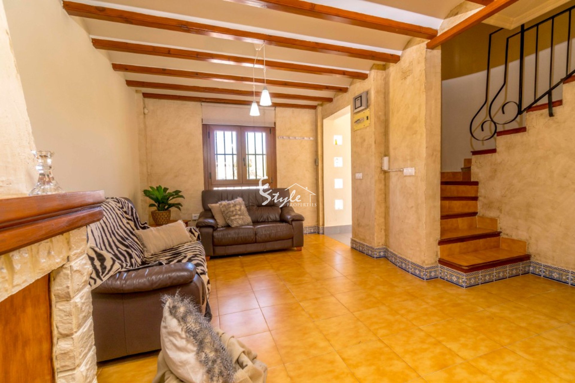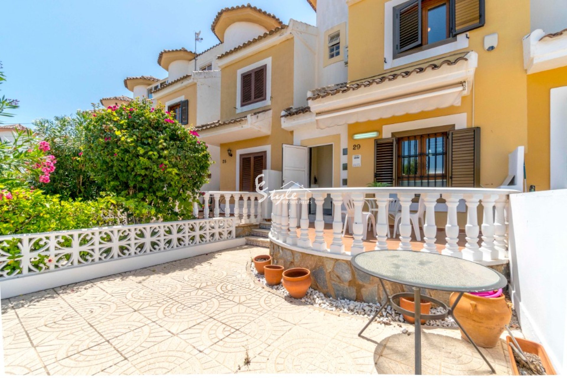We sell semi-detached duplex with private garden located in Playa Flamenca, 1800 m from the sea and beach. The house is distributed over 2 floors. The house consists of a porch, living-dining room, open kitchen with electrical appliances, 3 bedrooms with fitted wardrobes, one with lovely terrace, 2 bathrooms and private solarium. The house is in perfect condition and ready to move in, it is furnished and perfect both for living all year round and for rent.