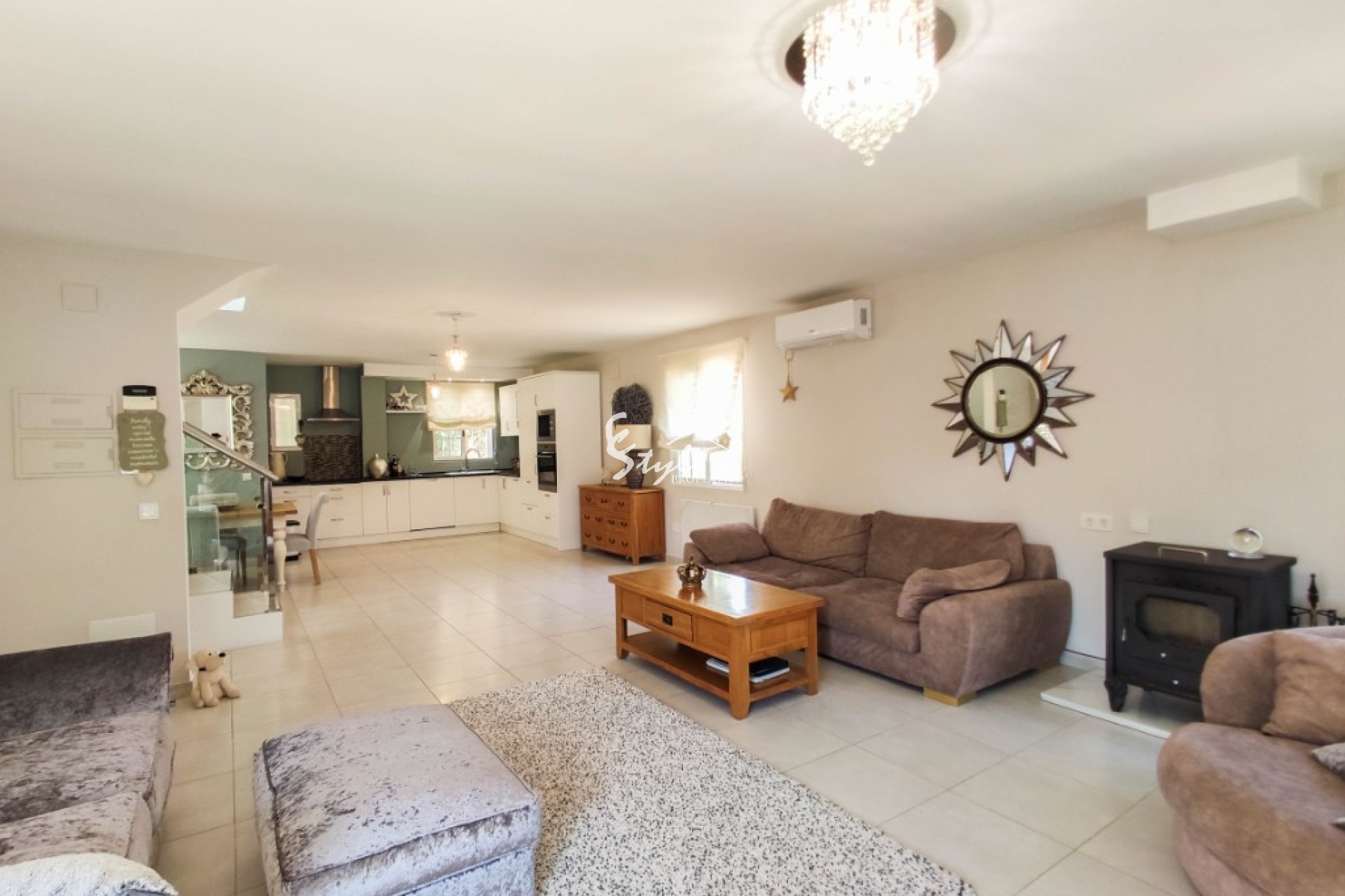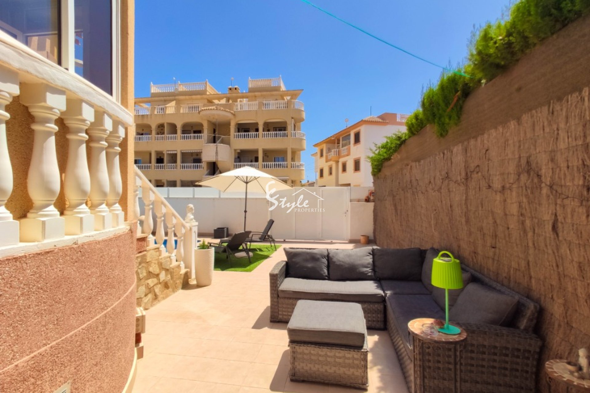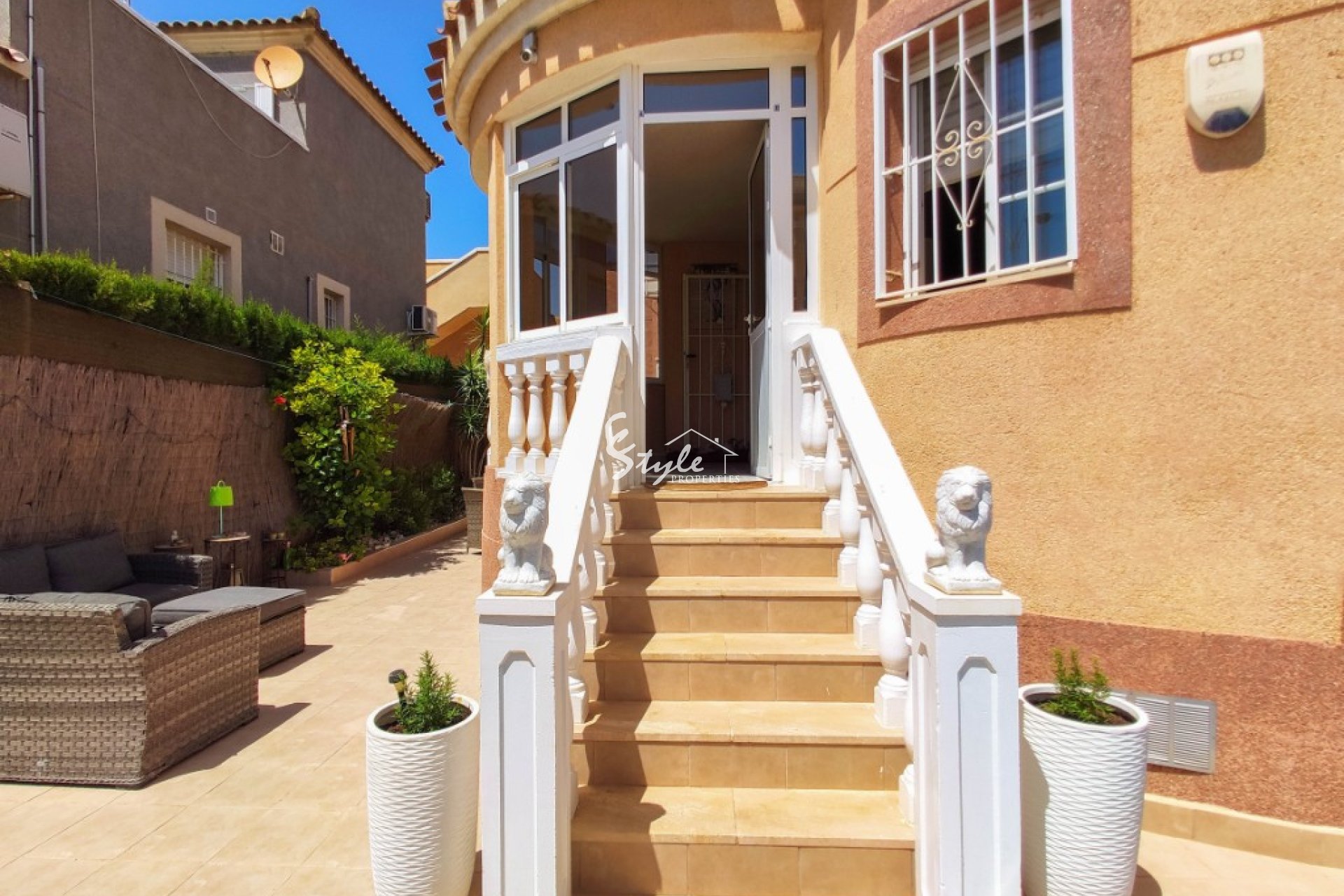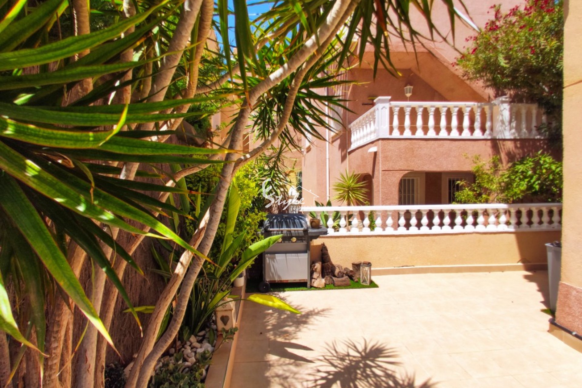 We have beautiful detached villa for sale in Playa Flamenca. The house is located near the sea, close to the beaches of Orihuela Costa and has private plot with lovely gardened areas, palm trees, nice pool, and barbeque area. Property with an area of 120 m2 has 4 bedrooms(2 in the basement, 2 on the first floor) and 2 bathrooms, large living/dining room, open style kitchen, porch, and terrace with surrounding views of the seafront and garden areas. The house is sold with furniture. Ideal to live all year around or spend a summer vacation.