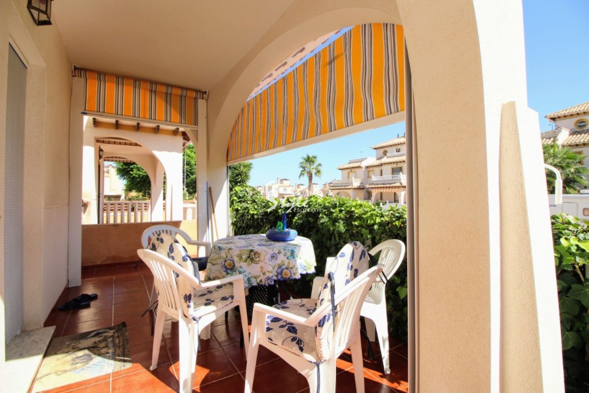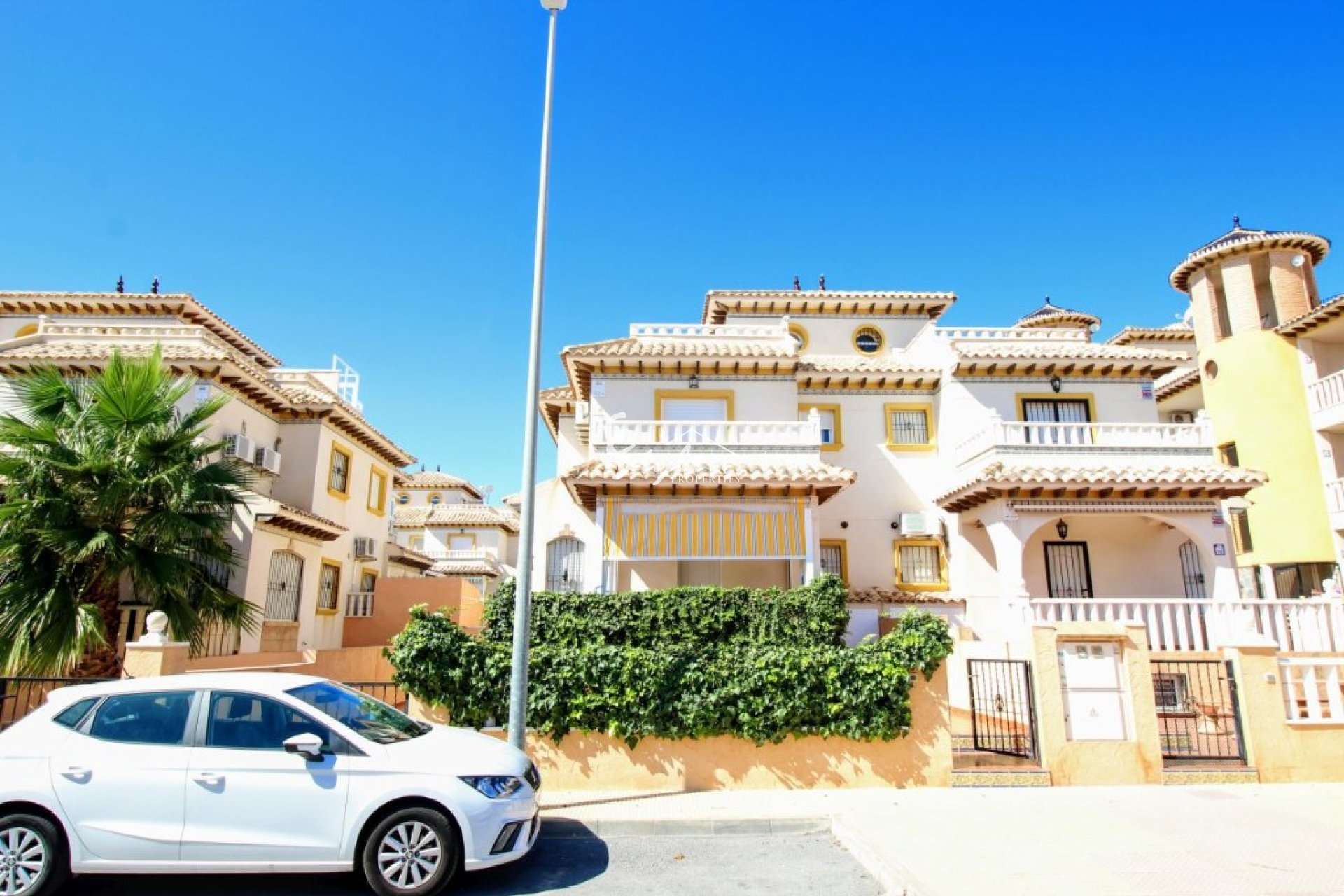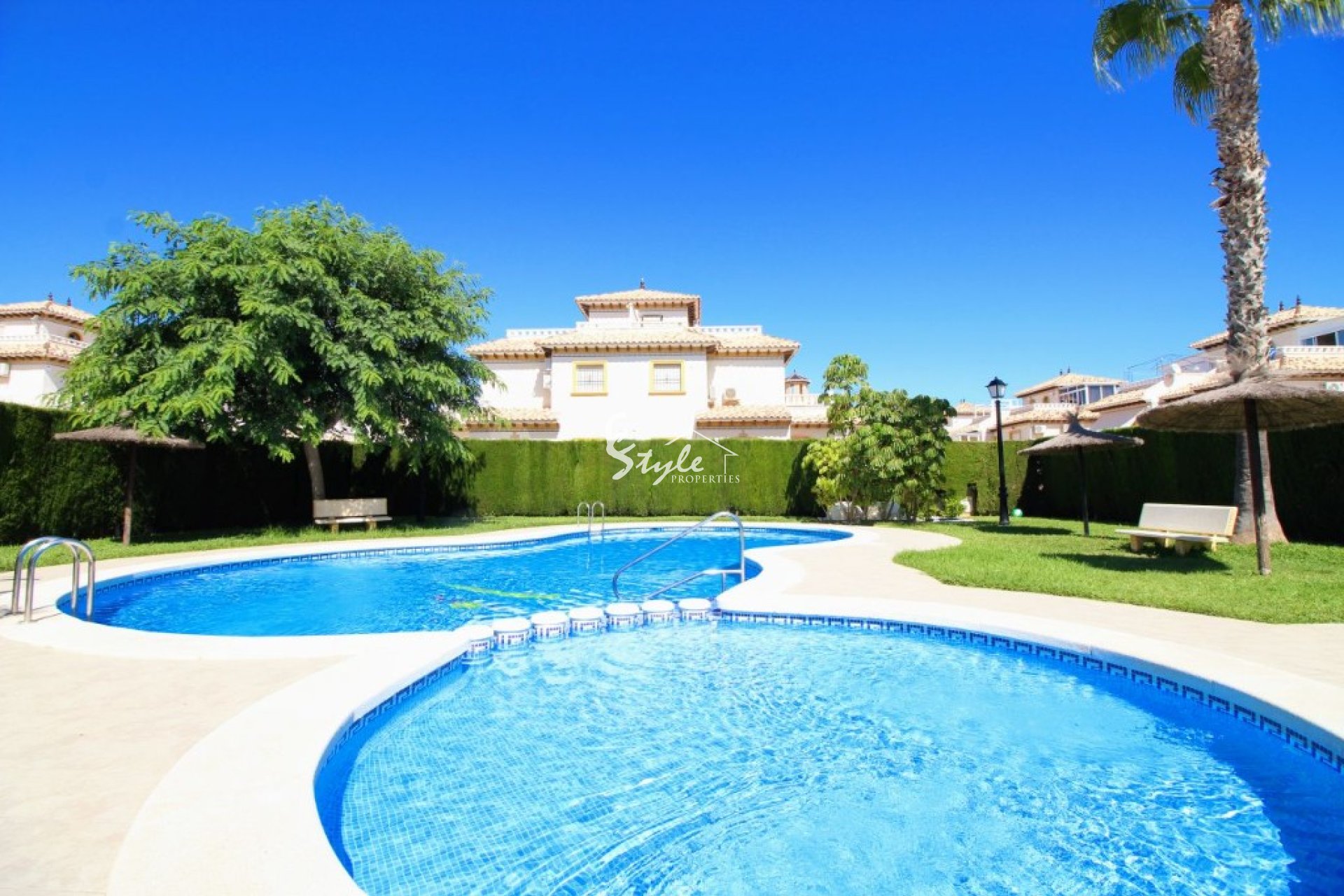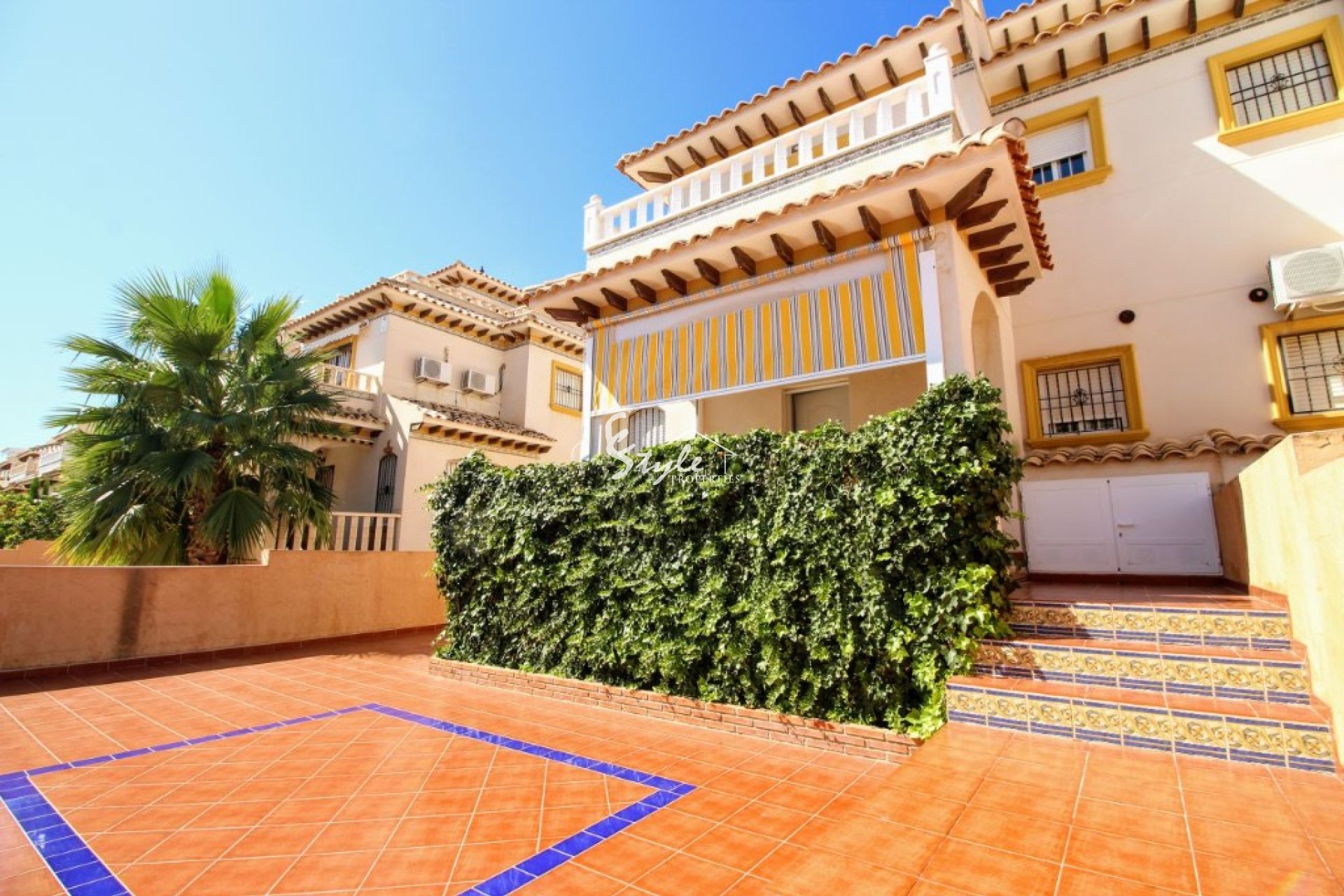For sale quad townhouse, to spend the summer holidays or to enjoy the Mediterranean climate living all year round. Property located in one of the best urbanizations of Orihuela Costa with community pool and green areas, 3 km from the sea and the beaches in Cabo Roig. The house has a wonderful garden plo. The 90 m2 house has 2 bedrooms and 2 bathrooms, a separate kitchen, a living-dining room, solarium. Bedrooms with stunning views. The house is sold furnished. There is lots of tiled terrace and outdoor space and a huge private roof solarium to enjoy all day sunshine. Driveway for off road parking. There is a large gated beautiful communal garden and swimming pool area for residents and guests.