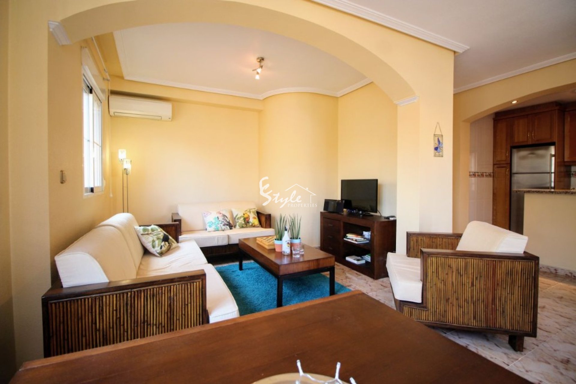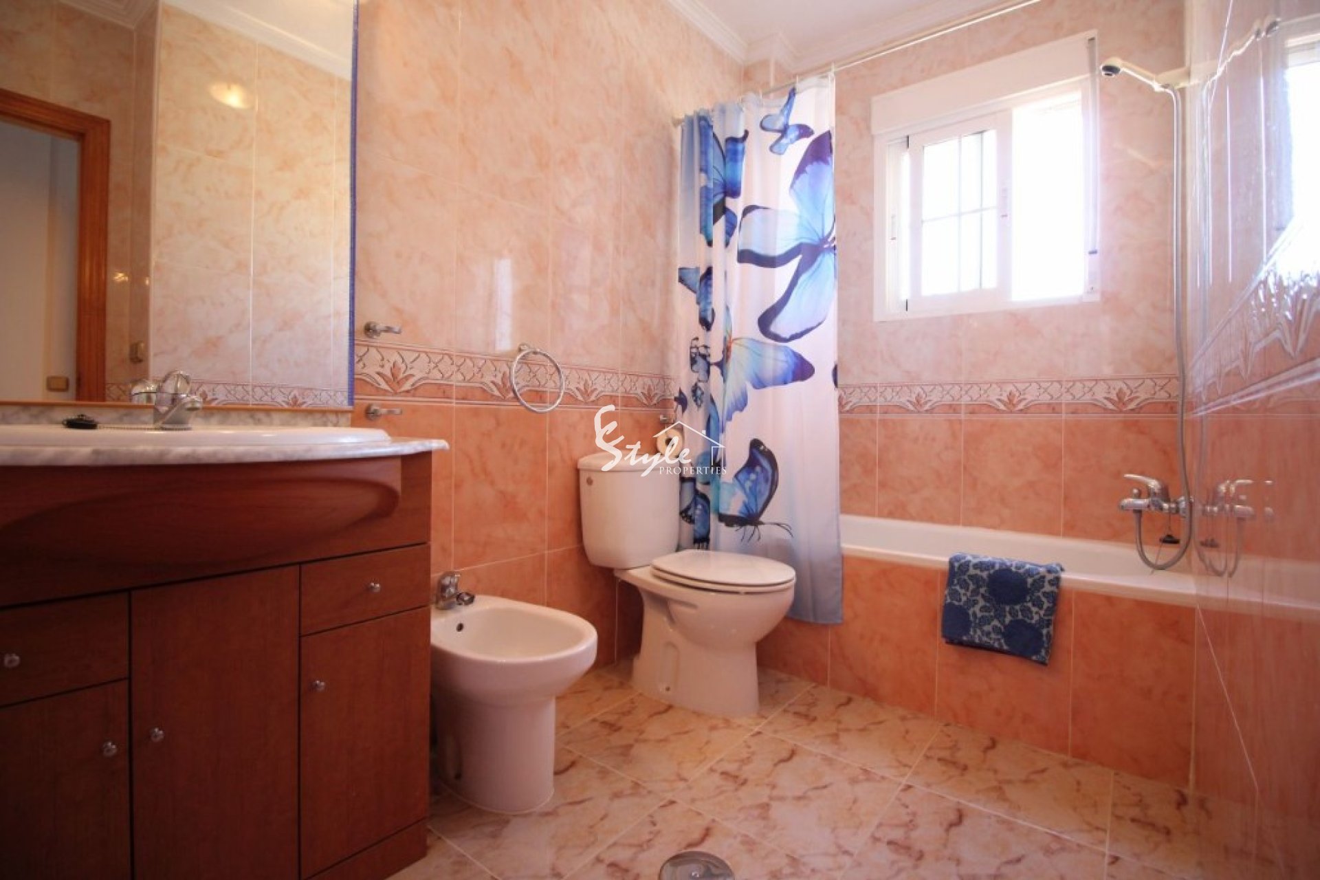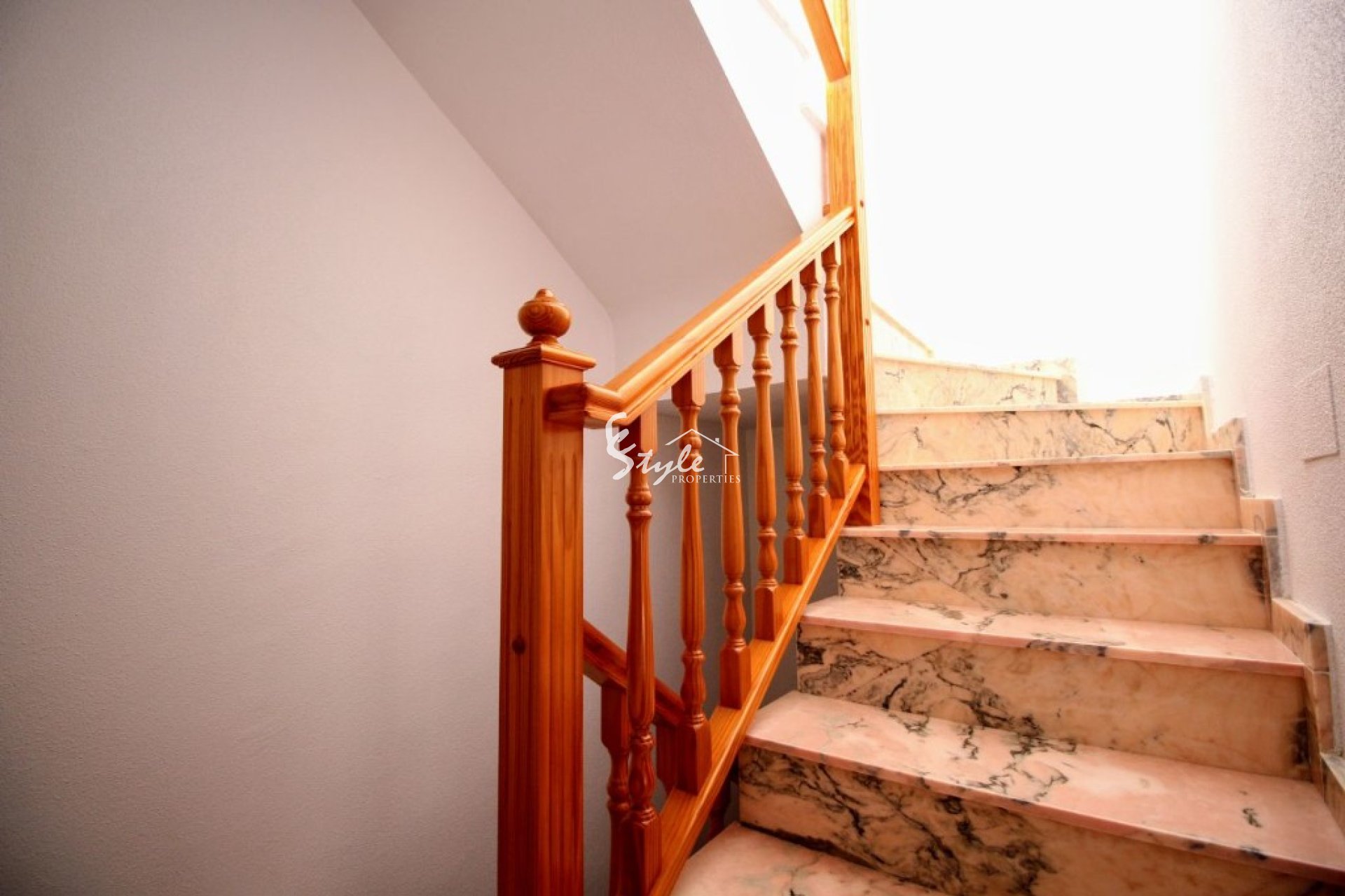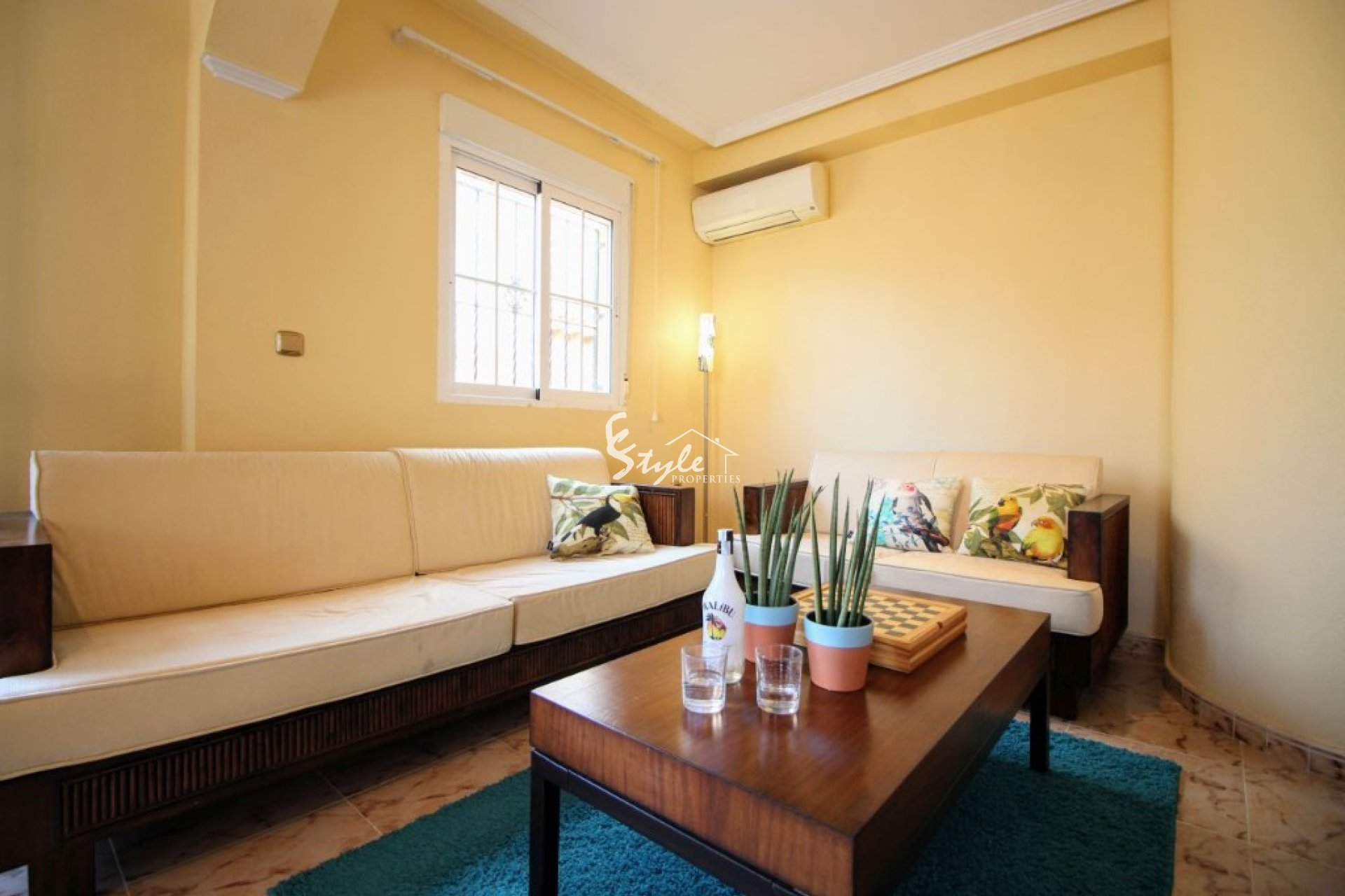 For sale quad townhouse, to spend the summer holidays or to enjoy the Mediterranean climate living all year round. Property located in one of the best urbanizations of Orihuela Costa with community pool and green areas, 3 km from the sea and the beaches in Cabo Roig. The house has a wonderful garden plo. The 90 m2 house has 2 bedrooms and 2 bathrooms, a separate kitchen, a living-dining room, solarium. Bedrooms with stunning views. The house is sold furnished. There is lots of tiled terrace and outdoor space and a huge private roof solarium to enjoy all day sunshine. Driveway for off road parking. There is a large gated beautiful communal garden and swimming pool area for residents and guests.