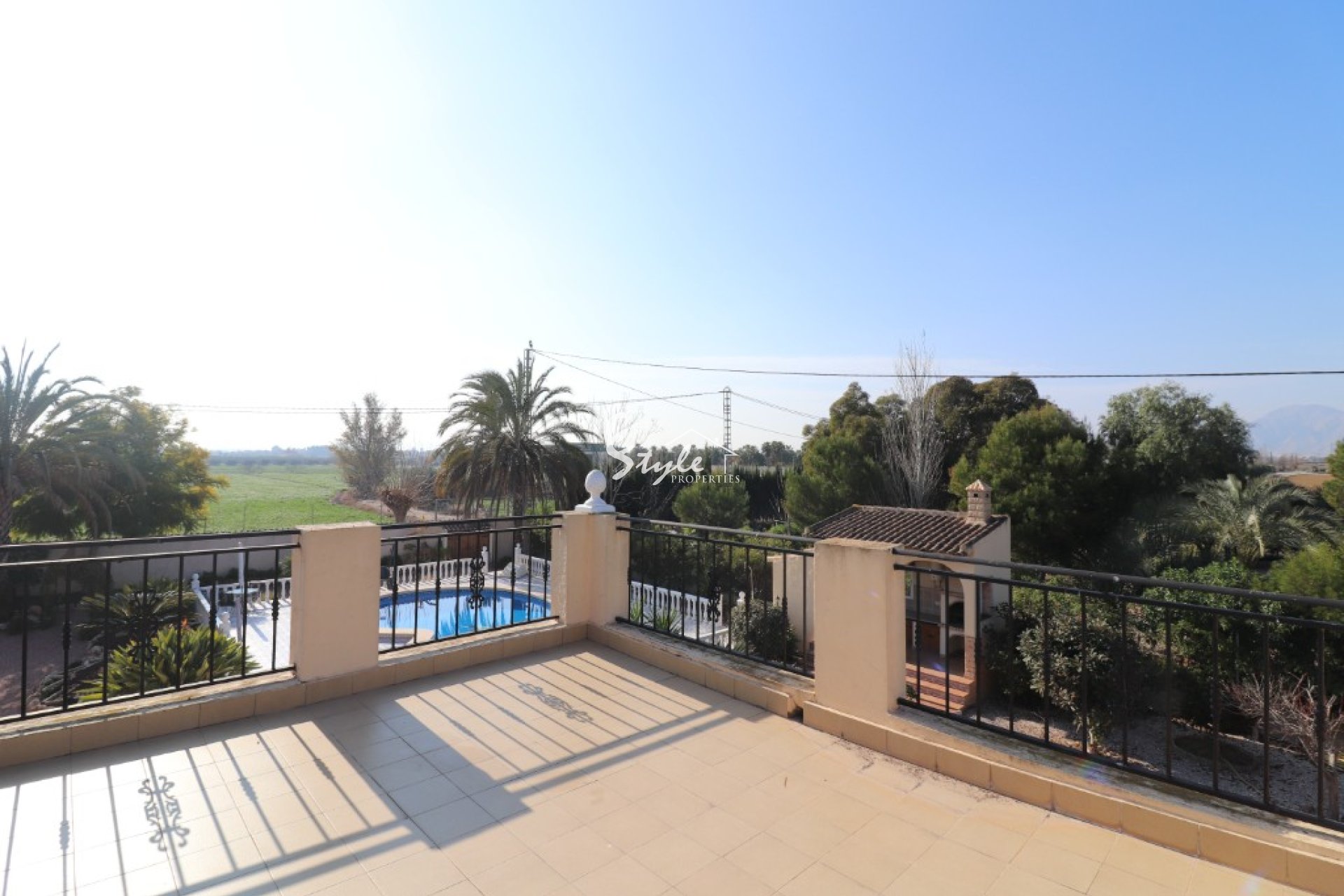 We have for sale a country house with 1000 m2 of plot and a private pool. Located in Catral, a city 10 km from the sea and the beaches of Guardamar del Segura. The plot has a pleasant environment with an impressive swimming pool and very well-maintained green areas, barbecue area, parking. The property has 4 bedrooms and 3 bathrooms, large kitchen, large living room, solarium. The house has a terrace with magnificent unobstructed views of the park and green areas. This house is sold furnished and with air conditioning installation. Outside you can find a shower room, utility room, garages, and workshop. The garden is pretty and well maintained with mature trees and flowers, there is also more land towards the back of the property with enough space to build a separate house.