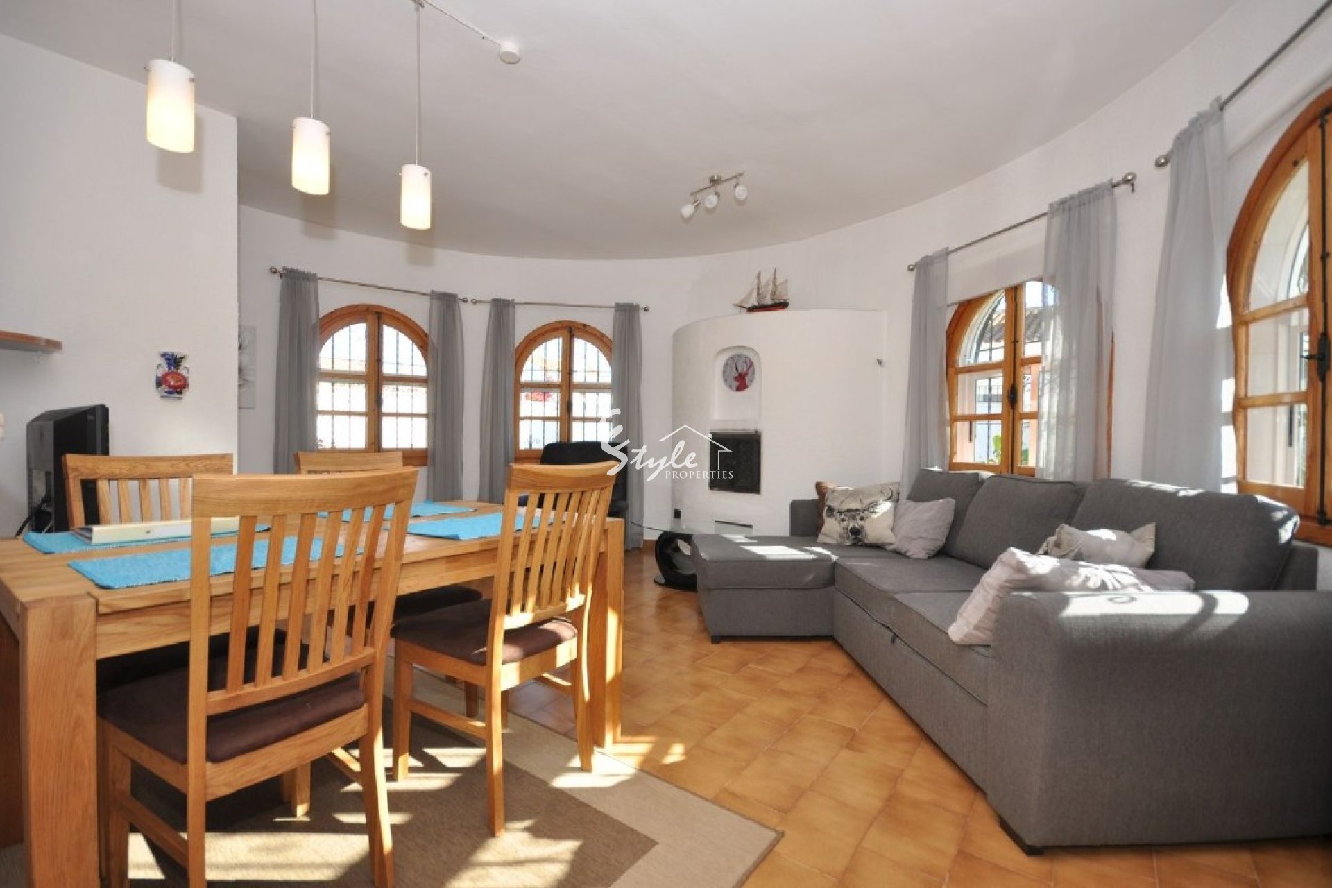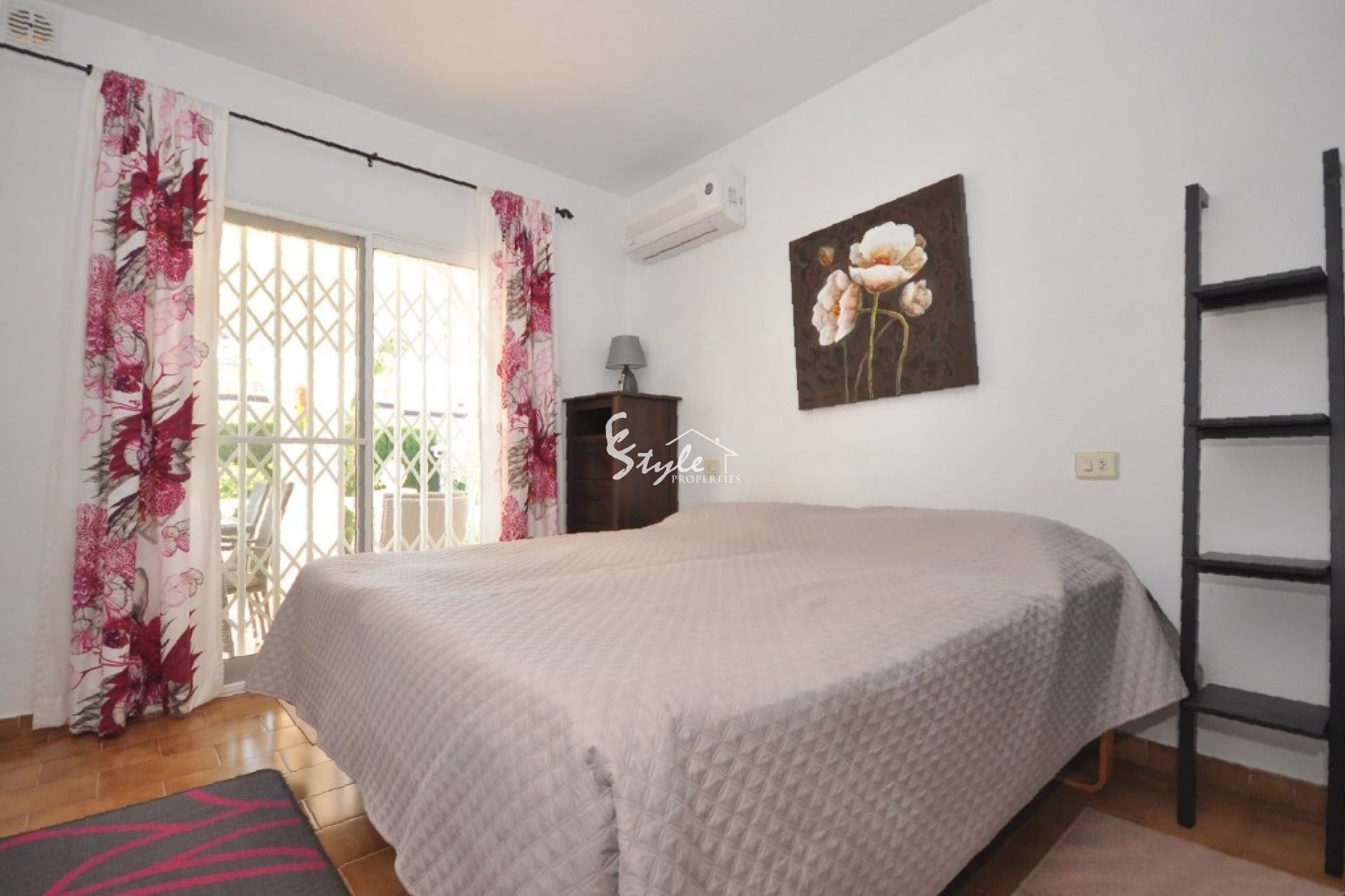 We have beautiful detached villa for sale in Playa Flamenca. The house is located near the sea, close to the beaches of Orihuela Costa and has private plot with lovely gardened areas, palm trees, nice pool, and barbeque area. Property with an area of 100 m2 has 2 bedrooms and 2 bathrooms, large living/dining room, open style kitchen, porch, and terrace with surrounding views of the seafront and garden areas. The house is sold with furniture. Ideal to live all year around or spend a summer vacation.