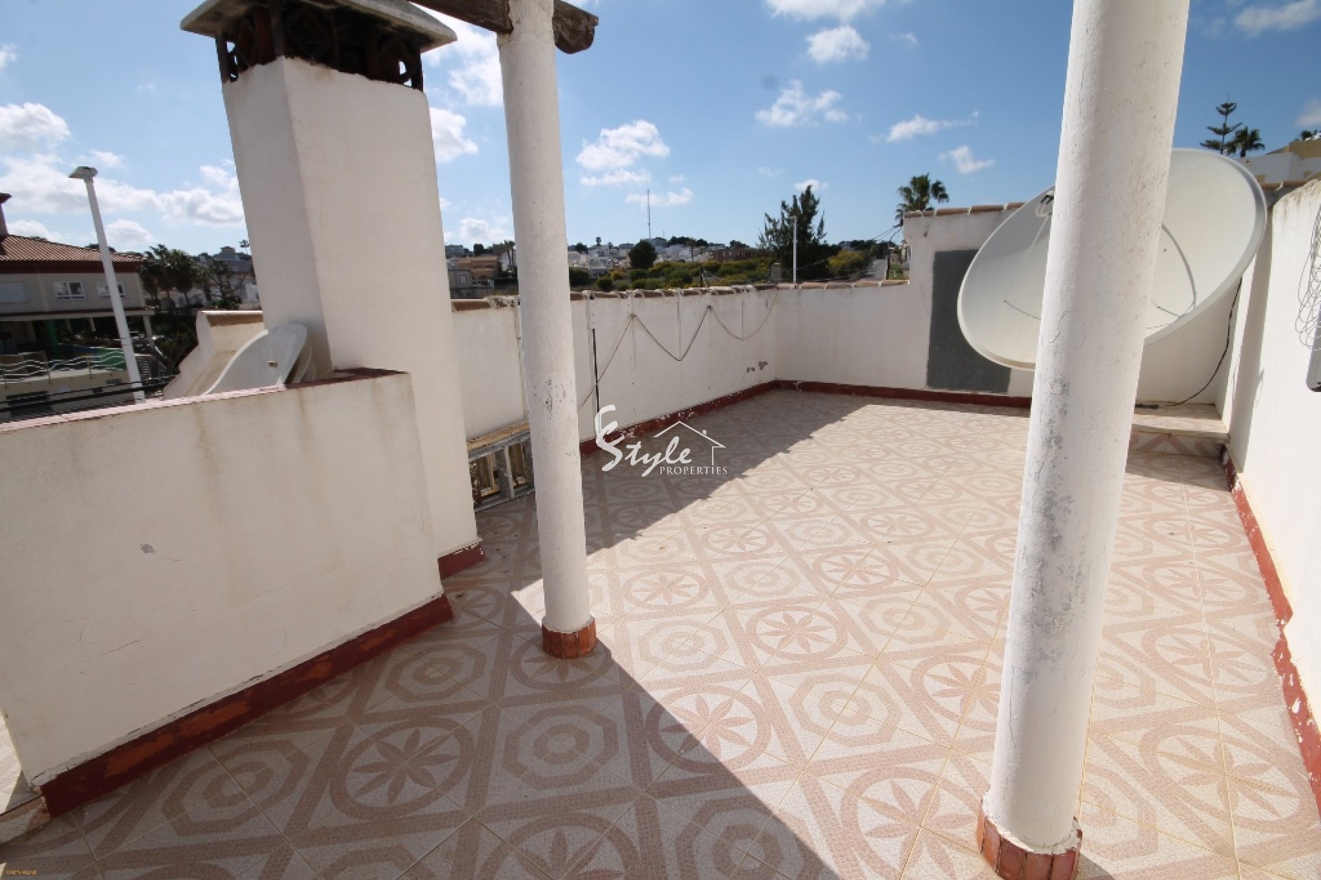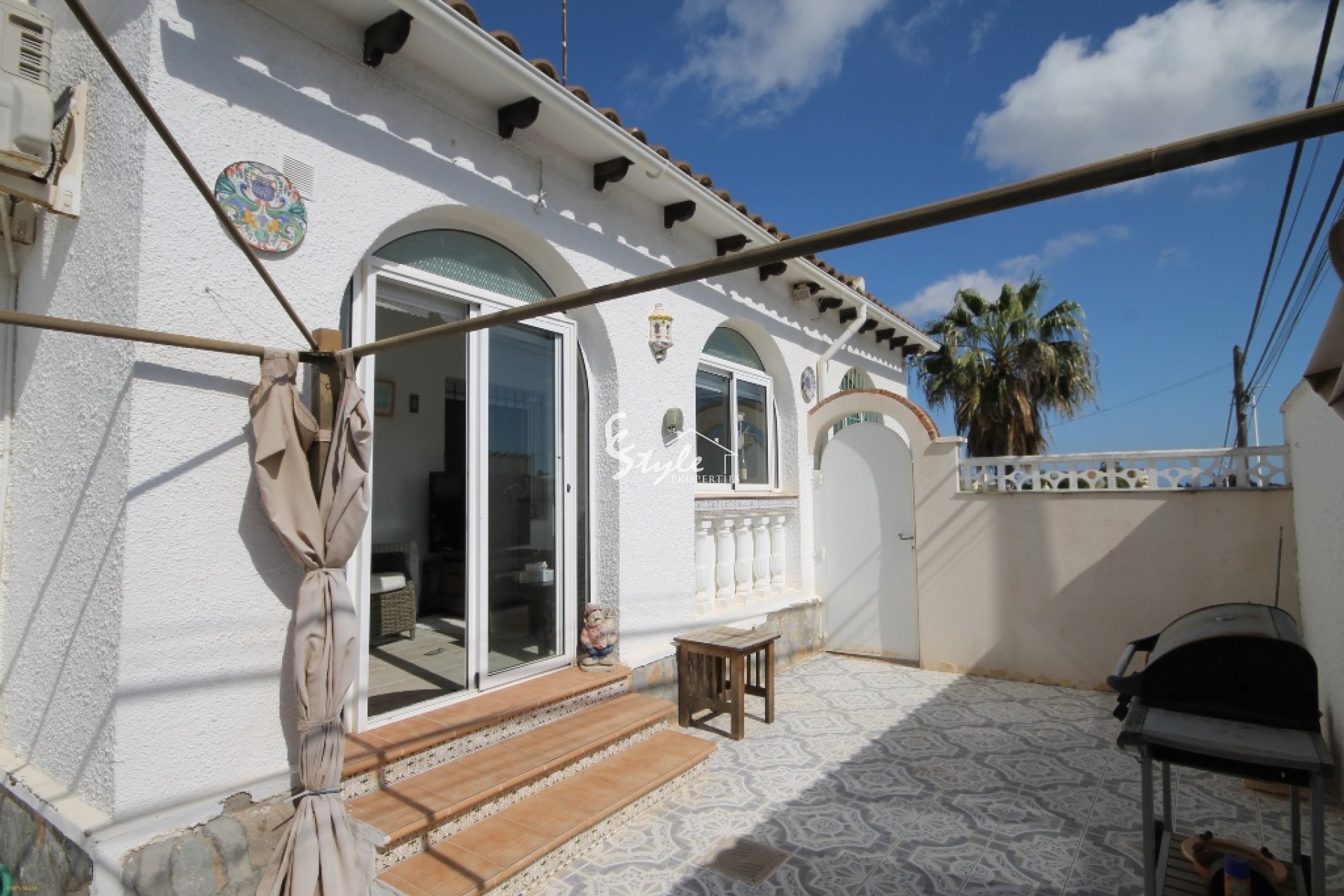 The 500m2 plot has a private pool with slide, a gazebo, a large storage room, and off road parking for at least 2 cars with a car port. The villa also benefits from upvc double glazed windows and doors, an alarm, air conditioning, mains gas, a communal pool and is sold partly furnished. Walking distance to amenities including Villamartin Plaza, with many bars, restaurants and stores.