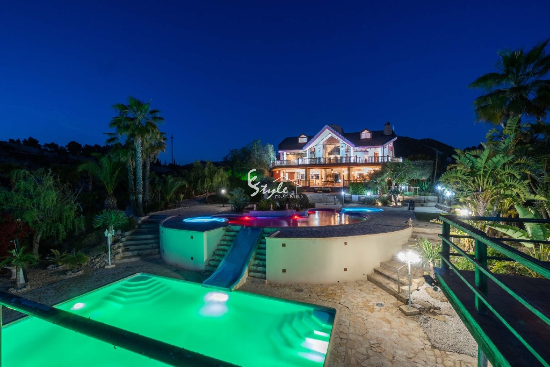 Here we offer a very special property, which is set on a private land of 2,5 hectares, with incredible views over the lakes and mountains. The property consists of a main house with 5 bedrooms and 4 complete bathrooms, plus 2 half bathrooms. The architecture of the house boasts such features as Floor-to-ceiling windows with panoramic vistas of rolling hills, shimmering waters, and tall pines; Soaring vaulted and beamed ceilings; Wrought iron staircases throughout the property, including the entrance and Mezzanines; Mezzanine floor in every room; Open plan principle rooms and kitchen; Two living rooms; Formal dining room that seats 16 with garden views; Fully-fitted kitchen; Master bedroom suite with suspended king-sized bed, double shower, Jacuzzi bath, and glass wall leading to a private terrace overlooking the lake; Winter lounge with glass frontage to 180-degree lake views and stone fireplace; Summer lounge with uninterrupted lake and pool views.