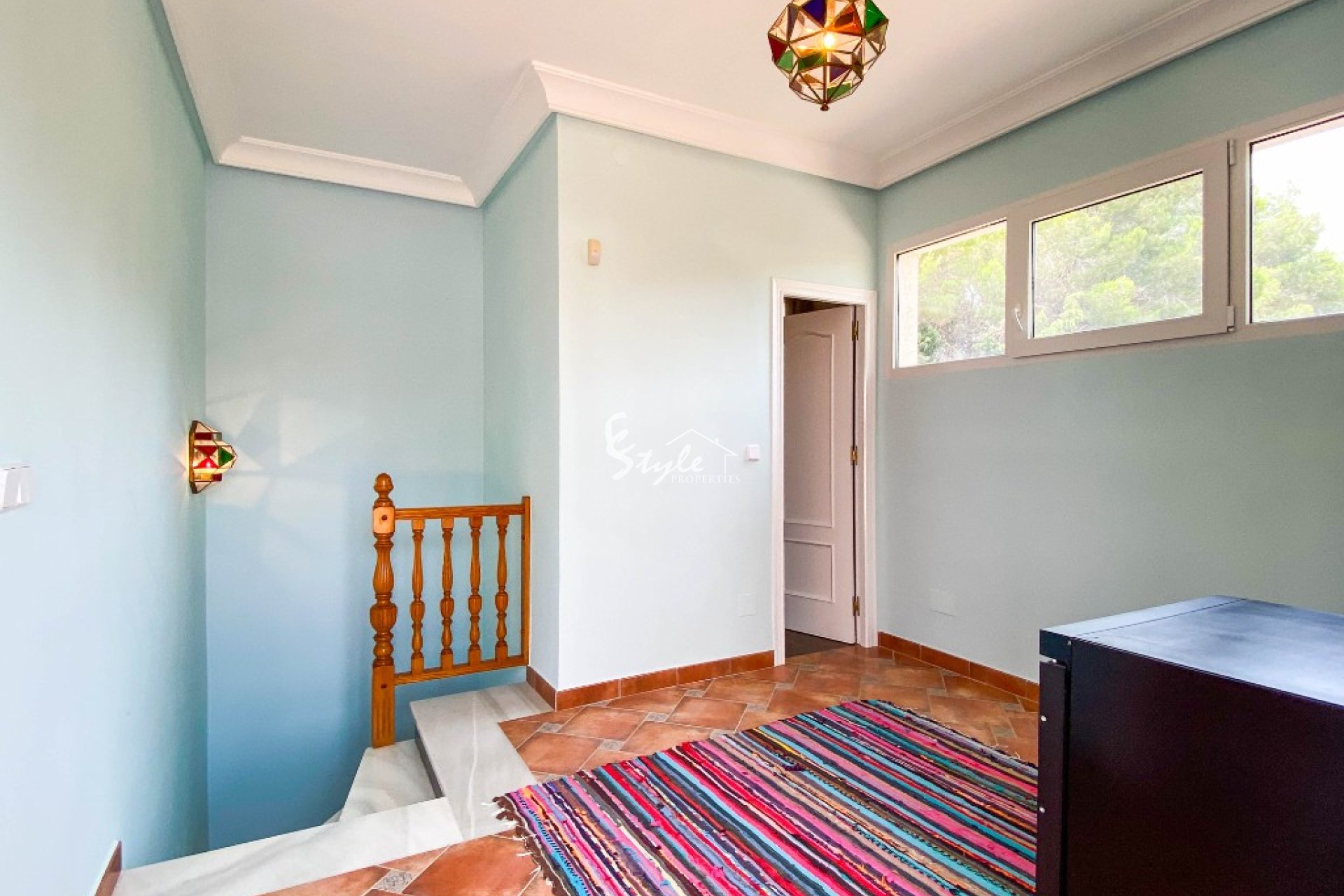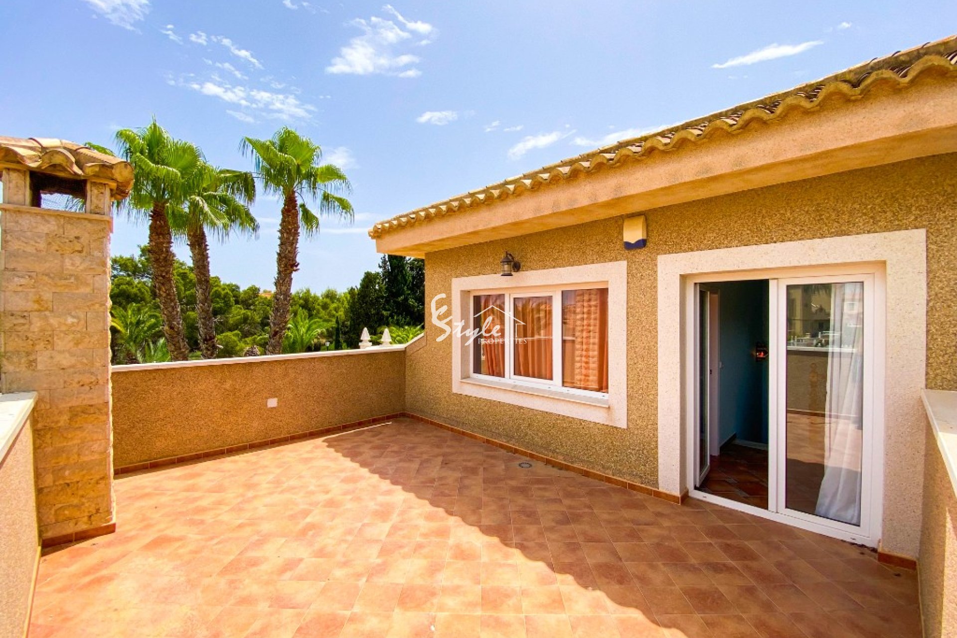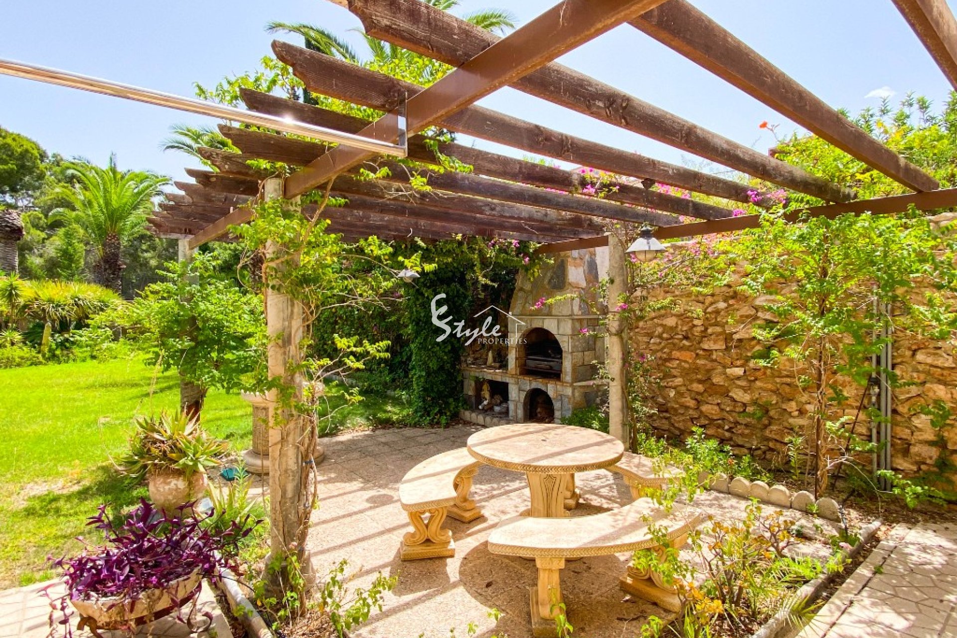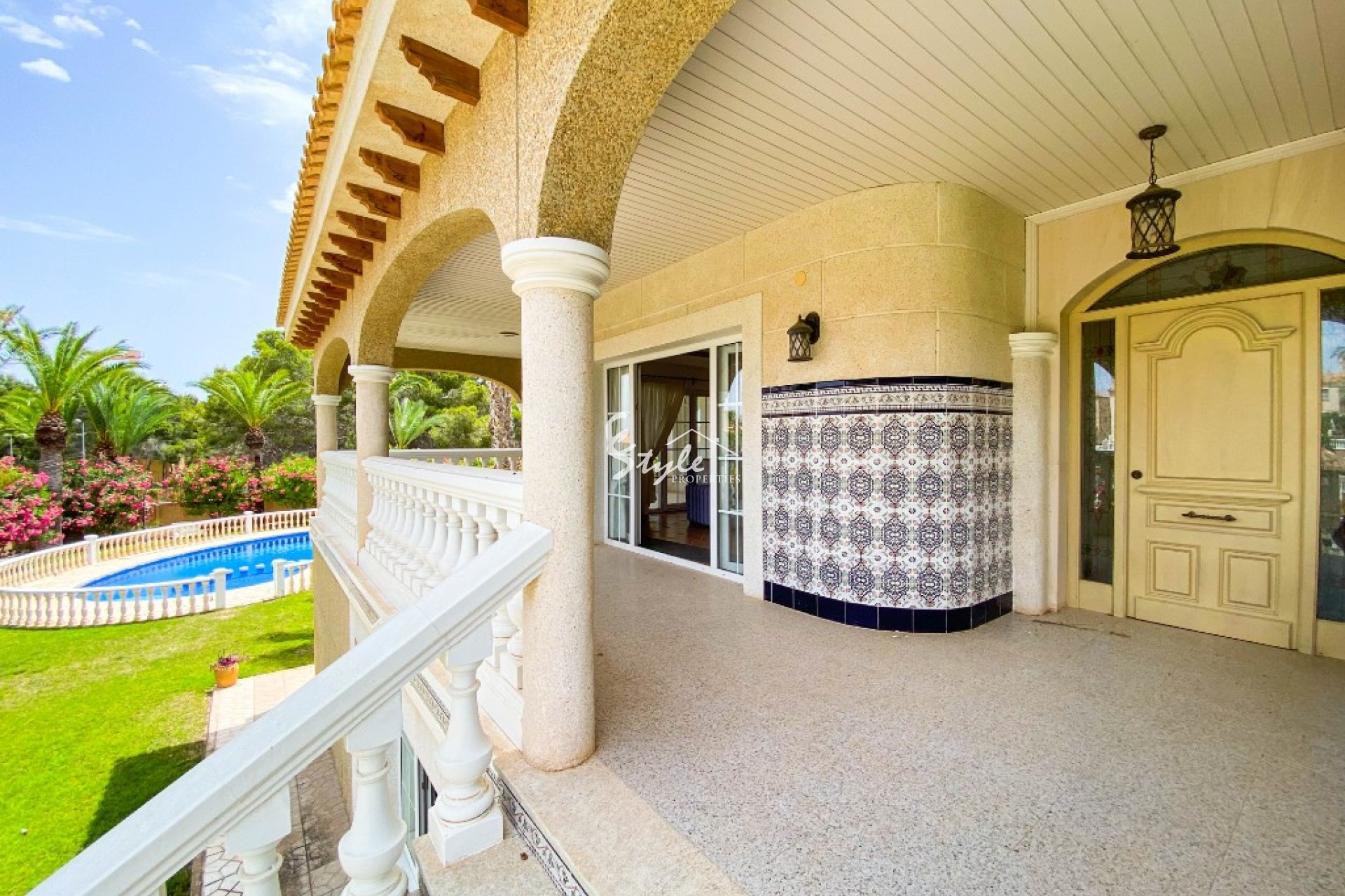 We are glad to present you an exclusive villa with a well- maintained plot, a garden and a swimming pool near the sandy beaches of Orihuela Costa, in a quiet and very picturesque area, surrounded by pine groves and the famous golf courses of Villamartin and Campoamor.