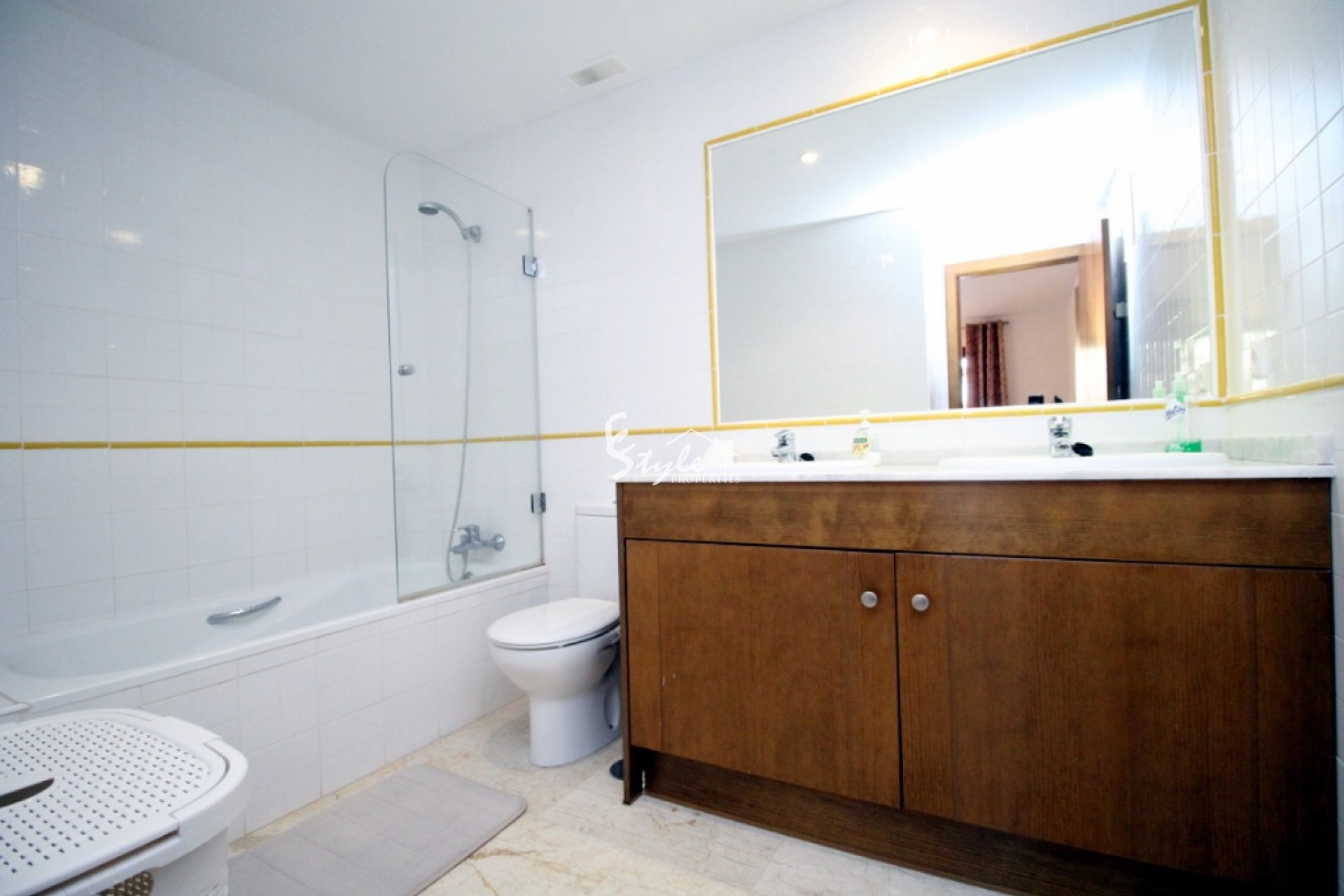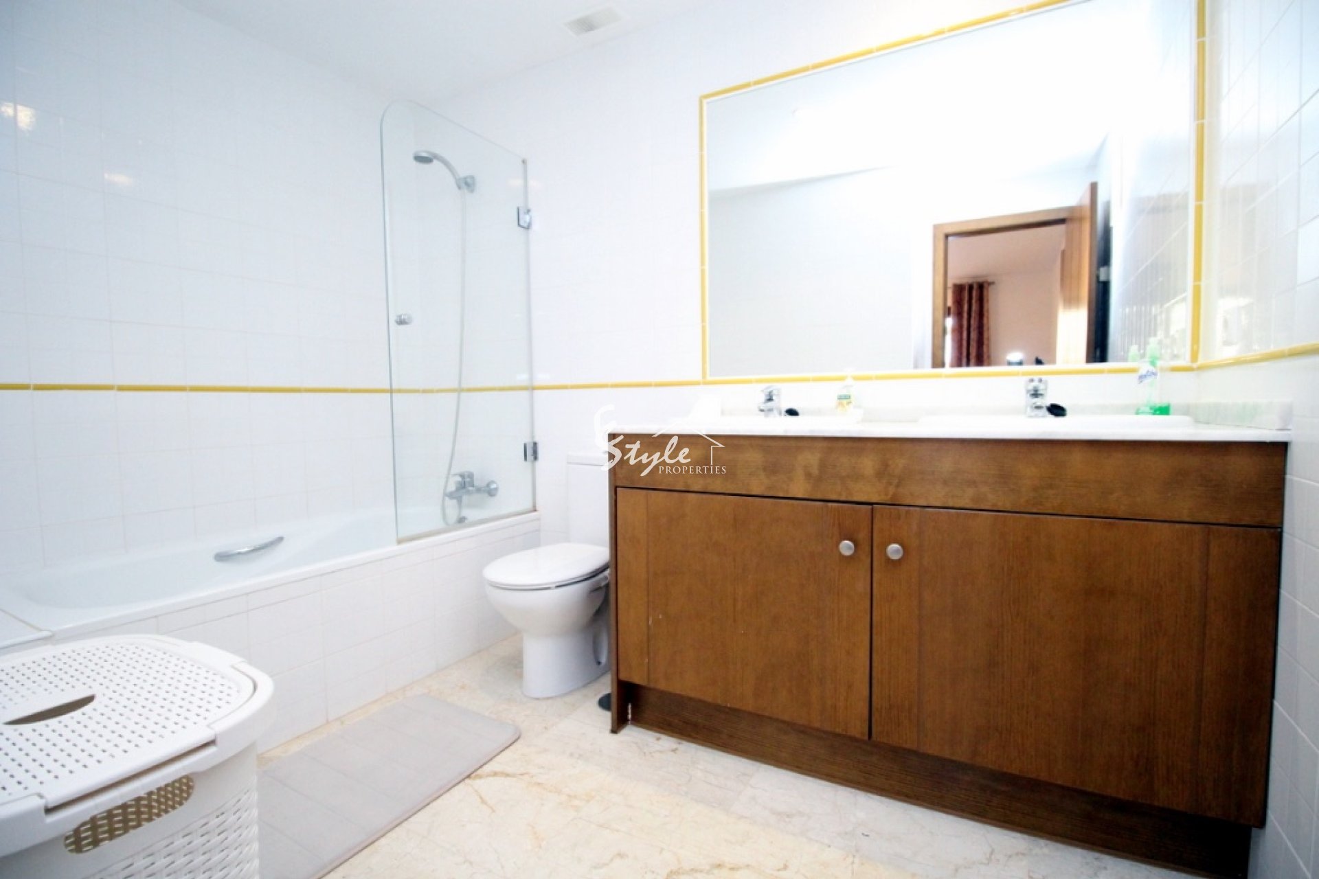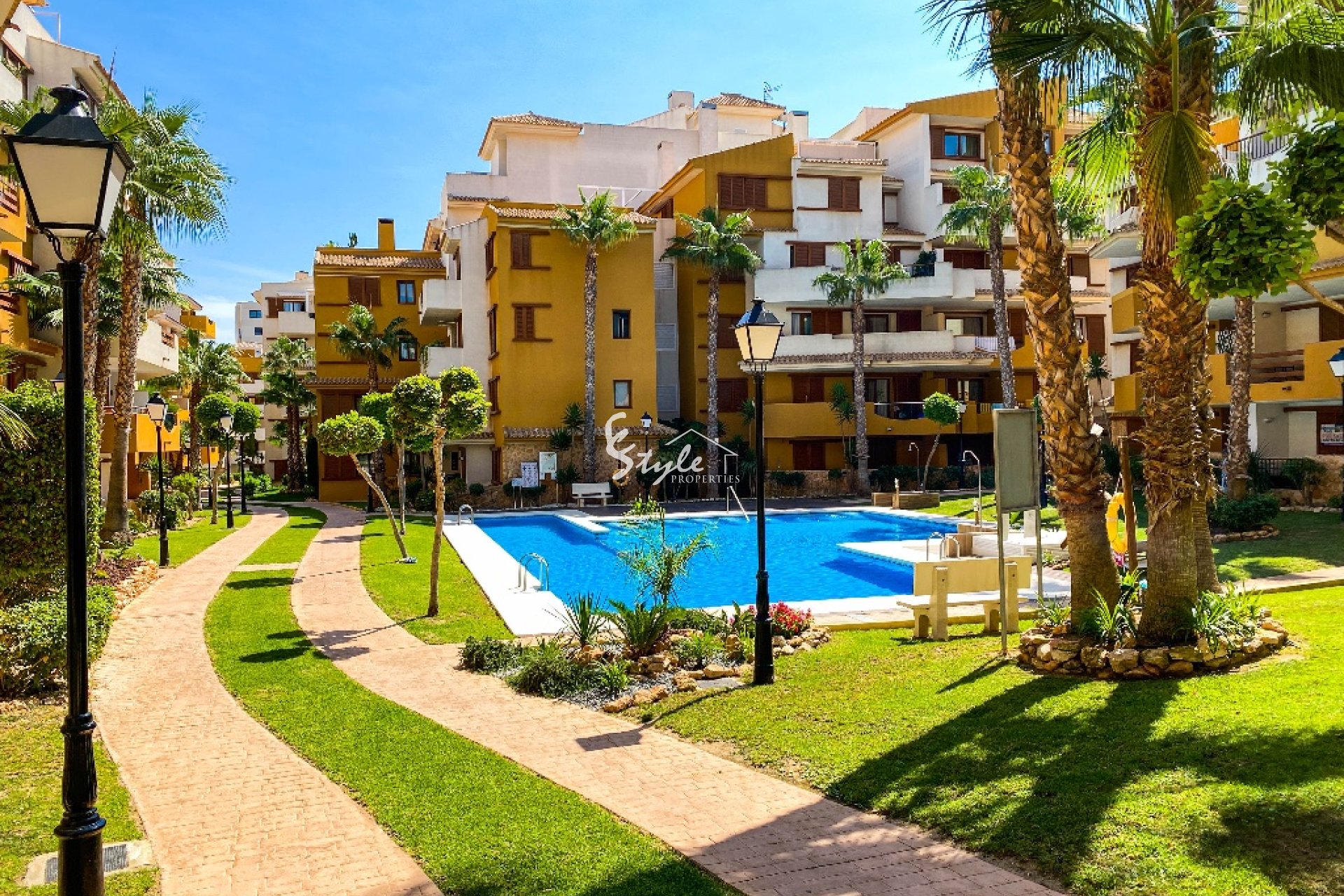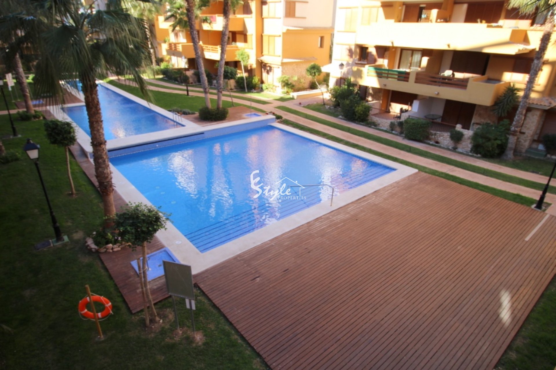 Apartment in a green gated urbanization La Recoleta in Punta Prima on the beach. Cozy, spacious apartment for sale have 2 bedrooms and 2 bathrooms, a lounge-dining room with access to a terrace with open views and furnished kitchen. The terrace overlooks the pool and green areas. The apartment have central air conditioning for cold and heat, heated floors in the bathrooms, many fitting wardrobes. Apartment is sold with space in the underground garage. Closed area with lots of pools and 24 hour security.The urbanization La Recoleta is located in the south of Costa Blanca just a few steps from the sea and surrounded by infrastructure.