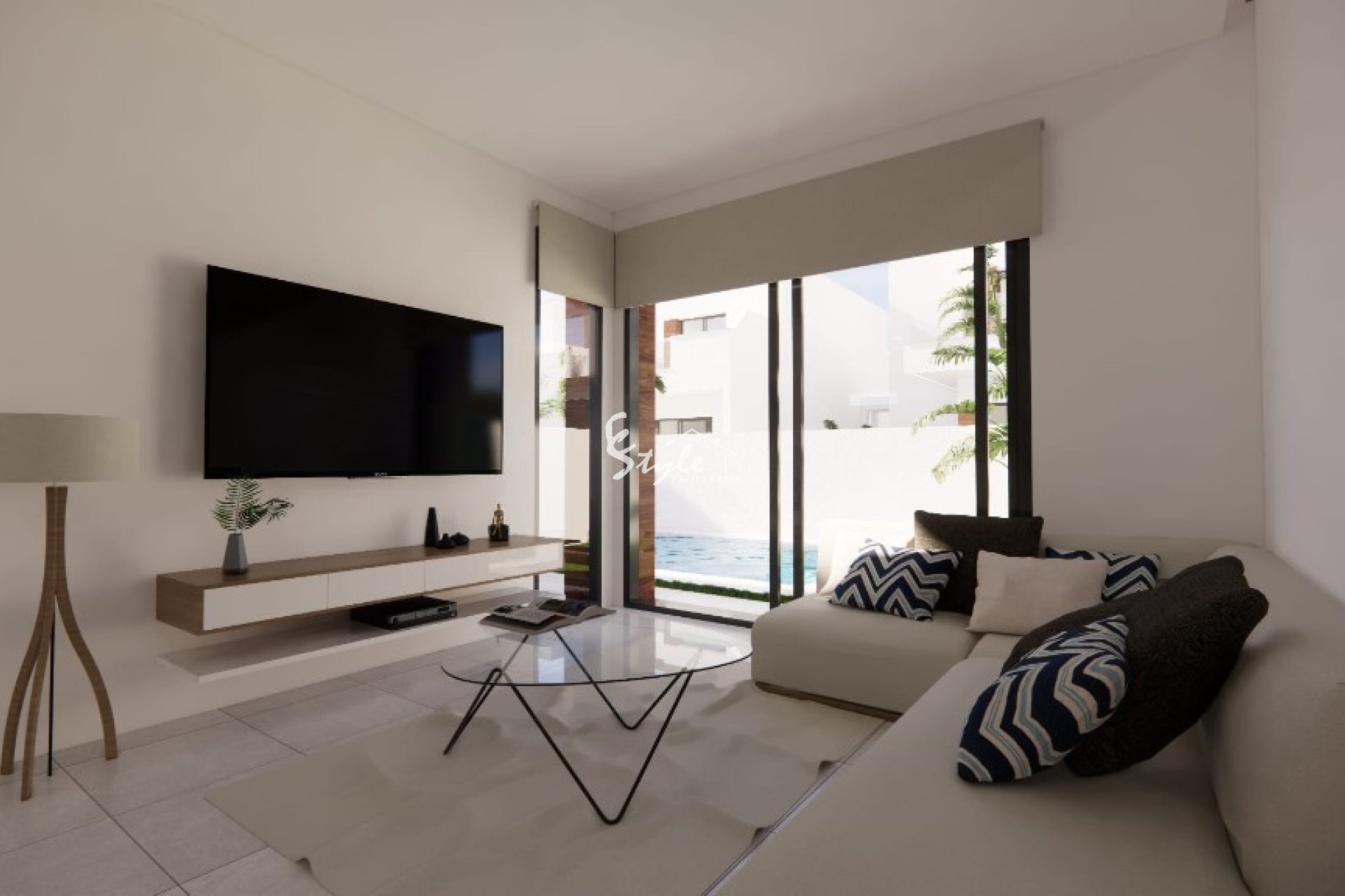 Villas have 3 bedrooms, 3 bathrooms, living room, kitchen, private garden and swimming pool.
