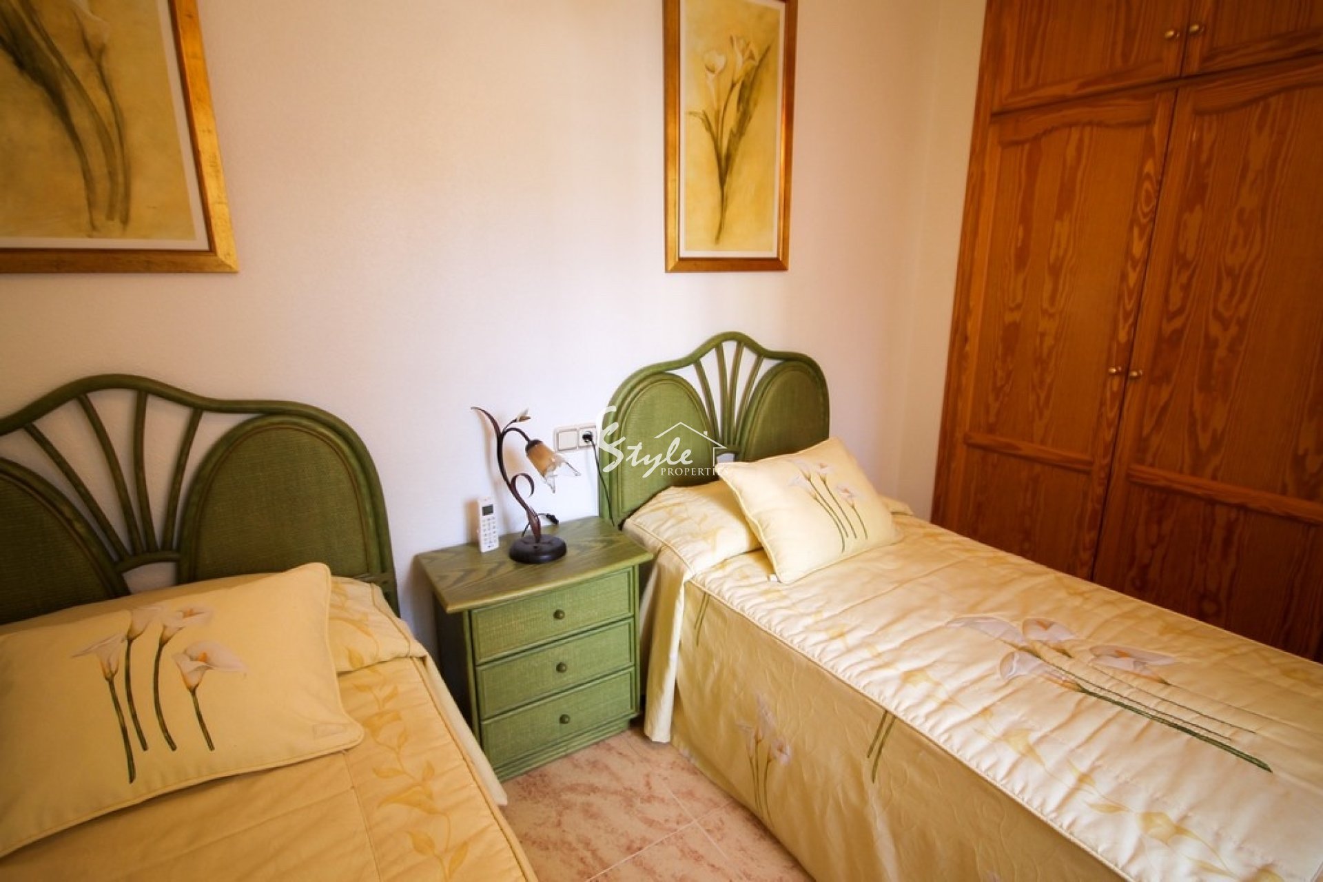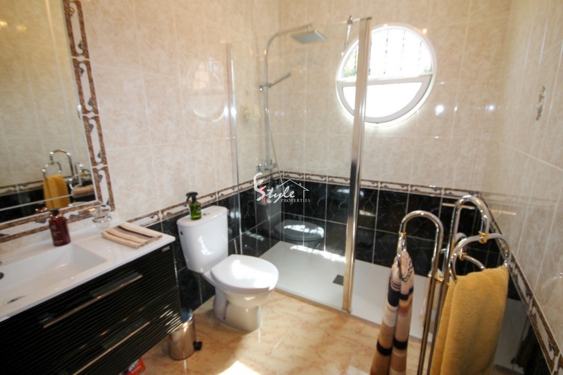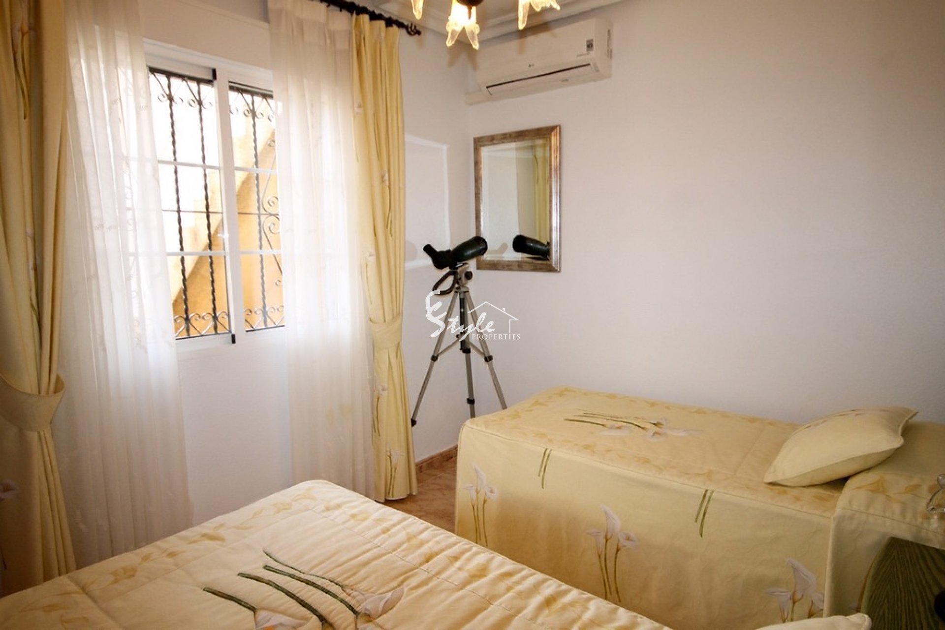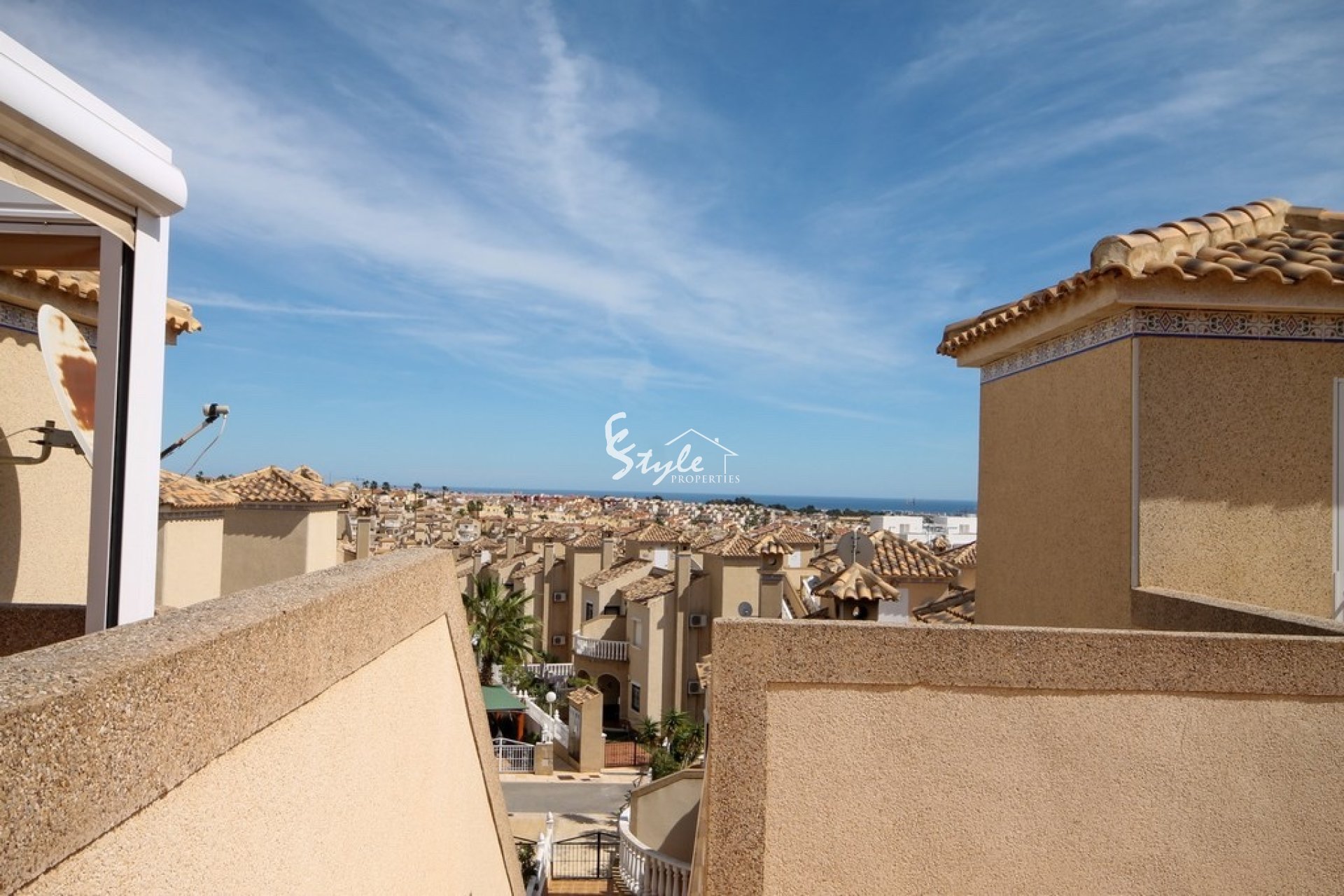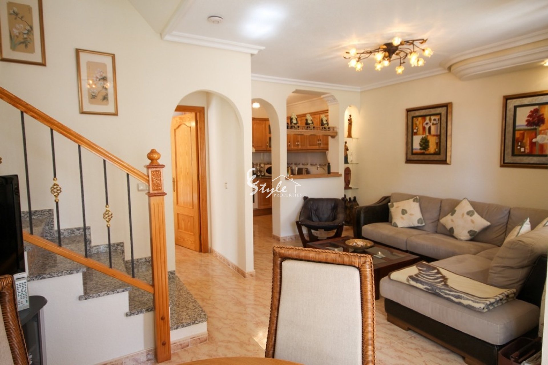 For sale semidetached villa located in the Urbanization El Galan, Villamartin, close to golf courses and just 5 km from the beautiful beaches of Orihuela Costa. The house has 3 bedrooms and 2 bathrooms, terrace with magnificent views and kitchen which is fully equipped. The property has plenty of outside space and parking. It is sold fully furnished and equipped. It has a beautiful private and community pool.