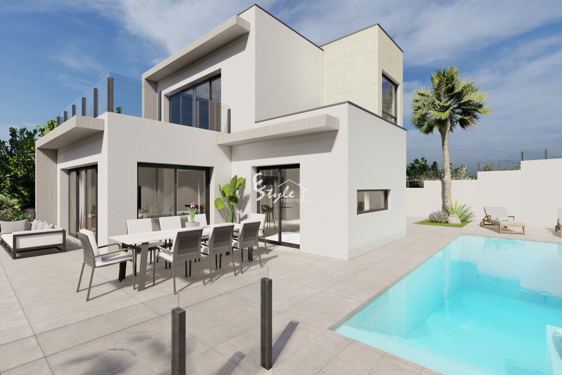 New modern villa has 3 bedrooms, 3 bathrooms, living/dining room, American style kitchen and sotano or garage about 95 m2. Outside there is a beautiful terrace with a private pool and gardened area. Maximum constructive qualities to achieve the highest levels of comfort.