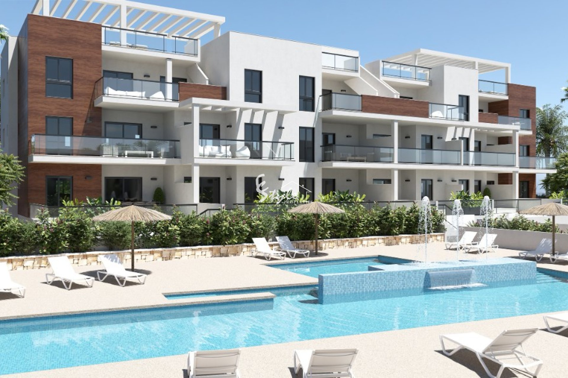 The residential complex with a two communal swimming pools and beautiful, landscaped area. The nearest sandy beaches just a few minutes walk away. The residential complex is located in the beautiful town of Torre de Horadada, in a short walking distance to amenities, shops, cafes, restaurants, banks.