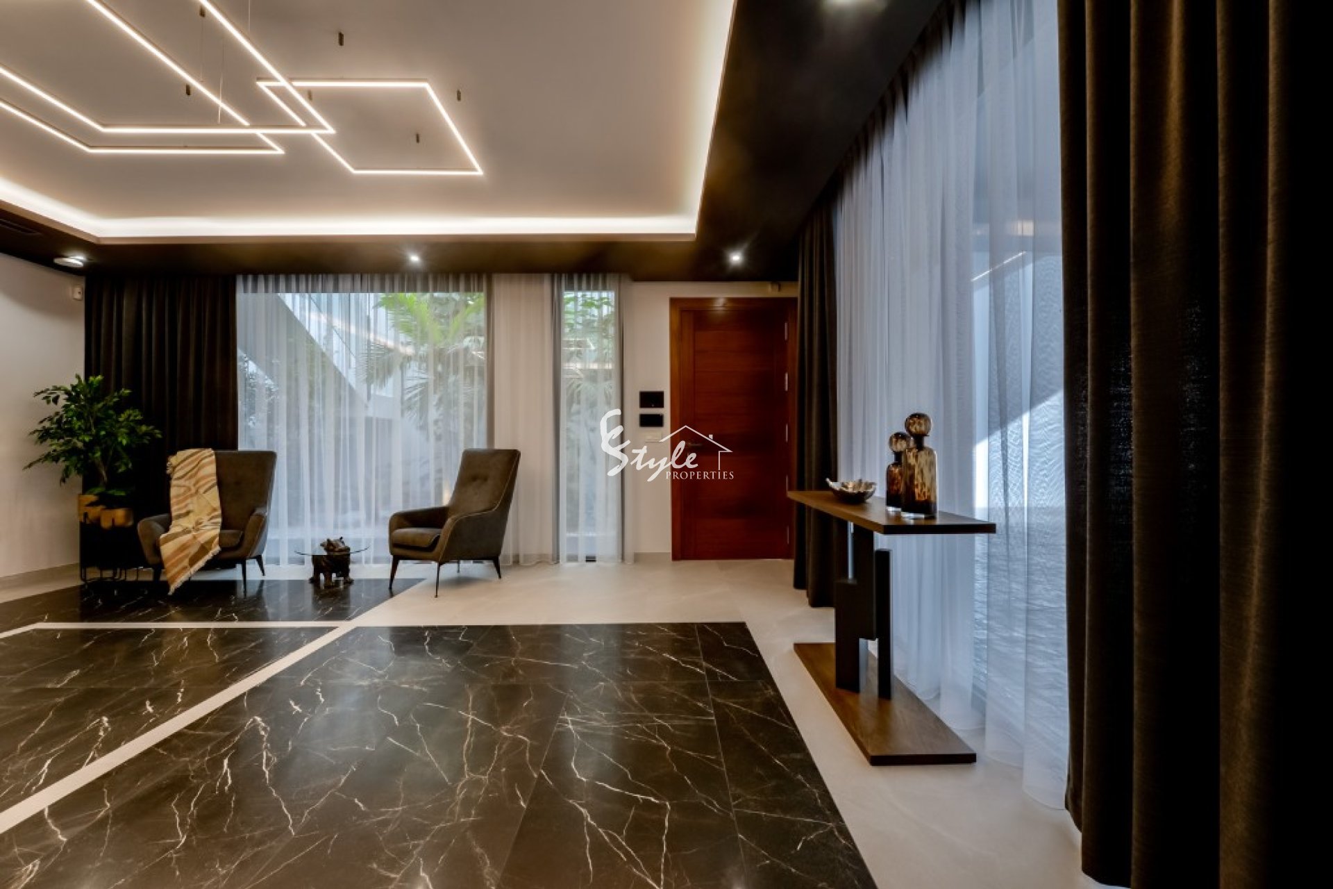 The construction works is carried out using only the highest quality materials and finishing works such as: double glazed aluminium windows, shower plates in the bathrooms, top quality porcelain used for the floor and interiors, air conditioning, domotic system, garage for 4 vehicles with automatic doors, garden completely finished with automatic irrigation and much more extras.