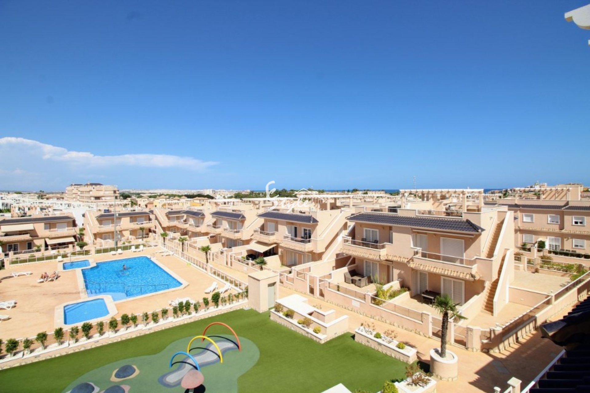 We offer you for sale a top floor apartment with a private solarium in one of the best gated communities in Punta Prima - Vista Azul XXVII. It offers to its residents communal swimming pools (one of each is a heated one), outdoor gym, sauna, children's playground, 24 hour security, green areas for relaxing and underground parking.