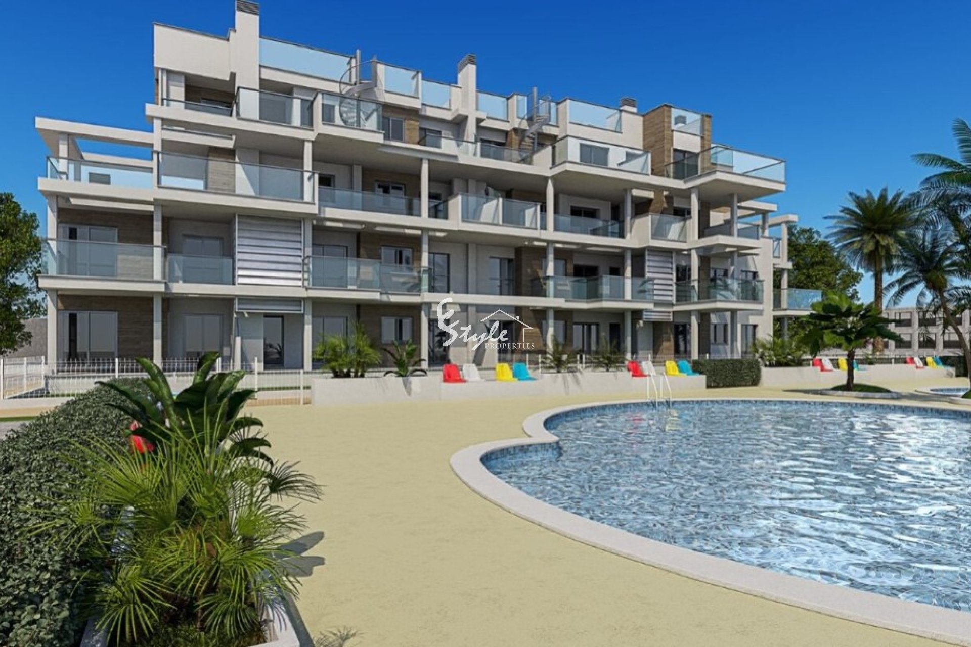 New build apartments close to the beach located in the exclusive area on the northern part of the Costa Blanca. The apartments have 2 or 3 bedrooms, 2 bathrooms, large terraces with stunning views, living rooms, kitchens. Ground floor apartments have a private garden and top floor apartments with solarium. Optional: parking.