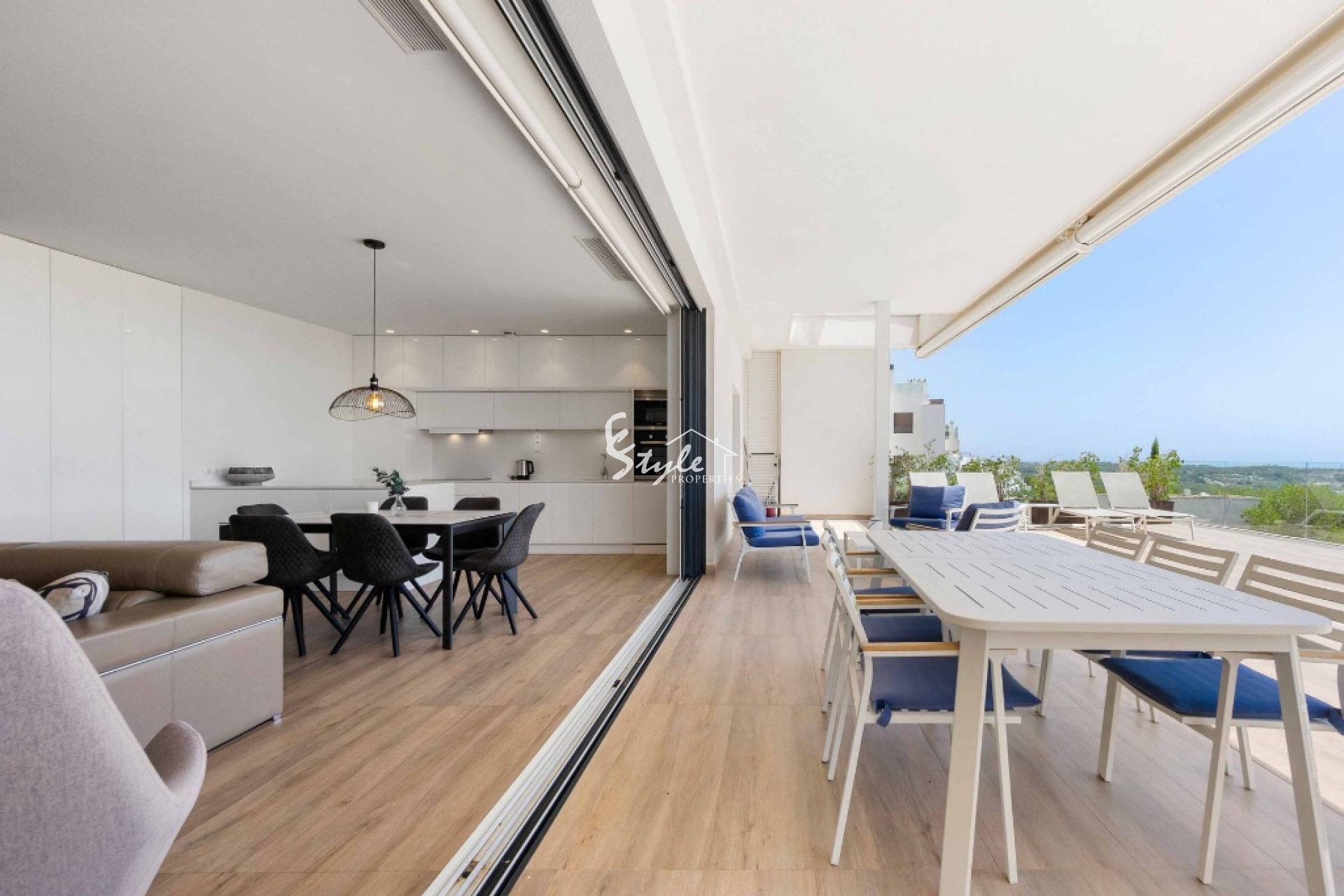 For sale amazing ground floor apartment in Naranjo Community at Las Colinas Golf & Country Club! The apartment built in 2018 is South-facing and offers a living room, dining area, kitchen, three bedrooms, two bathrooms and amazing terraces facing South and North. The apartment is on a slope, which means that you have fantastic views even from the grund floor.