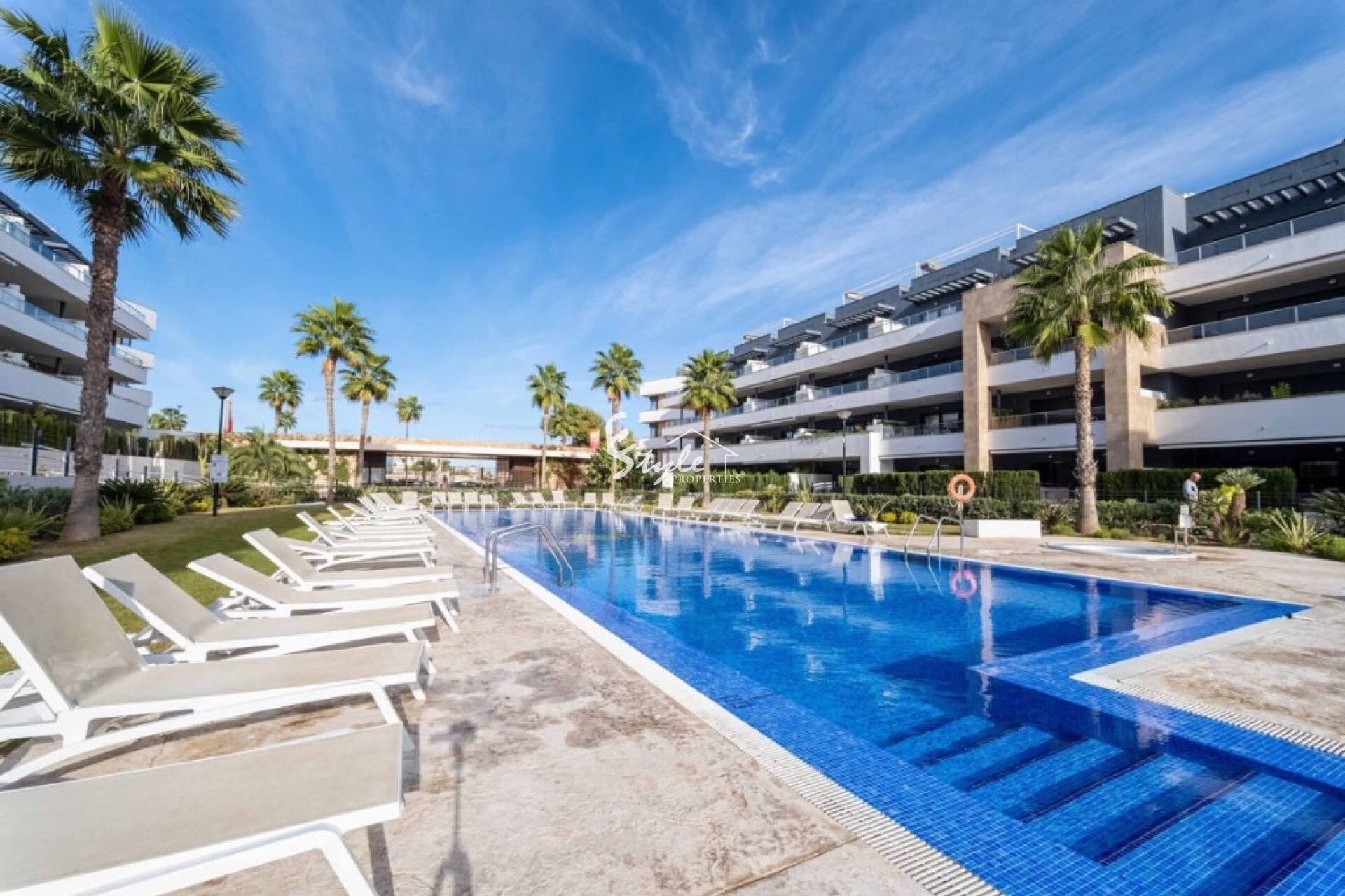 it is only a five-minute walk to the popular Saturday market and the famous Zenia Boulevard shopping centre.Flamenca Village is a gated community that offers its members facilities usually found in better hotel resorts. There are four large pool areas, two of which are heated winter time. Each pool area also has a children's pool and two heated jacuzzis. There is a nice playground for the little ones and a well-equipped indoor gym with changing rooms, showers and a sauna. In the center pool area there is a nice chillout bar where you can order snacks and refreshments.
