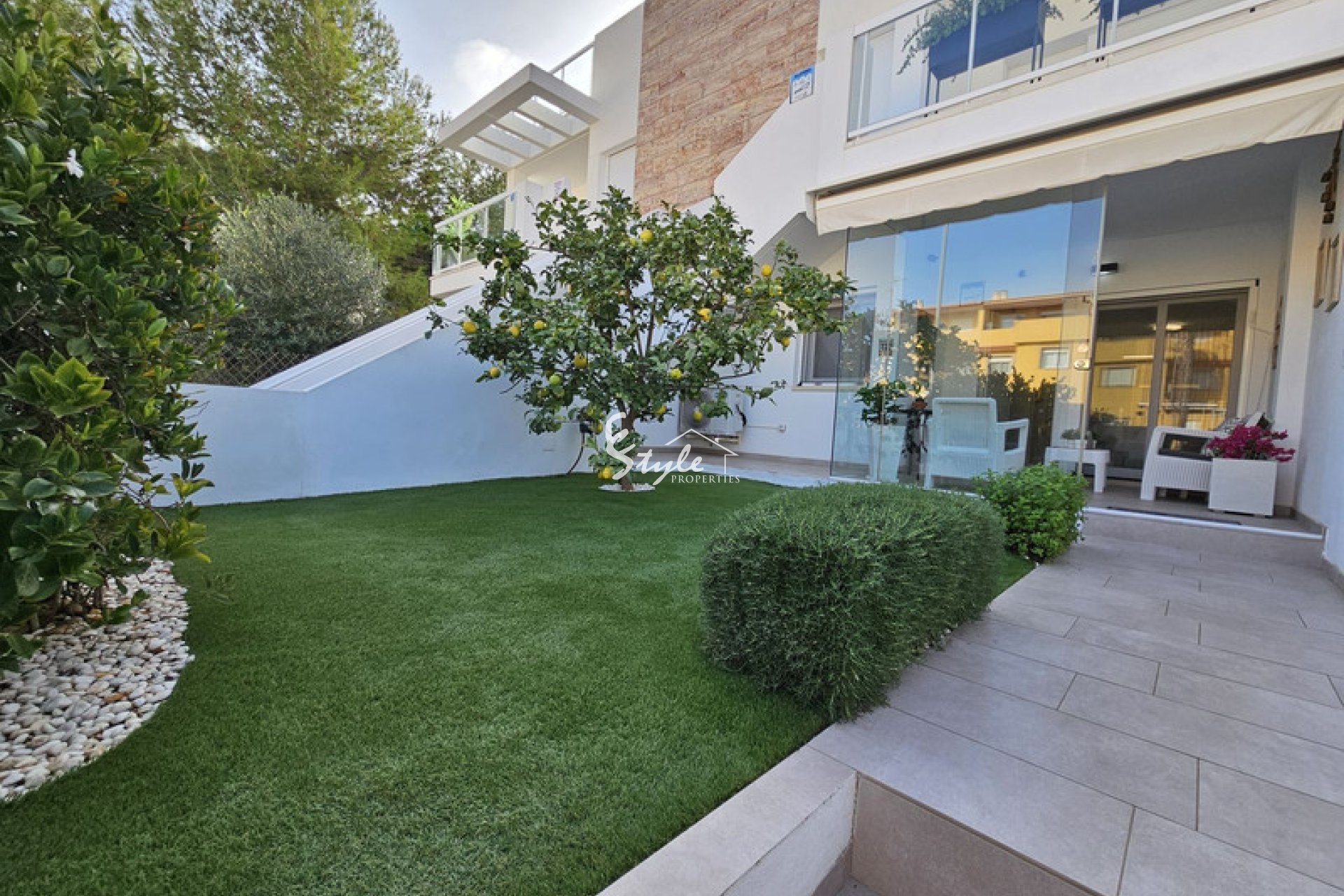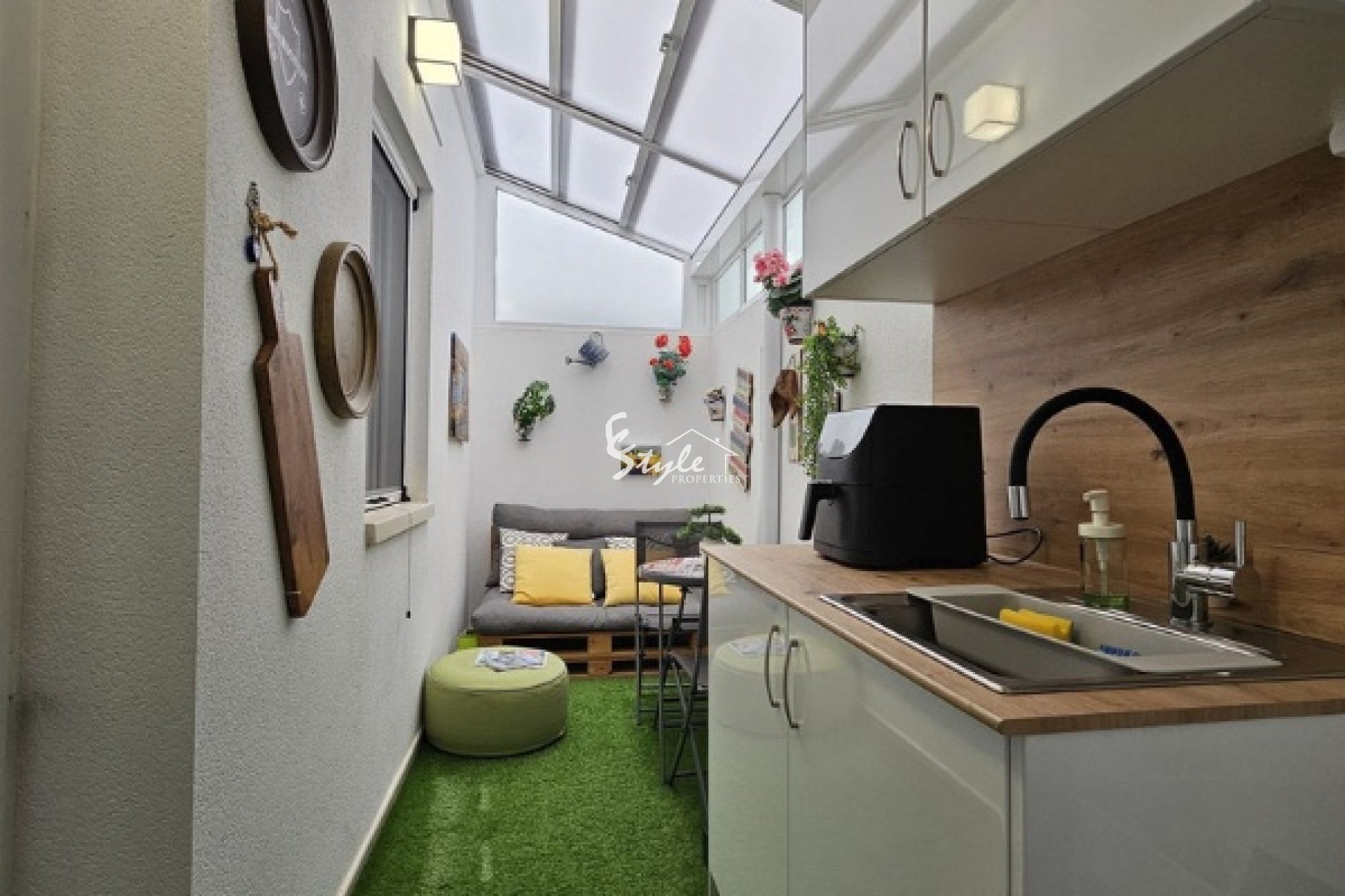Квартира имеет частный сад площадью 30 м² с фруктовыми деревьями и растениями. Терраса площадью 10 м² полностью застеклена, что расширяет жилую зону, создавая приятную обстановку для ужина на свежем воздухе или утреннего кофе.