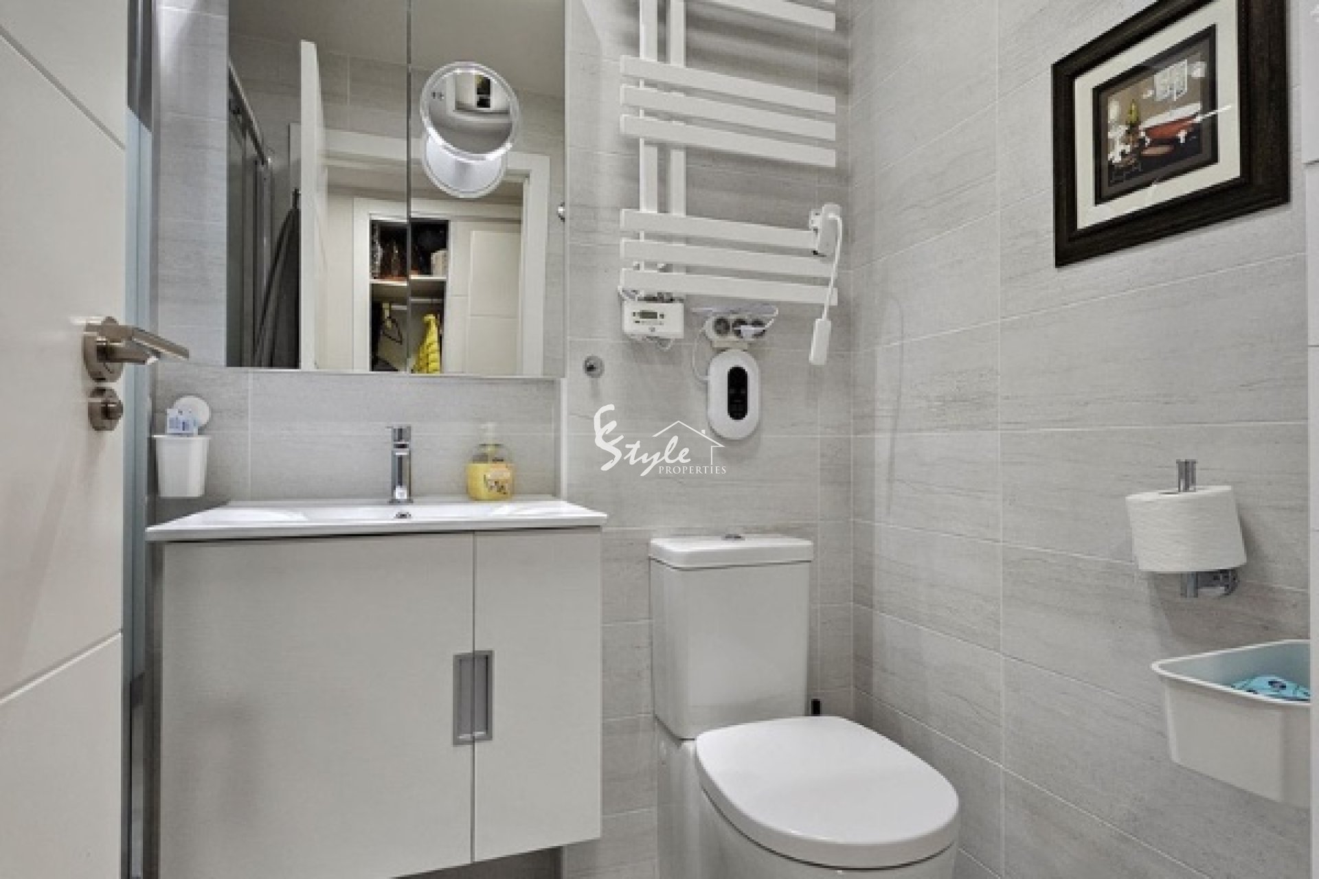 В главной спальне есть встроенный шкаф и ванная комната. Вторая спальня в настоящее время используется как гостевая комната . Из коридора есть доступ ко второй ванной комнате. В обеих ванных комнатах установлено электрическое отопление.