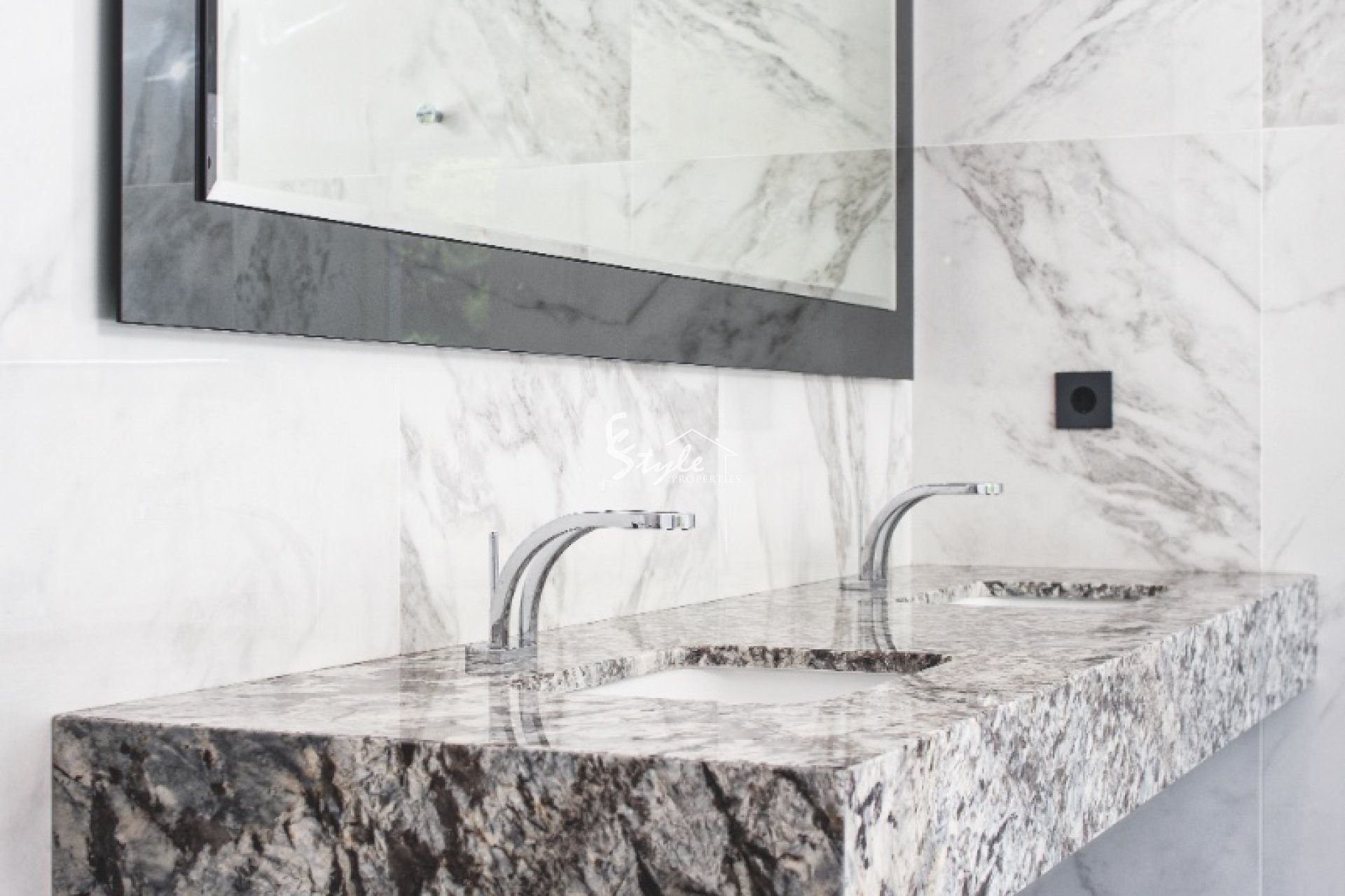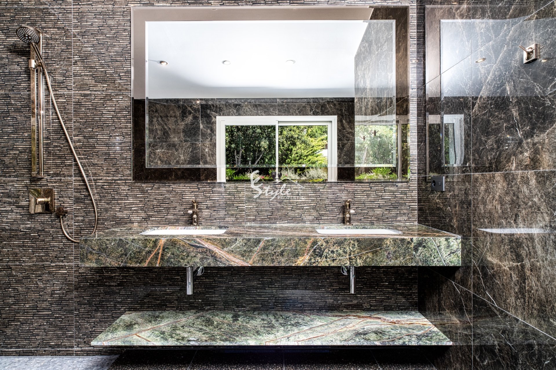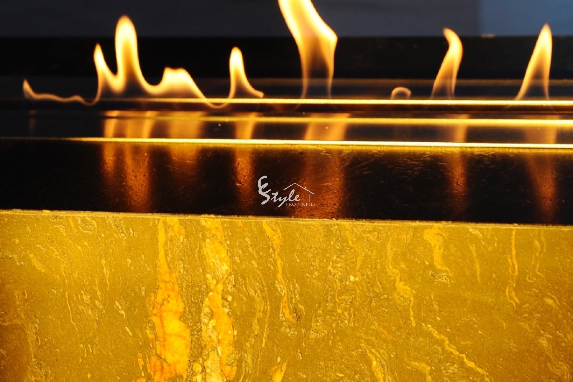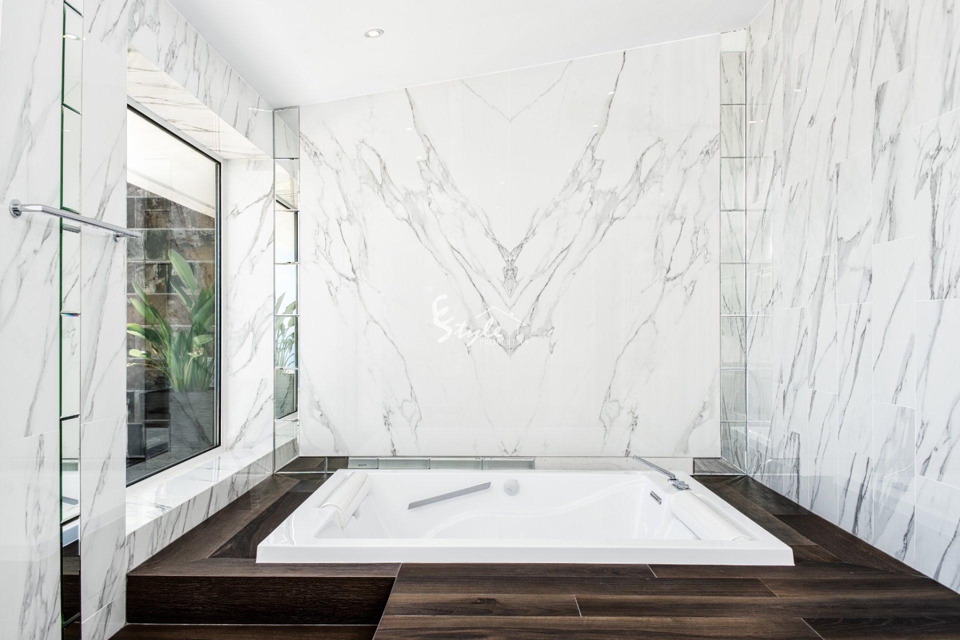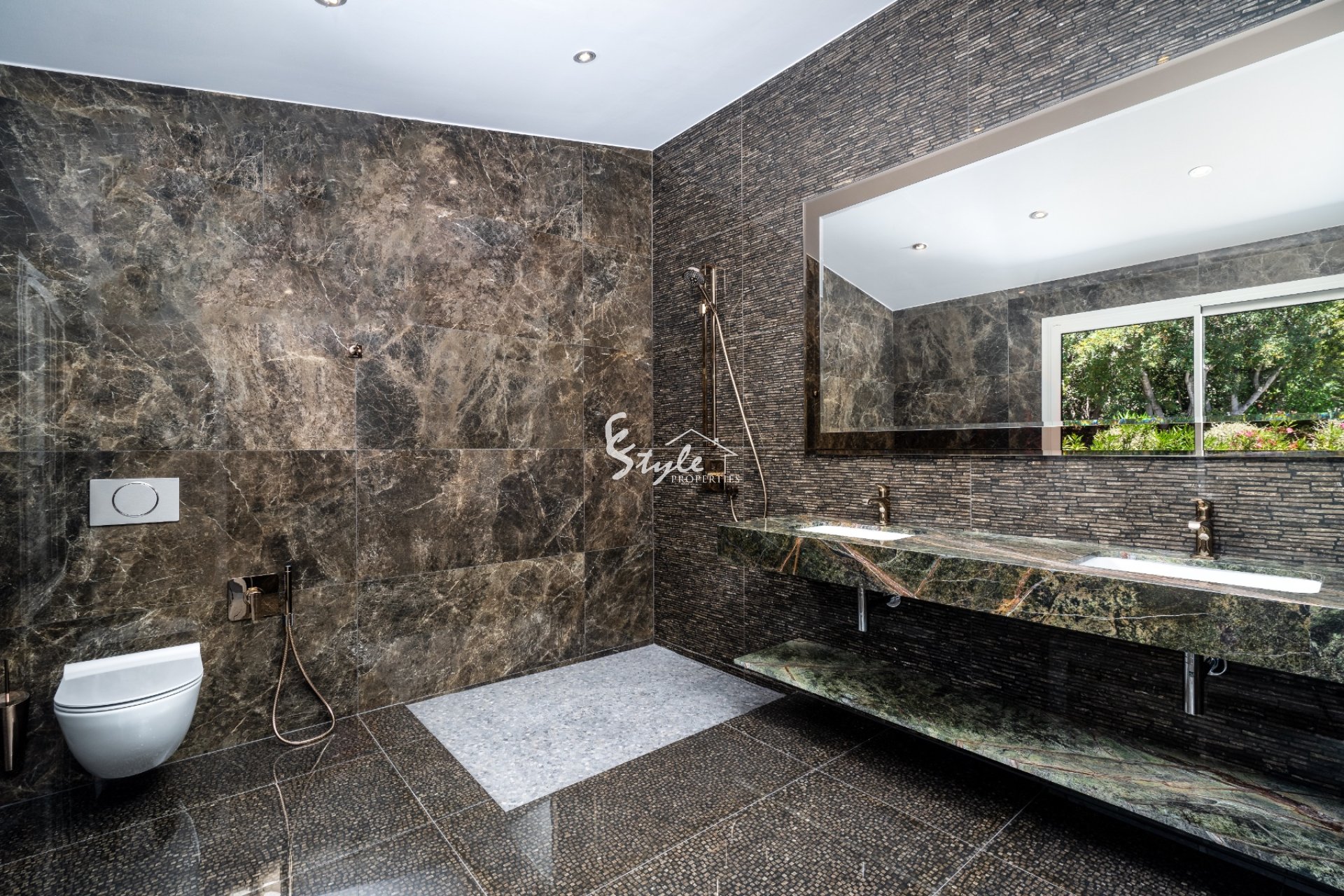 Виллу окружает ухоженный ландшафтный сад с подсветкой и автоматическим поливом. Дом оснащён центральным кондиционированием, отоплением, а также двумя каминами — в гостиной и в главной спальне.