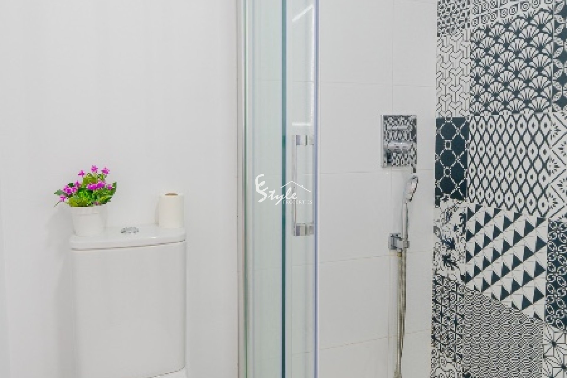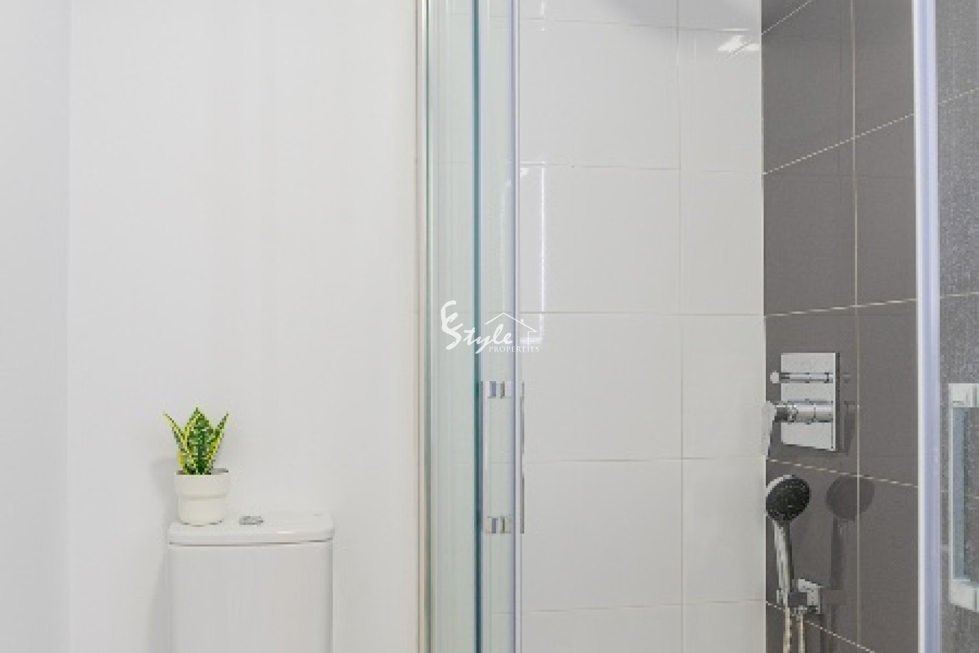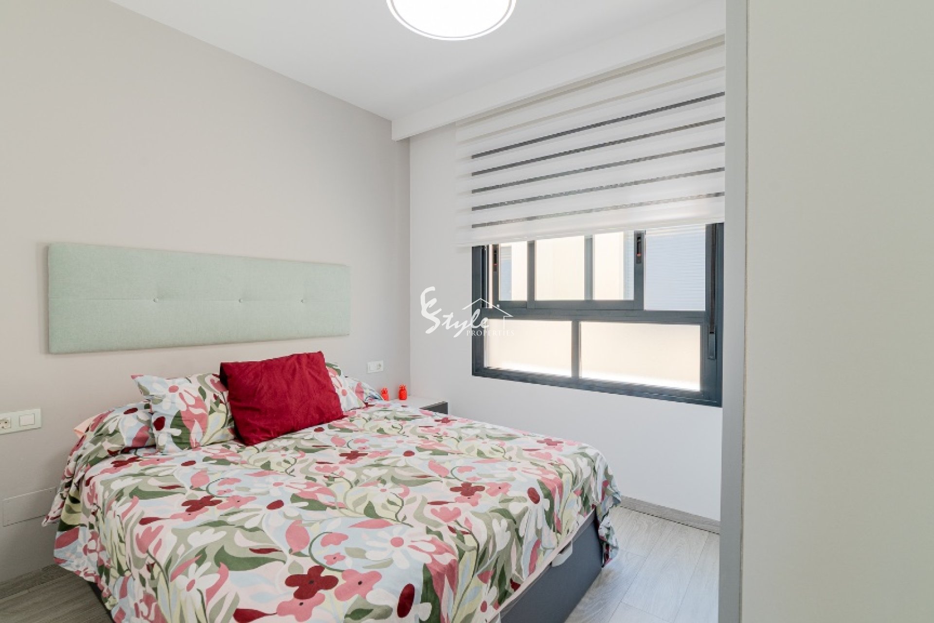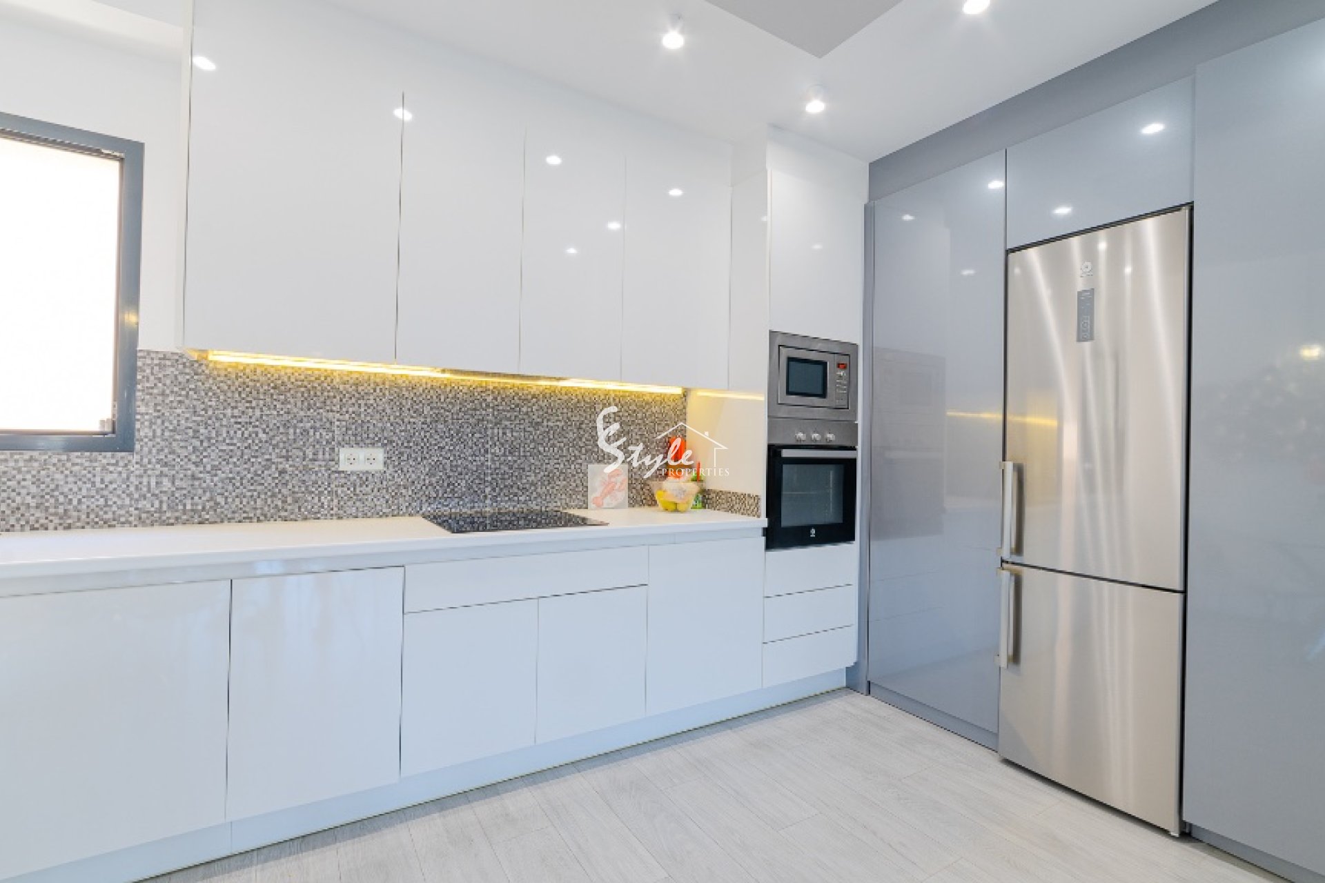 Апартаменты имеют 2 спальни, 2 ванные комнаты, гостиную, кухню открытого плана, террасу с видом на бассейн и солярий с видом на море. . Жилой комплекс построен по современным стандартам, с использованием материалов высокого качества. С помощью специально разработанного дизайна в квартире установлены термическая и акустическая изоляция, кондиционеры воздуха, окна с двойными стеклопакетами и жалюзи . Квартира продается с мебелью и бытовой техникой