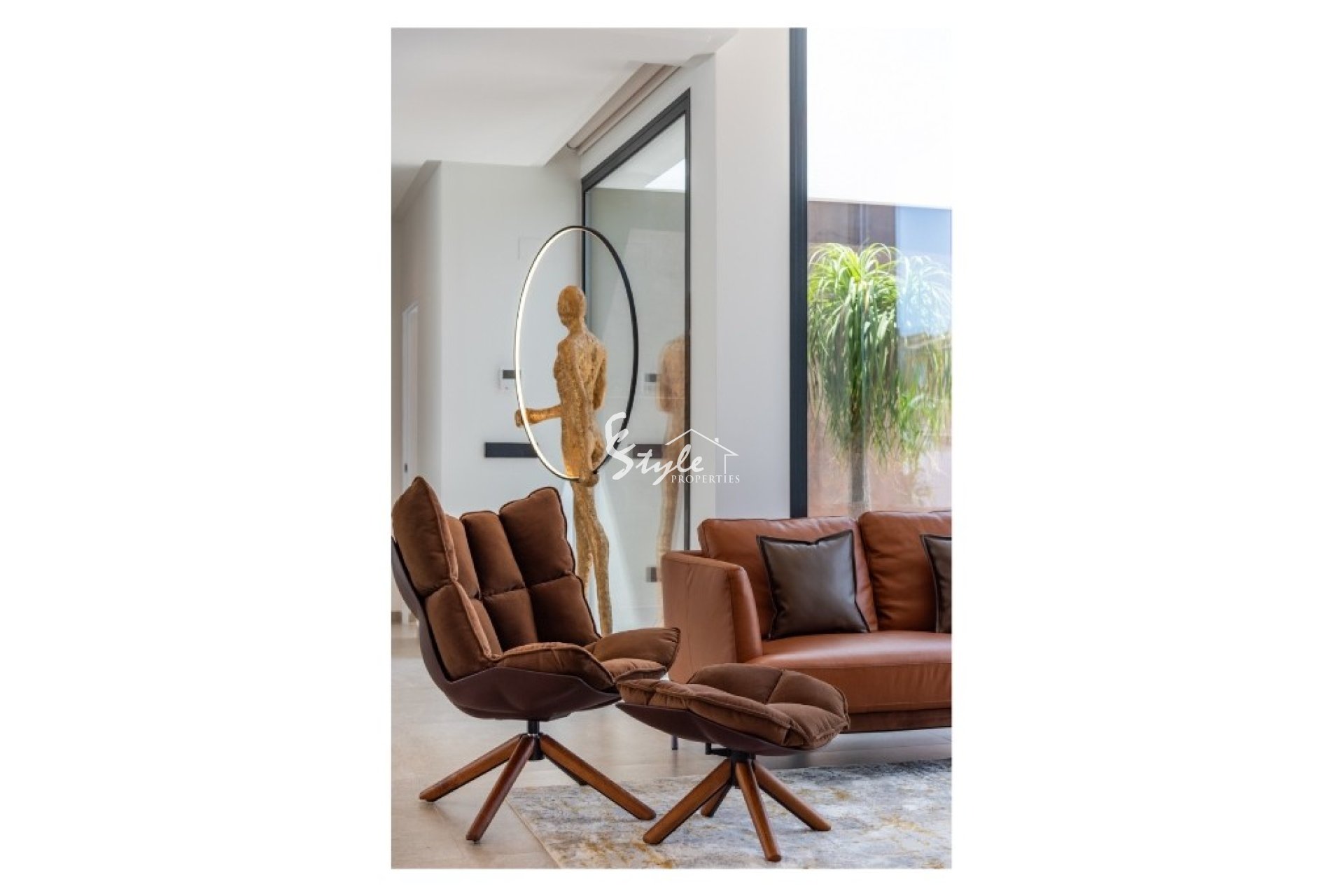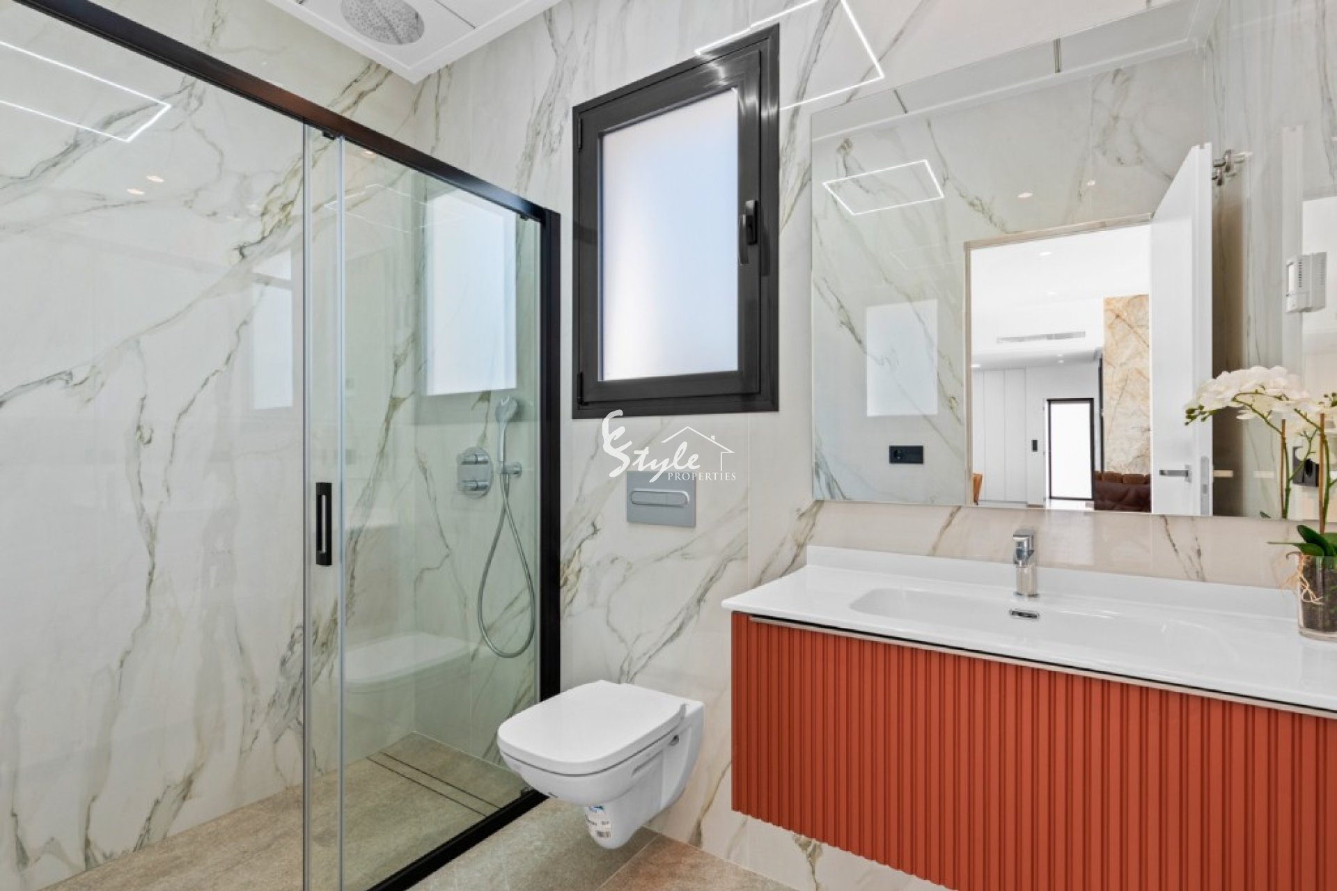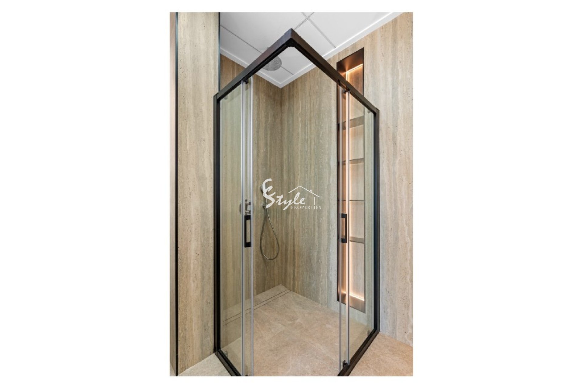 В ней есть 3 просторные спальни со встроенными шкафами, 3 ванные комнаты, большая терраса. Все материалы отделки выполнены из высококачественных материалов и имеют современный дизайн. В доме есть бронированная дверь, полностью благоустроенный сад с террасой, электрические жалюзи, окна с двойными стеклопакетами, полы с подогревом и многое другое.