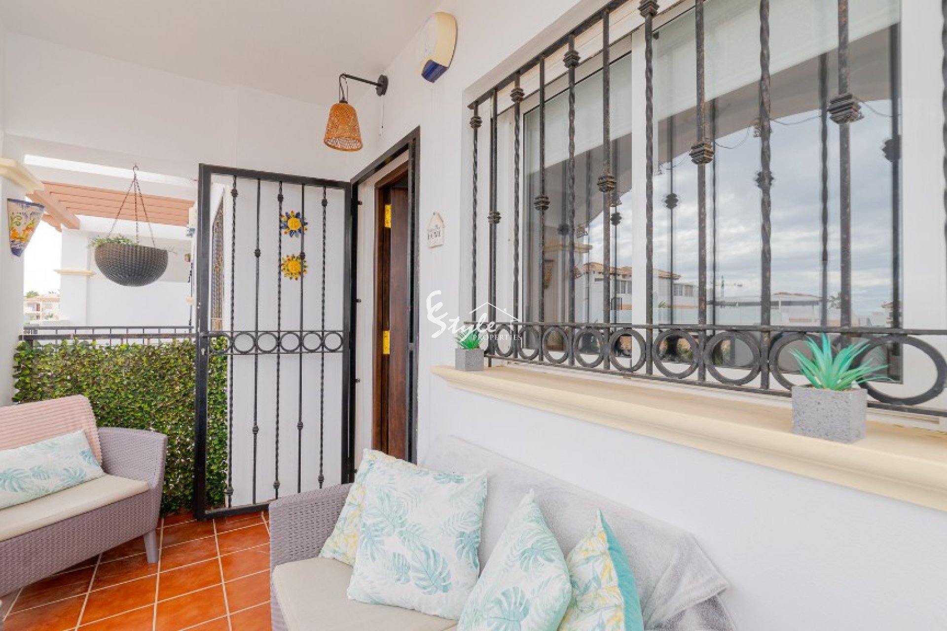 Квартира состоит из просторного частного сада, уютного балкона, 2 спален, 2 ванных комнат, милой гостиной и оборудованной кухни с подсобным помещением. Но самое главное преимущество дома — это собственный солярий с открытым видом. Здесь вы можете наслаждаться мягким испанским солнцем с друзьями или семьёй круглый год.