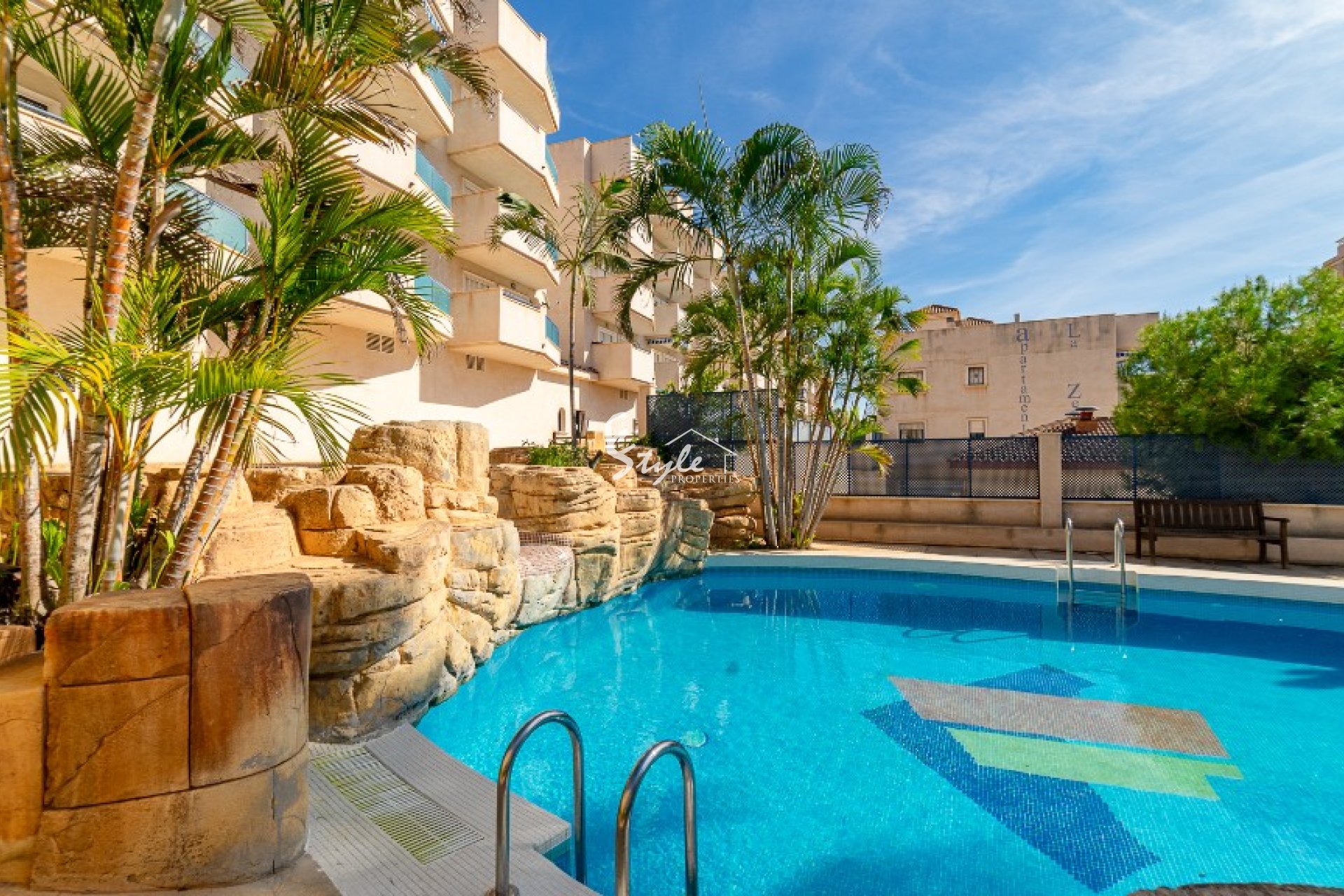 Жилой комплекс находится в хорошем состоянии и предлагает своим жильцам общий бассейн, парковочные места, детскую площадку, зоны отдыха и всё необходимое для комфортной жизни.