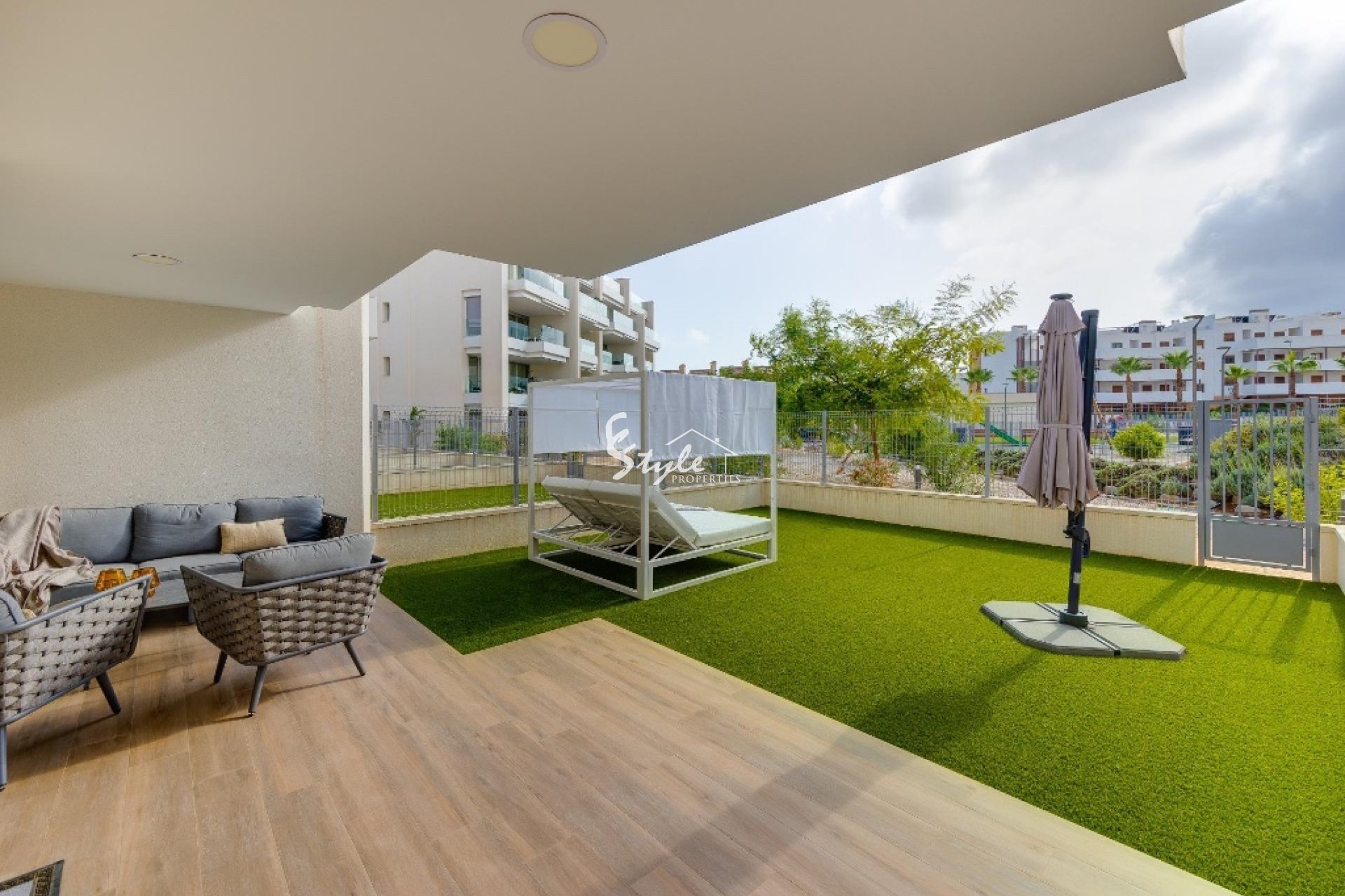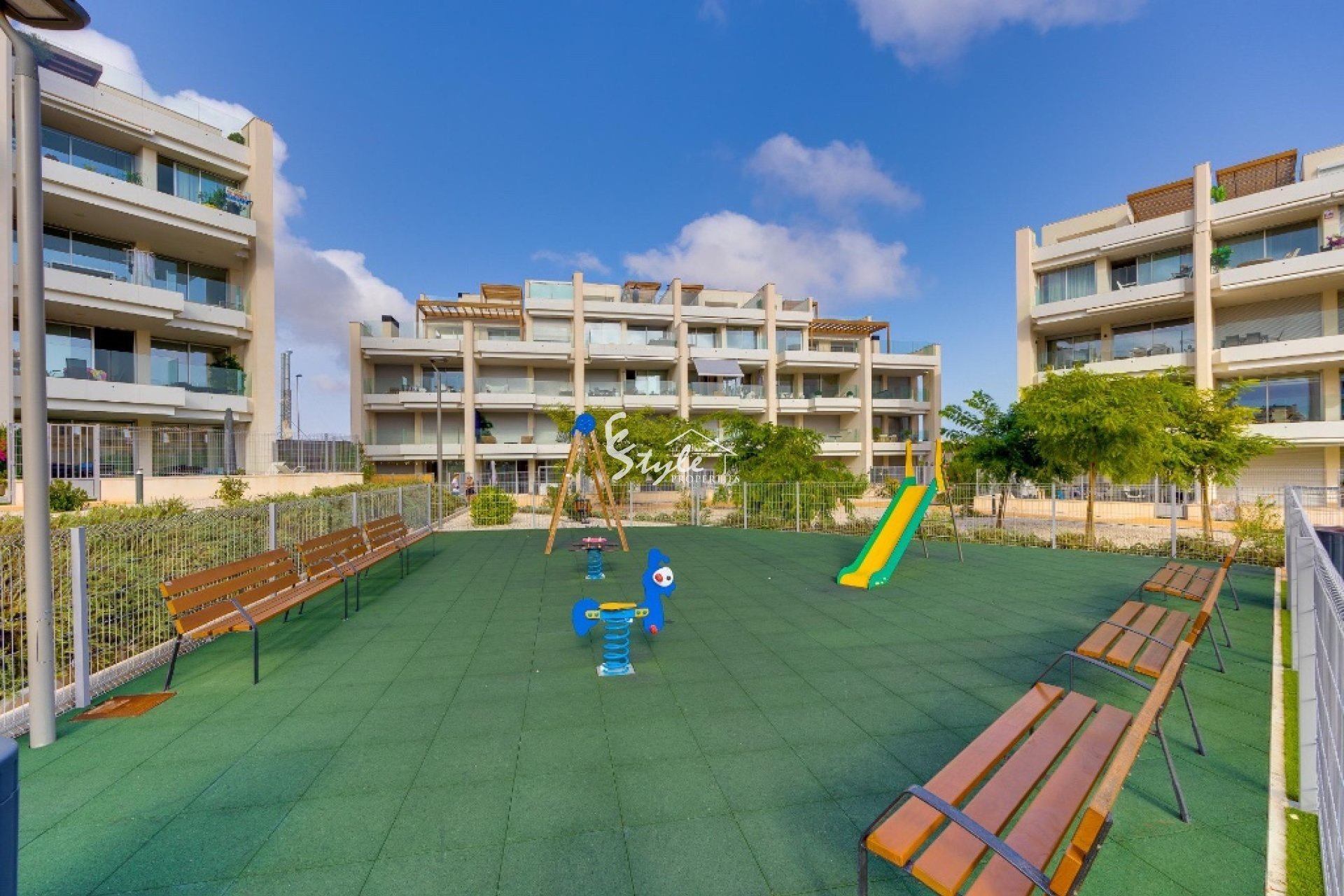 Закрытый жилой комплекс полностью оборудован: просторные зеленые зоны, детская площадка, общие бассейны для взрослых и детей, а также зоны общего пользования, идеально подходящие для отдыха или времяпрепровождения с семьей. Он также находится недалеко от всех необходимых объектов инфраструктуры: супермаркетов, ресторанов, зон отдыха, полей для гольфа, и всего в нескольких минутах от пляжей Ориуэла-Коста.