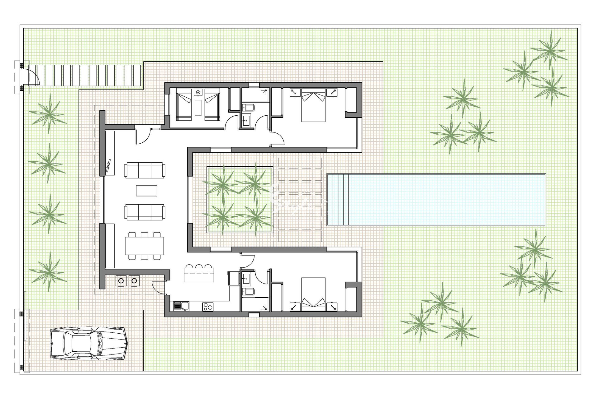Экстерьер дома — это настоящий оазис спокойствия. Сад, тщательно спроектированный, предлагает зеленое пространство, идеально подходящее для наслаждения свежим воздухом и организации семейных встреч или встреч с друзьями. Кроме того, терраса предоставляет идеальное место для отдыха и наслаждения средиземноморским климатом. Наличие перголы добавляет элегантности и функциональности, позволяя наслаждаться внешним пространством даже в самые солнечные дни. Эти внешние элементы превращают недвижимость в идеальное место для жизни на свежем воздухе в Бенихофаре.