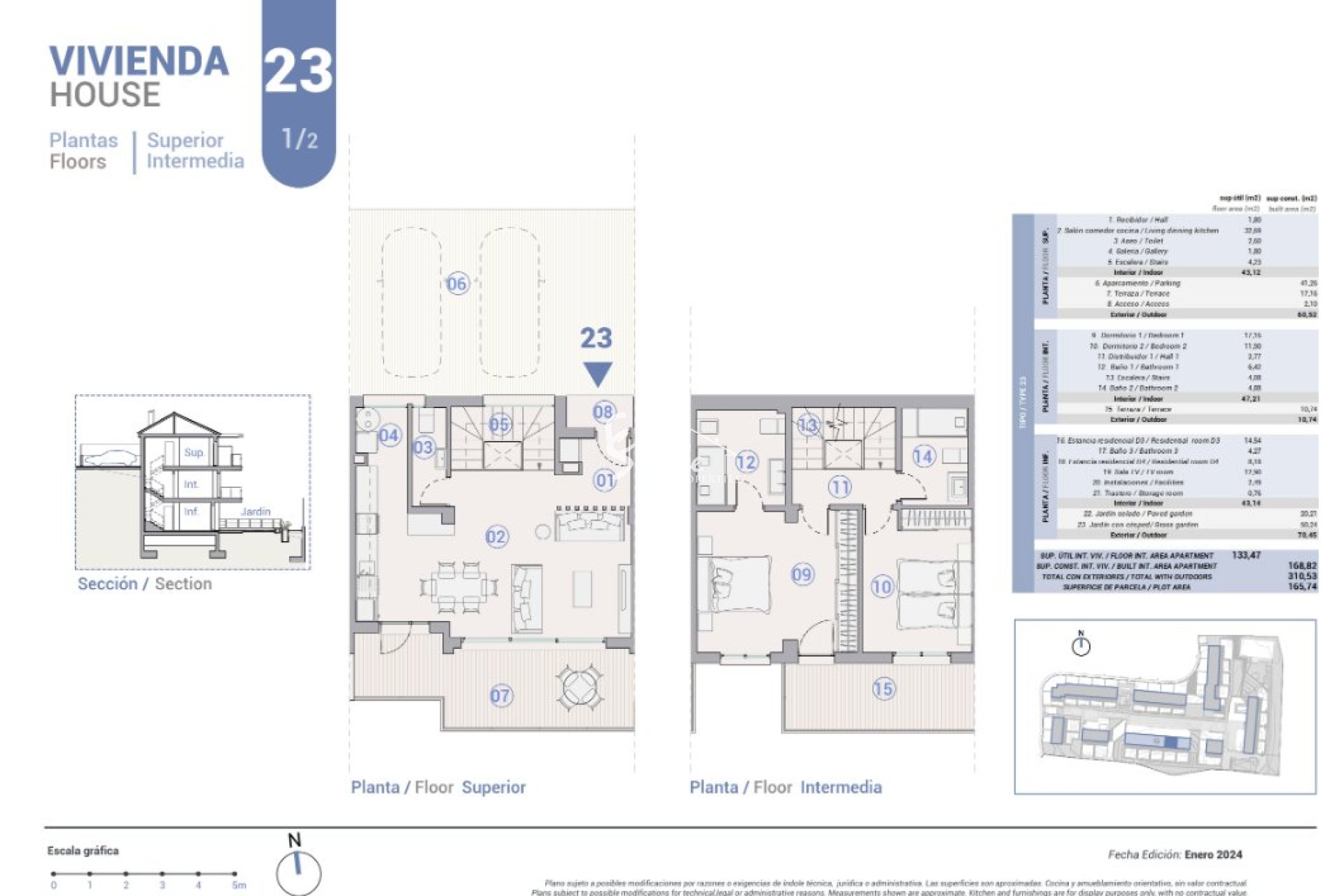Интерьеры жилья тщательно спроектированы для обеспечения максимального комфорта и функциональности. С вариантами на 3 и 4 спальни и 3 ванные комнаты, каждый дом адаптируется к потребностям современных семей. Деревянные полы добавляют тепла и элегантности, а кондиционер обеспечивает приятную атмосферу круглый год. Кухни оснащены высококачественной бытовой техникой, а встроенные шкафы предлагают эффективное и незаметное хранение. Планировка включает частный гараж, обеспечивая удобство и безопасность для жителей.
