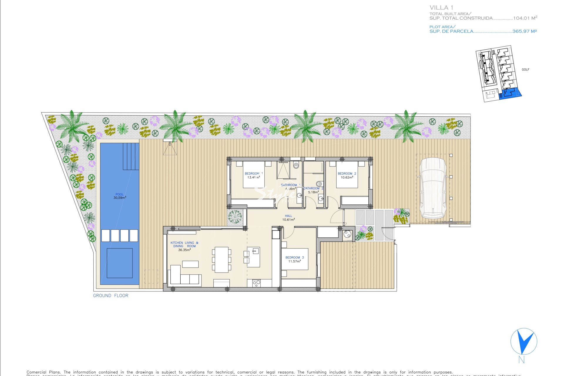 Интерьер этих отдельных домов разработан с учетом комфорта и стиля. Планировка включает три спальни и две ванные комнаты, каждое пространство оптимизировано для обеспечения простора и функциональности. Керамическая плитка придает современный вид и легка в уходе. Дома оснащены кондиционерами для обеспечения комфорта в течение всего года. Кроме того, имеются встроенная бытовая техника, встроенные шкафы для максимального увеличения пространства для хранения, электрические жалюзи для большего удобства и видеодомофон для обеспечения безопасности.