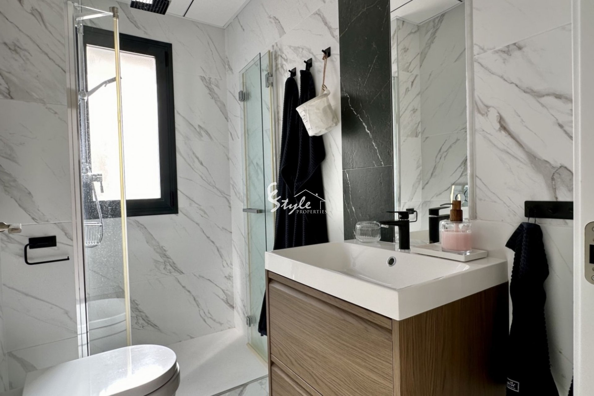Дом состоит из двух этажей и имеет 130 м² жилой площади. Включает просторную гостиную, современную кухню, полностью оборудованную техникой, и три спальни, две из которых с собственными ванными комнатами. Все спальни оснащены встроенными шкафами и наполнены естественным светом.