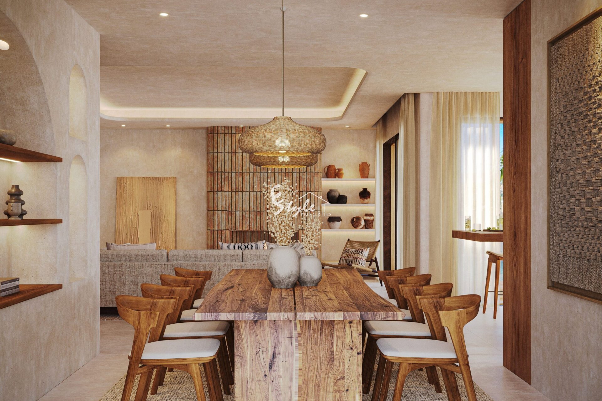 Интерьер виллы спроектирован для обеспечения комфорта и функциональности. В ней три спальни, все с встроенными шкафами, которые оптимизируют пространство для хранения. Четыре ванные комнаты оборудованы системой подогрева пола, обеспечивая оптимальный тепловой комфорт в течение всего года. Кухня оснащена современной бытовой техникой, облегчая повседневные задачи и способствуя практичному и эффективному образу жизни. Дизайн интерьера сосредоточен на просторе и свете, создавая уютную и элегантную атмосферу.