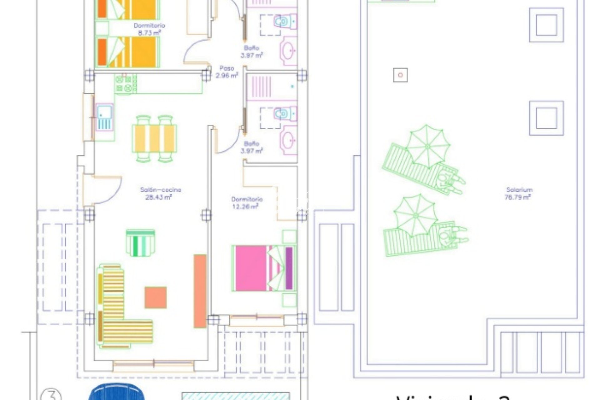 Внешние пространства этих домов — настоящий оазис спокойствия. Каждое шале имеет частный сад, идеально подходящий для наслаждения моментами на свежем воздухе в безопасной и уютной обстановке. Терраса — идеальное место для отдыха, принятия солнечных ванн или обедов на свежем воздухе с друзьями и семьей. Кроме того, каждая собственность имеет солярий, предлагающий дополнительное пространство для отдыха и наслаждения средиземноморским климатом. Наличие частного бассейна в каждом доме добавляет роскоши, позволяя освежиться в жаркие дни, не покидая дома.
