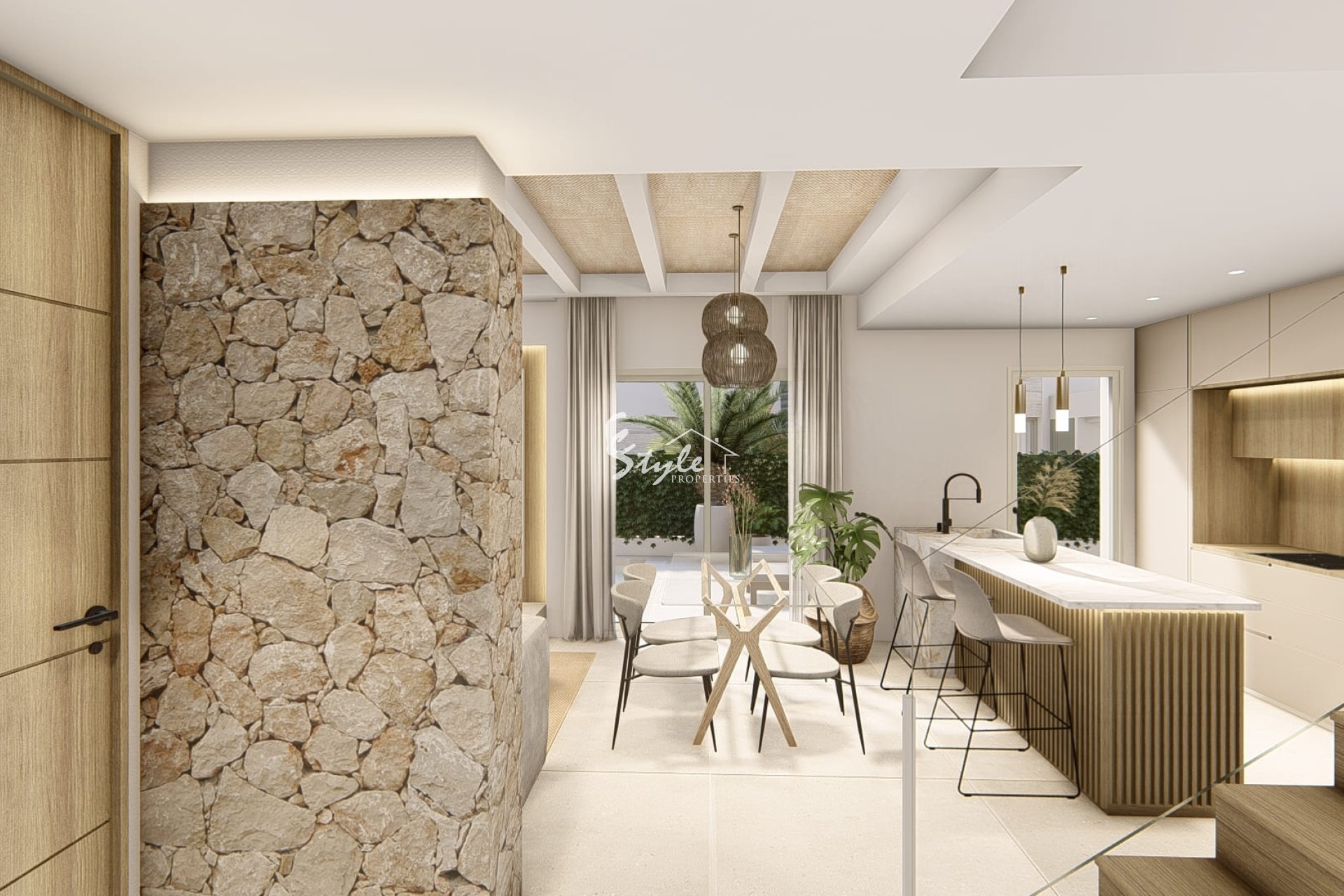 Интерьер таунхаусов в Сьюдад-Кесада разработан для максимального комфорта и функциональности. С вариантами на 3 спальни и 2 или 3 ванные комнаты, эти дома адаптируются к потребностям различных типов семей. Полы из керамогранита придают элегантность и легко поддерживаются, что делает их идеальными для повседневного использования. Встроенные шкафы в спальнях предлагают обширное пространство для хранения, поддерживая порядок и эстетику дома. Планировка домов продумана для максимального использования естественного света, создавая светлые и уютные пространства, которые приглашают к отдыху и семейному общению.