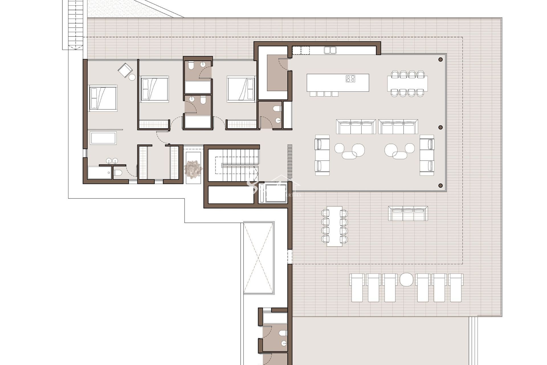 Интерьер виллы разработан для максимального комфорта и стиля. Недвижимость оснащена кондиционером, обеспечивающим приятную температуру в течение всего года. Встроенные шкафы предоставляют обширное пространство для хранения, поддерживая дом в порядке и без беспорядка. Кухня оборудована современной техникой, облегчая повседневные задачи и позволяя наслаждаться кулинарией в функциональной и элегантной обстановке. Планировка помещений продумана для максимального комфорта и уединения жителей.