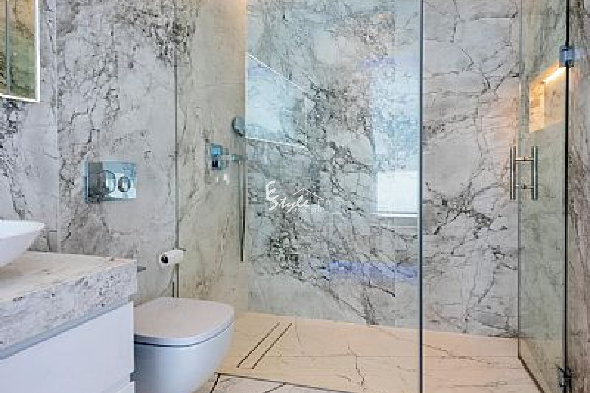 Интерьер виллы оснащен роскошными характеристиками, обеспечивающими максимальный комфорт. Мраморные полы добавляют элегантности, а система теплого пола обеспечивает приятную температуру круглый год. Вилла полностью меблирована и оснащена бытовой техникой премиум-класса, что облегчает переезд без хлопот. Электрические жалюзи и система умного дома обеспечивают дополнительный комфорт и безопасность. Кроме того, кондиционер обеспечивает прохладную и комфортную атмосферу в более теплые месяцы. Встроенные шкафы в спальнях предлагают много места для хранения.