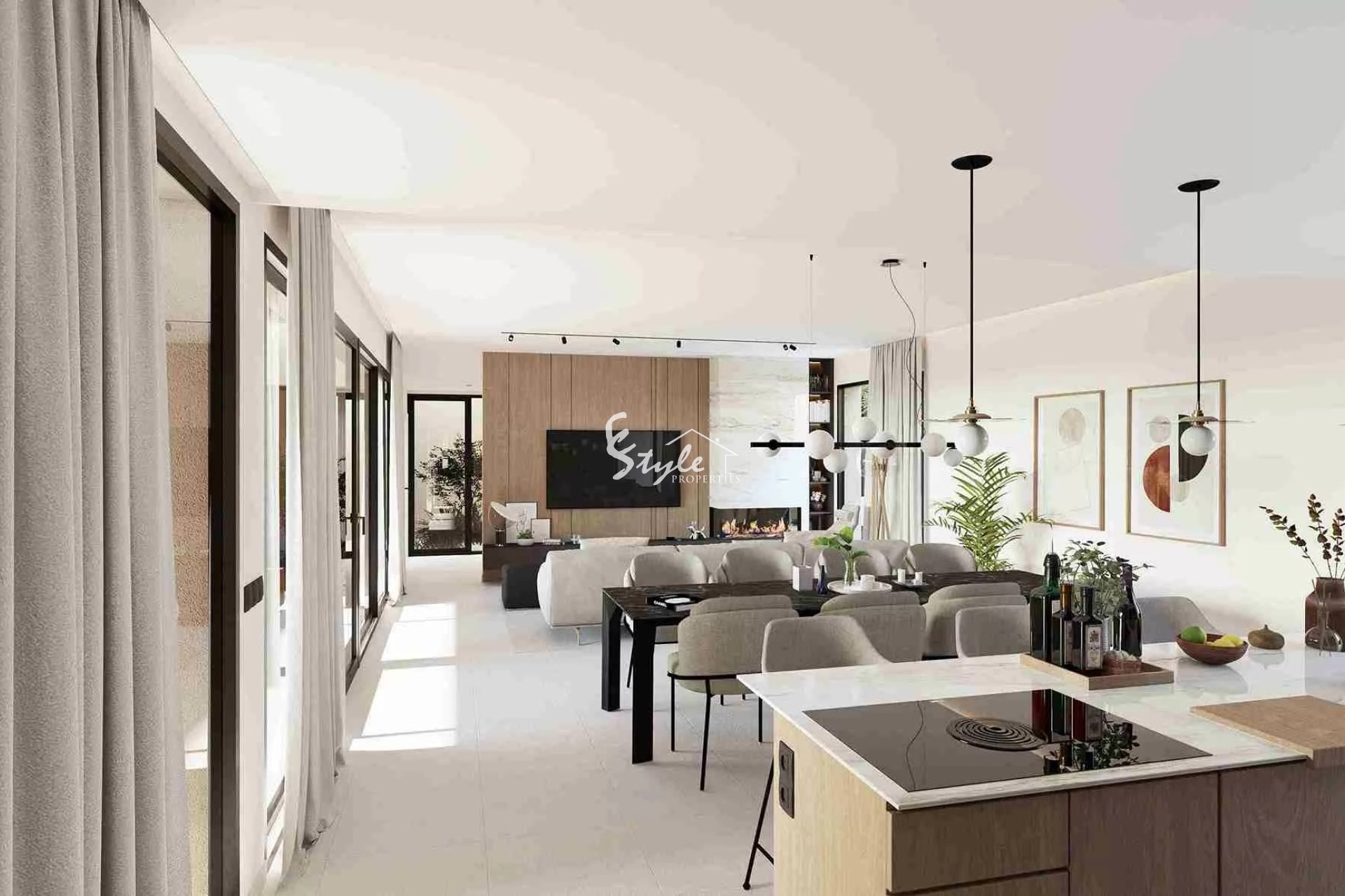 Внутри вилла спроектирована для максимального комфорта и функциональности. Встроенные шкафы в спальнях предлагают обширное пространство для хранения, поддерживая порядок и эстетику. Распределение четырех спален и четырех ванных комнат обеспечивает приватность и комфорт для всех членов семьи.