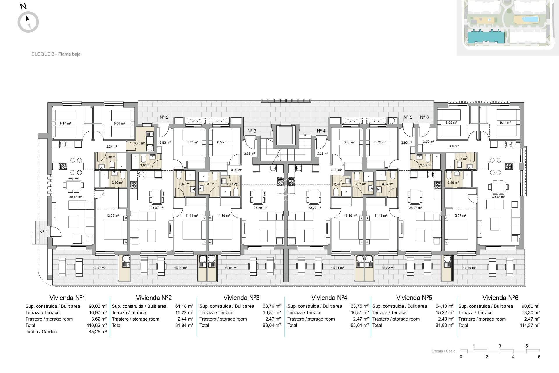 Экстерьеры этих объектов спроектированы для максимального наслаждения средиземноморским климатом. Каждое жилье имеет террасу, идеальную для отдыха на свежем воздухе или семейных обедов. Кроме того, некоторые типы включают частный сад, предоставляя дополнительное зеленое пространство для отдыха или садоводства. Для тех, кто ищет панорамные виды, Пентхаусы предлагают солярий, идеальный для принятия солнечных ванн или созерцания окружающей среды. Расстояние всего 2 км до моря позволяет наслаждаться морским бризом и прогулками по побережью в любое время.