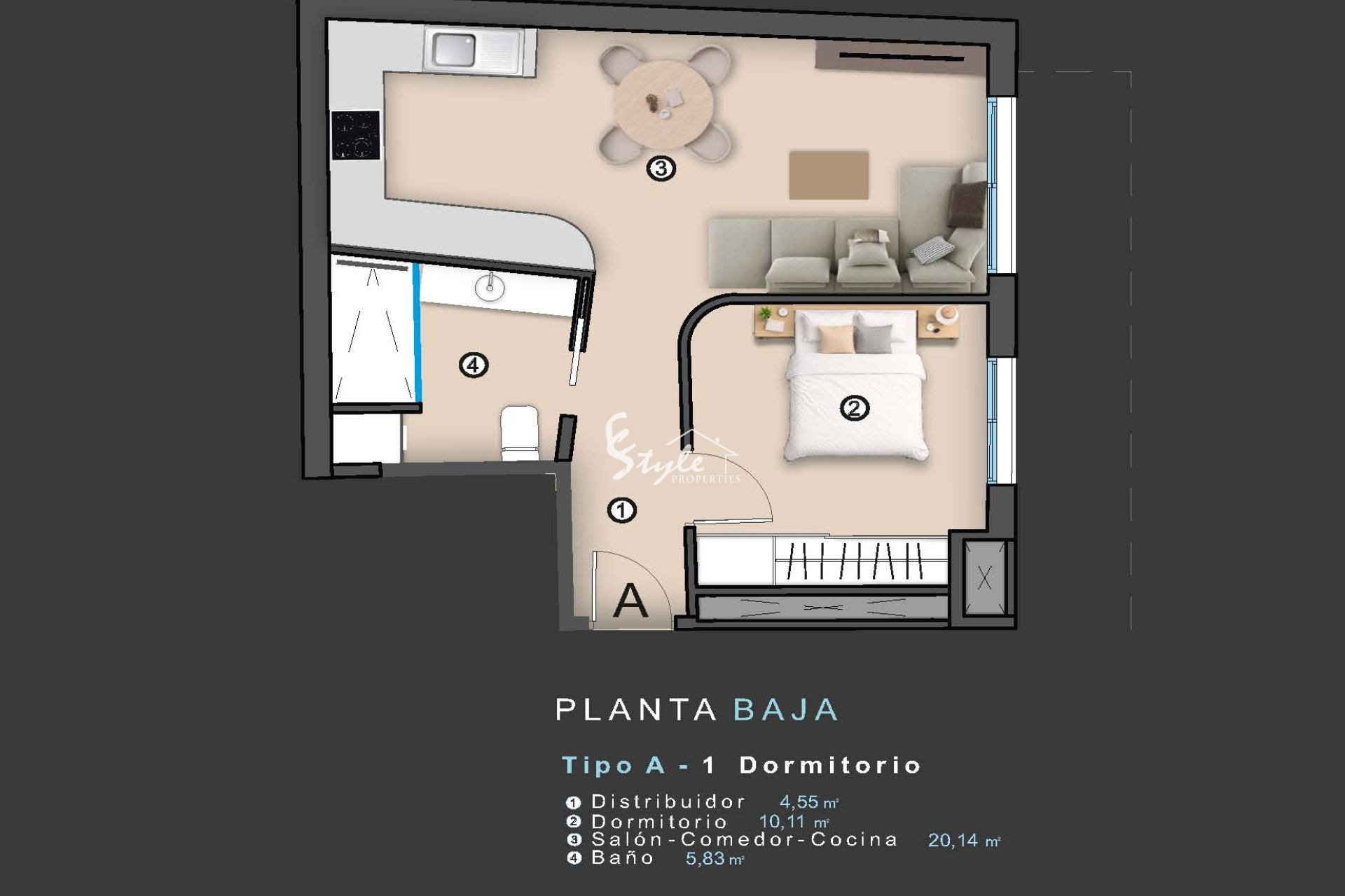 Внешняя среда этого жилого комплекса в Торревьехе разработана для обеспечения непревзойденного опыта жизни на открытом воздухе. Многие объекты имеют частный бассейн, идеальный для наслаждения средиземноморским климатом. Террасы, присутствующие в нескольких типах, предоставляют дополнительное пространство для отдыха и релаксации, позволяя наслаждаться видом на море и природным окружением. Близость к побережью, всего в 400 метрах, делает доступ к пляжу удобным и быстрым, превращая каждый день в возможность насладиться морем.