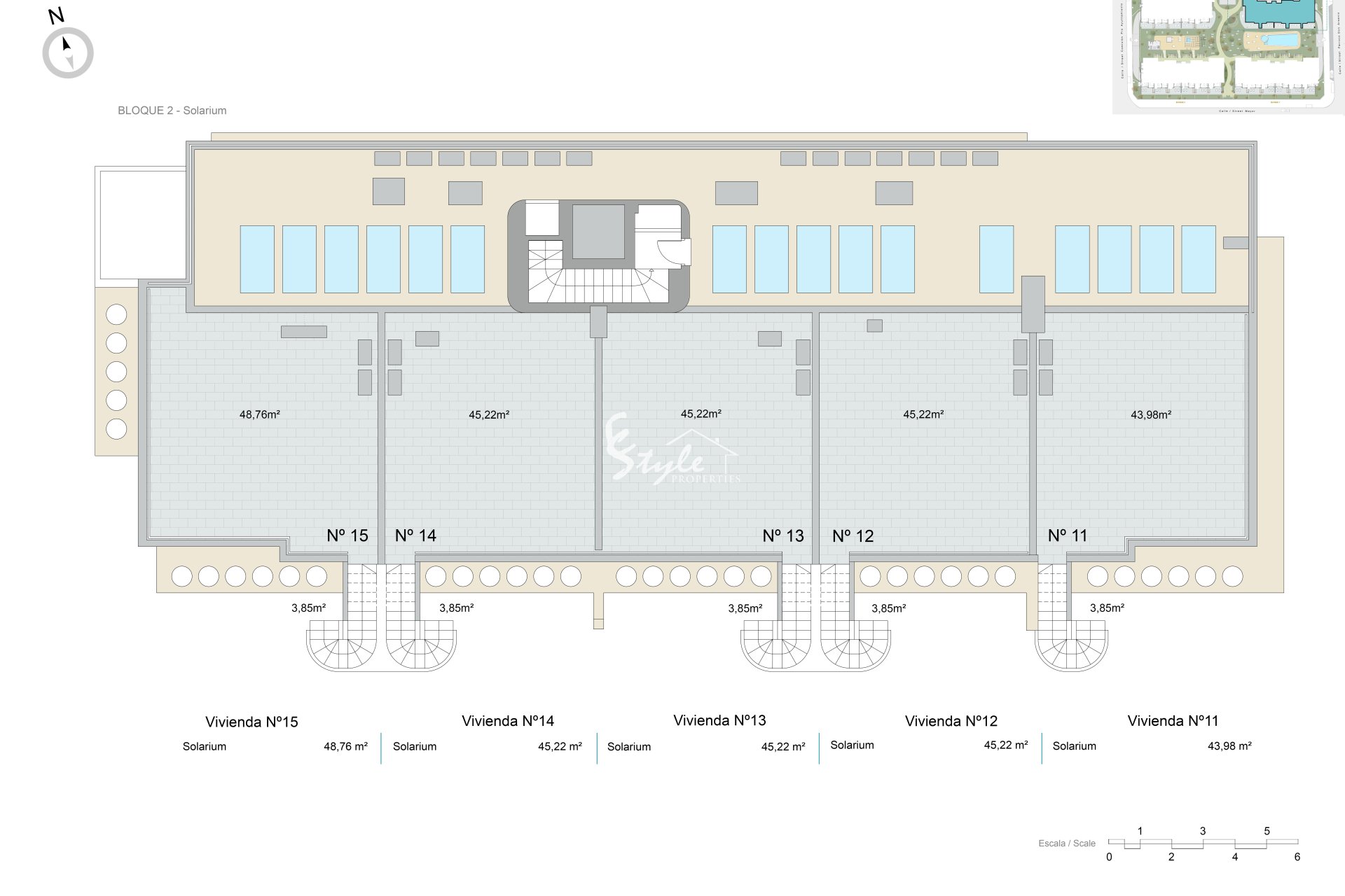 Экстерьеры этих объектов спроектированы для максимального наслаждения средиземноморским климатом. Каждое жилье имеет террасу, идеальную для отдыха на свежем воздухе или семейных обедов. Кроме того, некоторые типы включают частный сад, предоставляя дополнительное зеленое пространство для отдыха или садоводства. Для тех, кто ищет панорамные виды, Пентхаусы предлагают солярий, идеальный для принятия солнечных ванн или созерцания окружающей среды. Расстояние всего 2 км до моря позволяет наслаждаться морским бризом и прогулками по побережью в любое время.