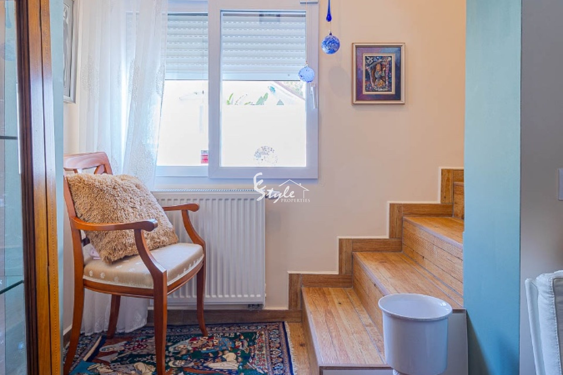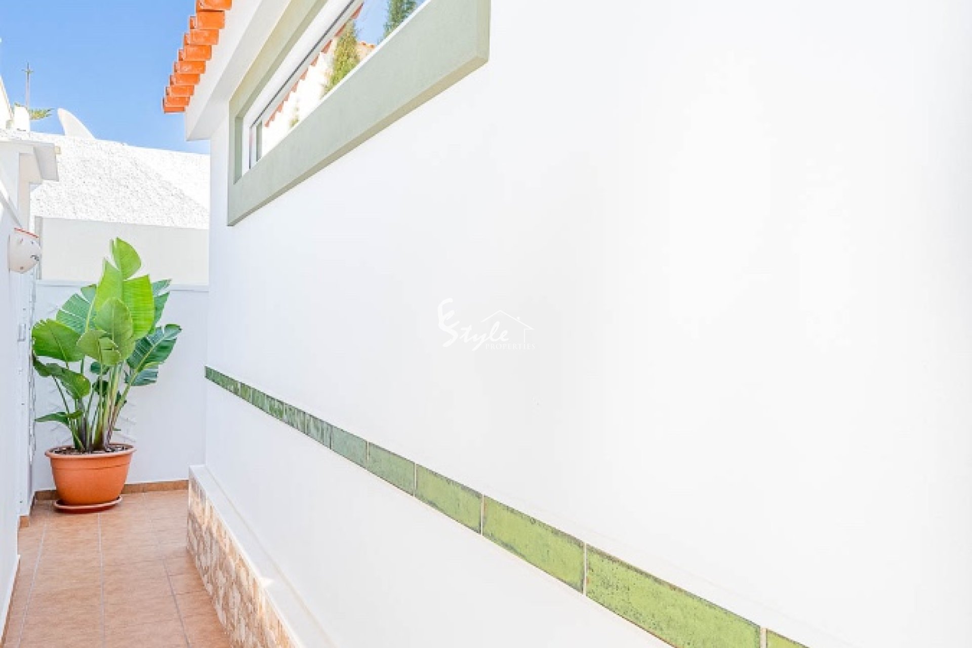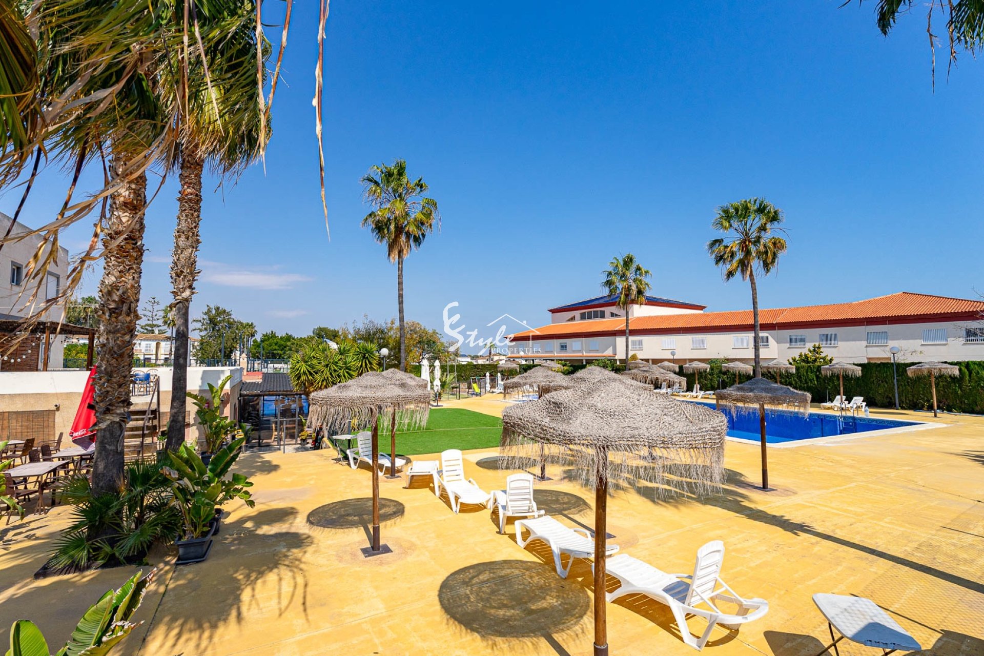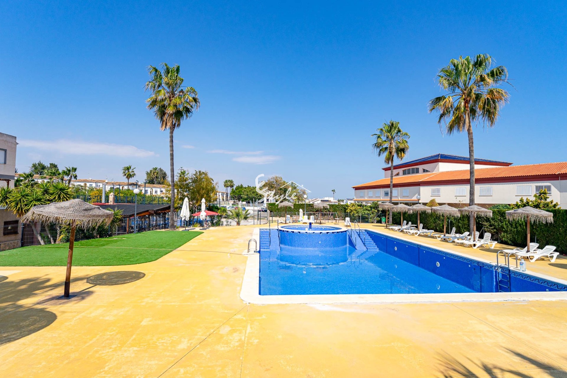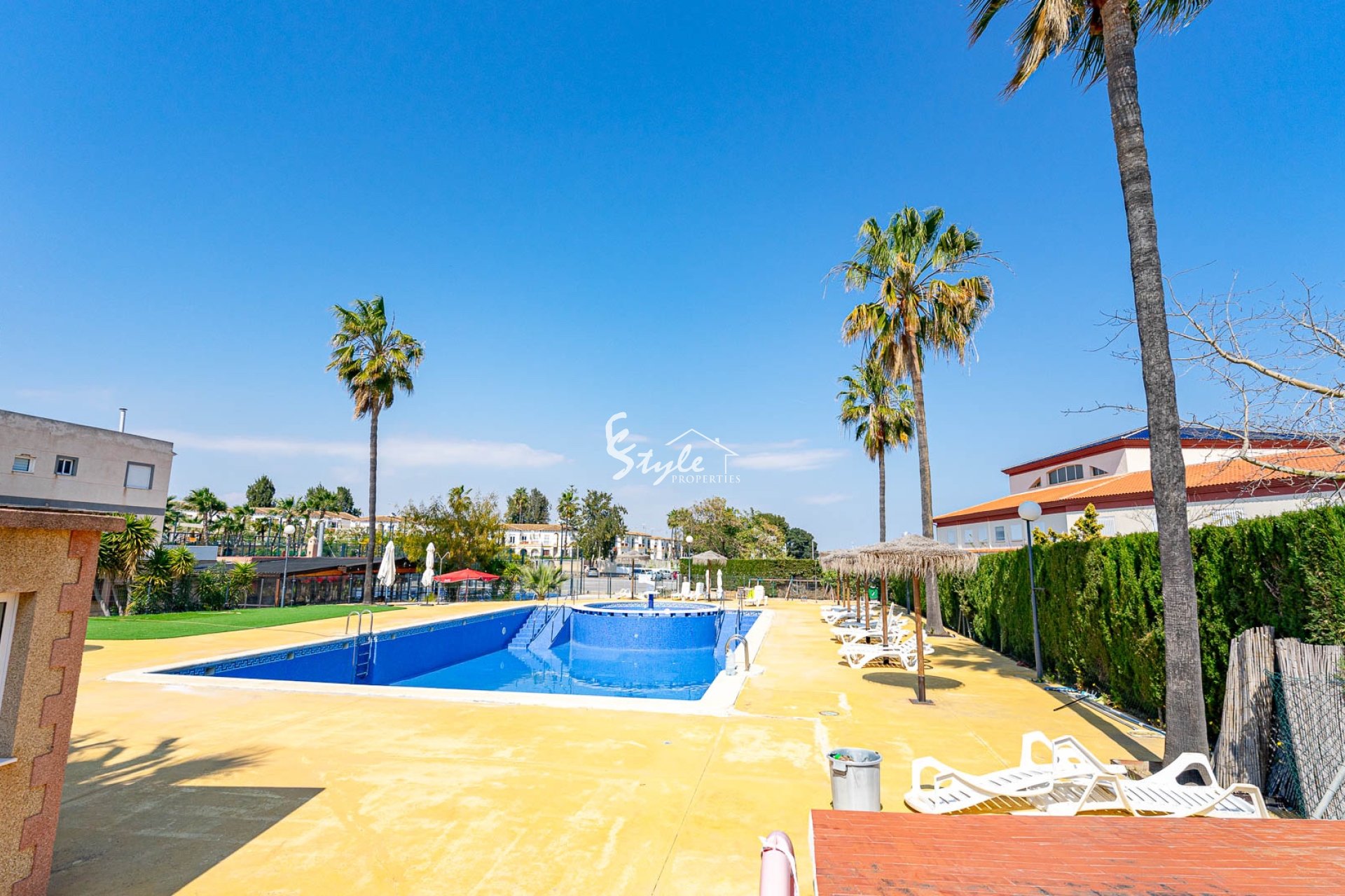 Расположен в тихом районе, ориентация на юго-запад, 2 отдельных входа. Всего 4 км до моря и 3 км до La Zenia Boulevard, есть общий бассейн.