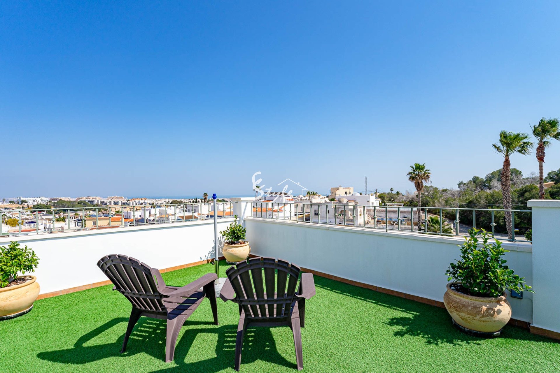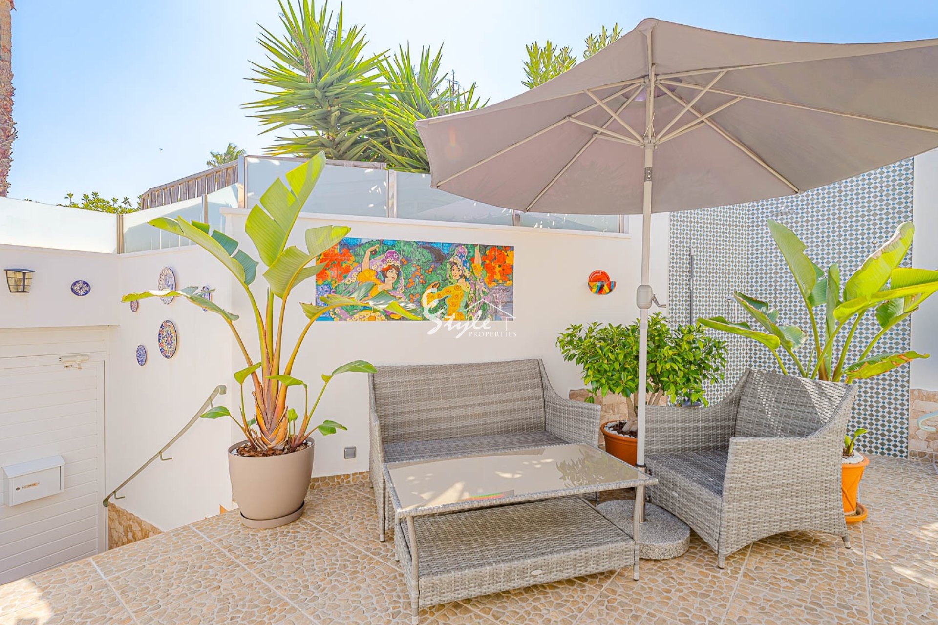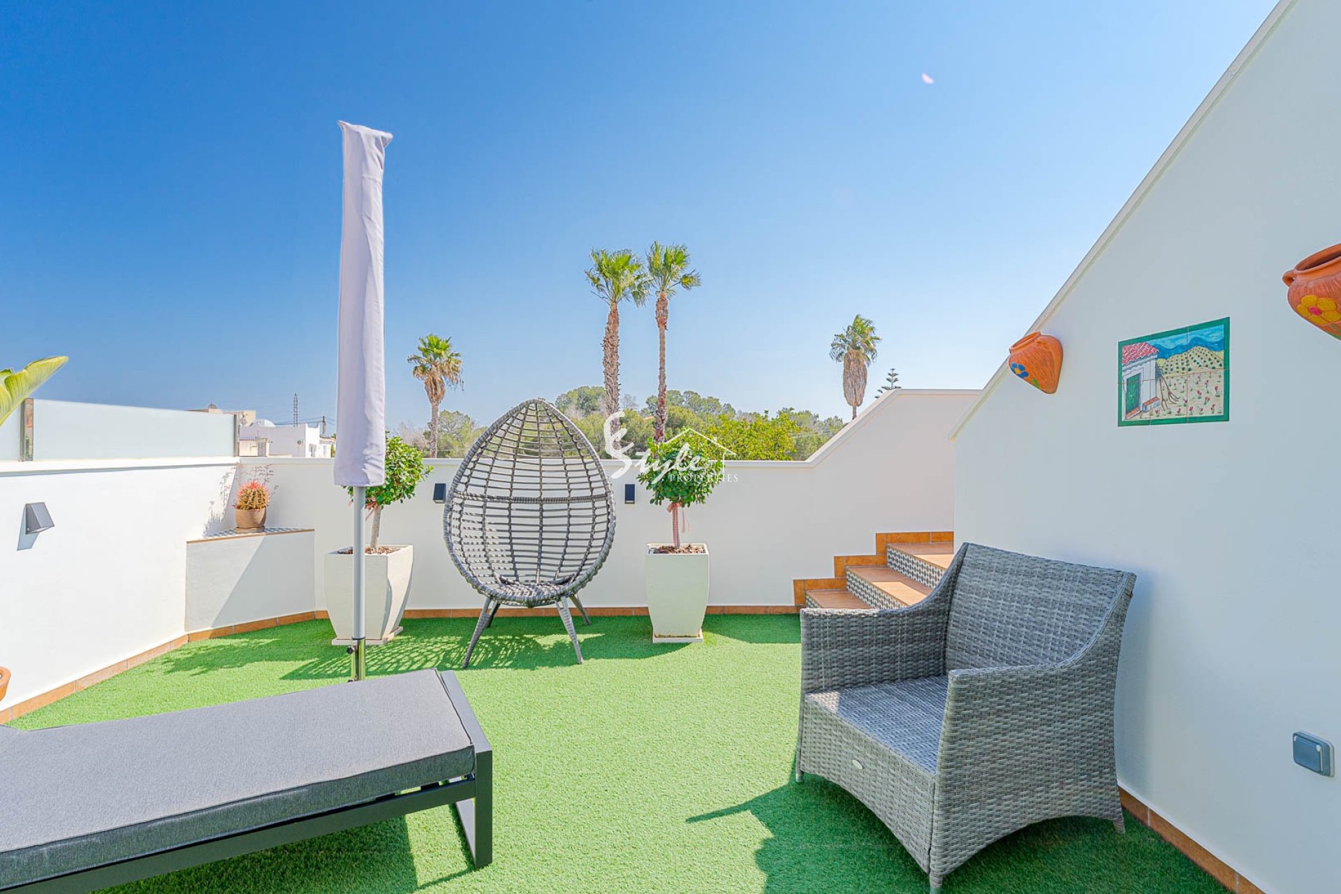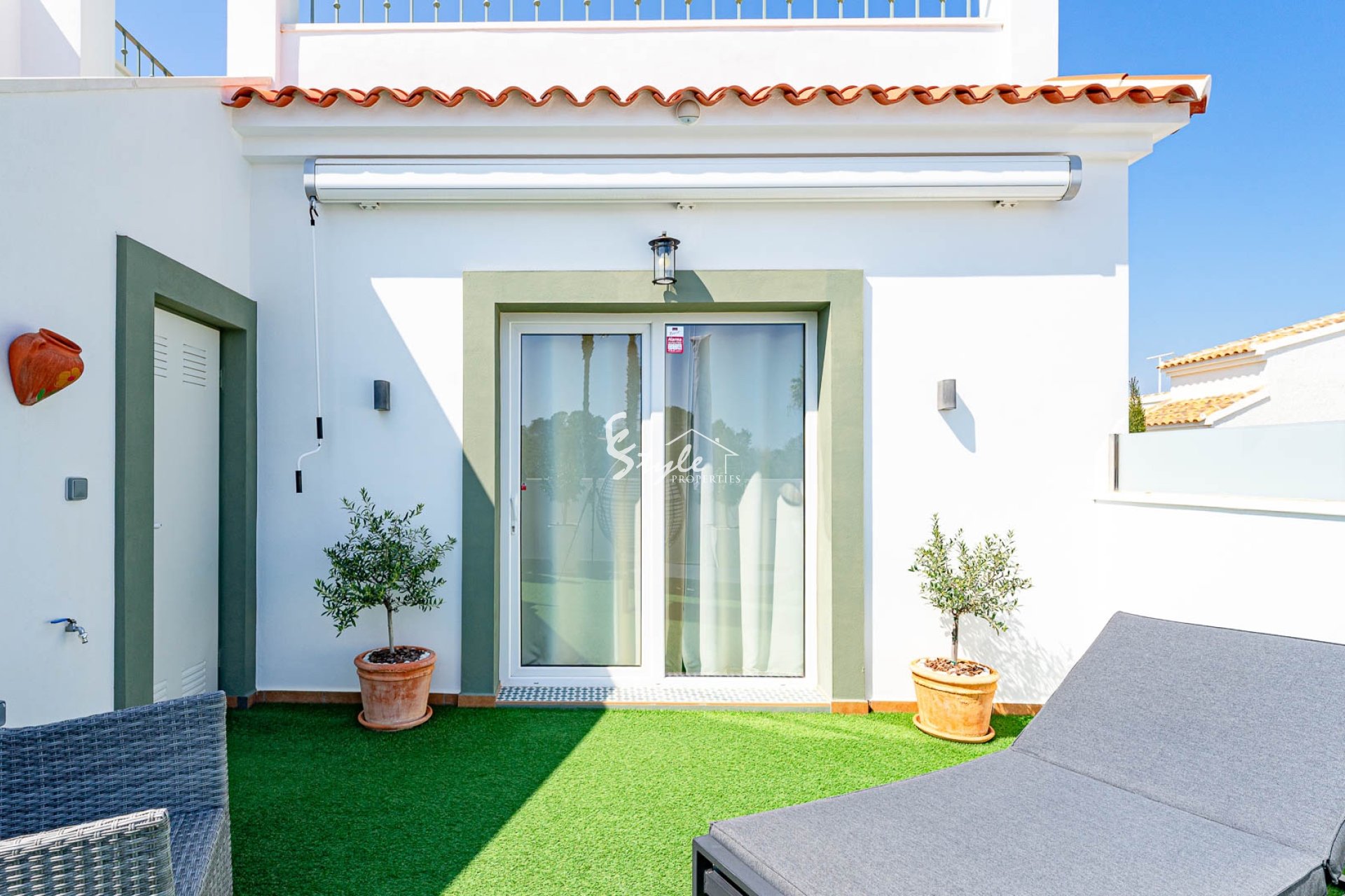 Расположен в тихом районе, ориентация на юго-запад, 2 отдельных входа. Всего 4 км до моря и 3 км до La Zenia Boulevard, есть общий бассейн.