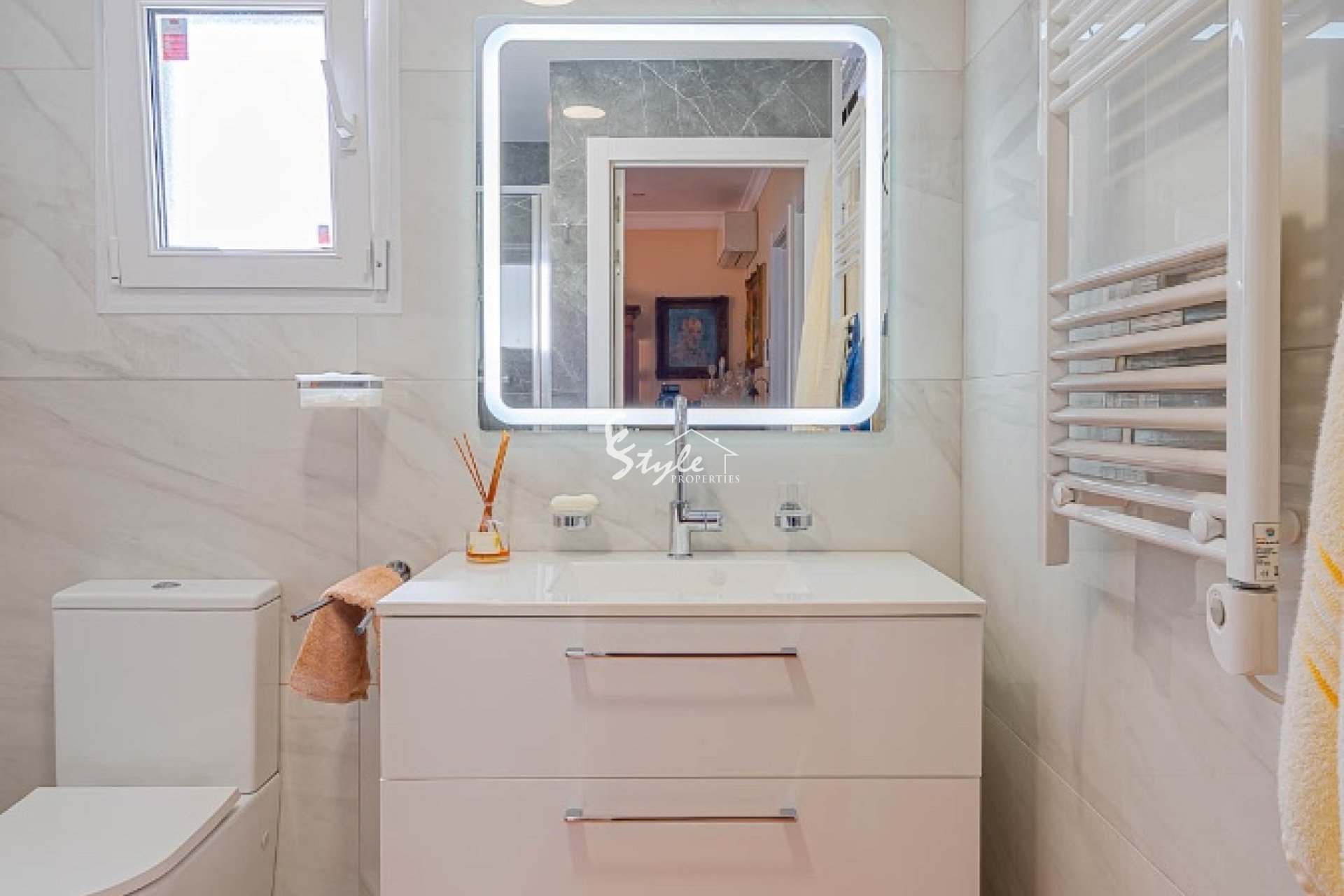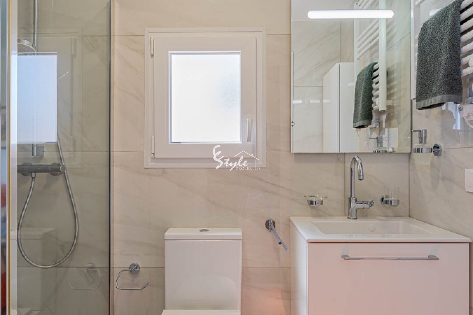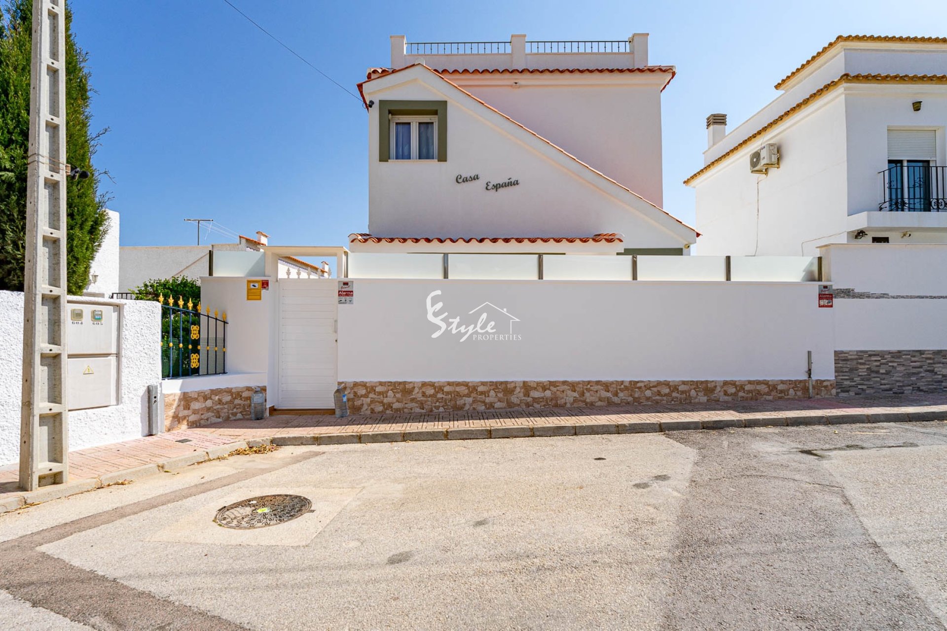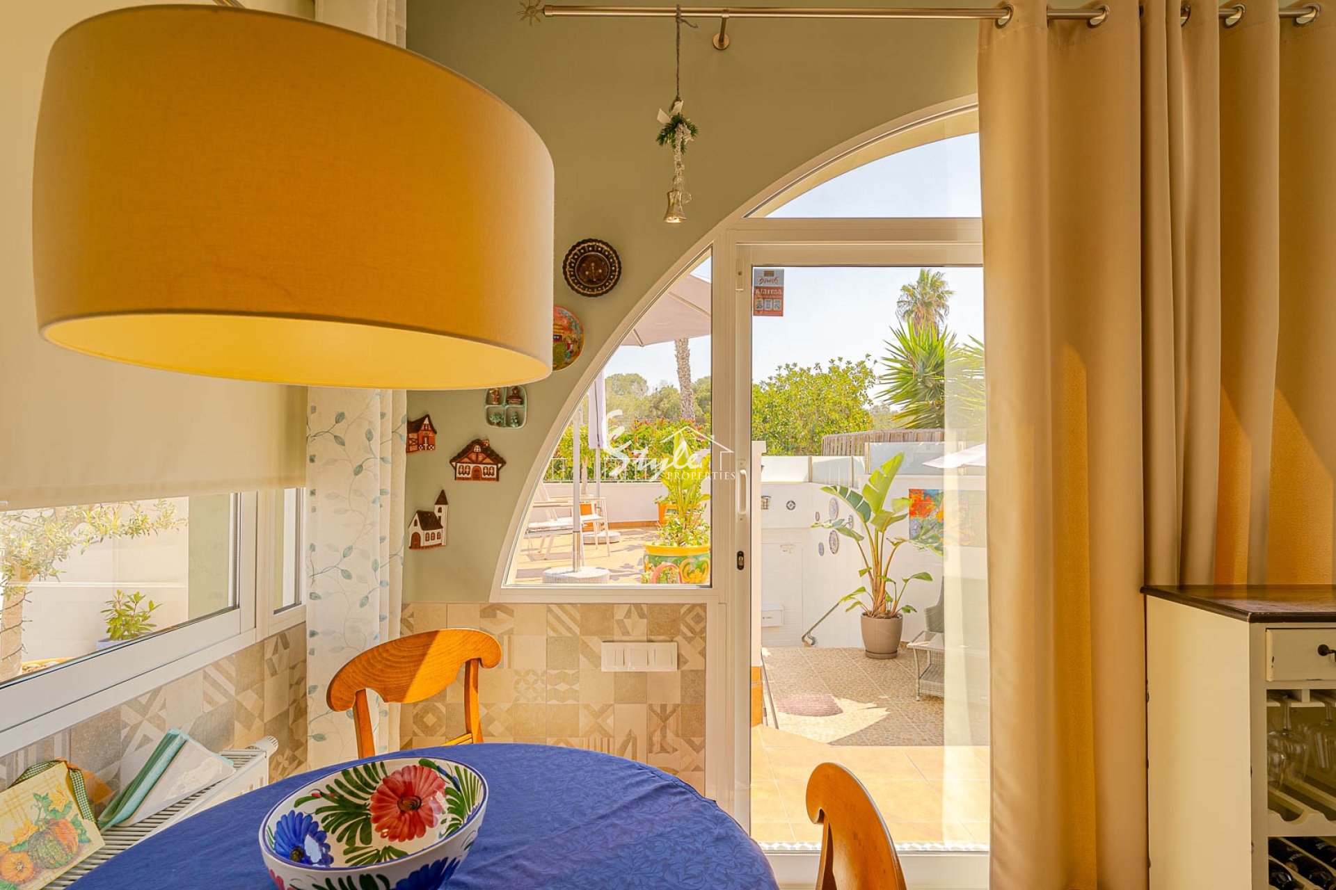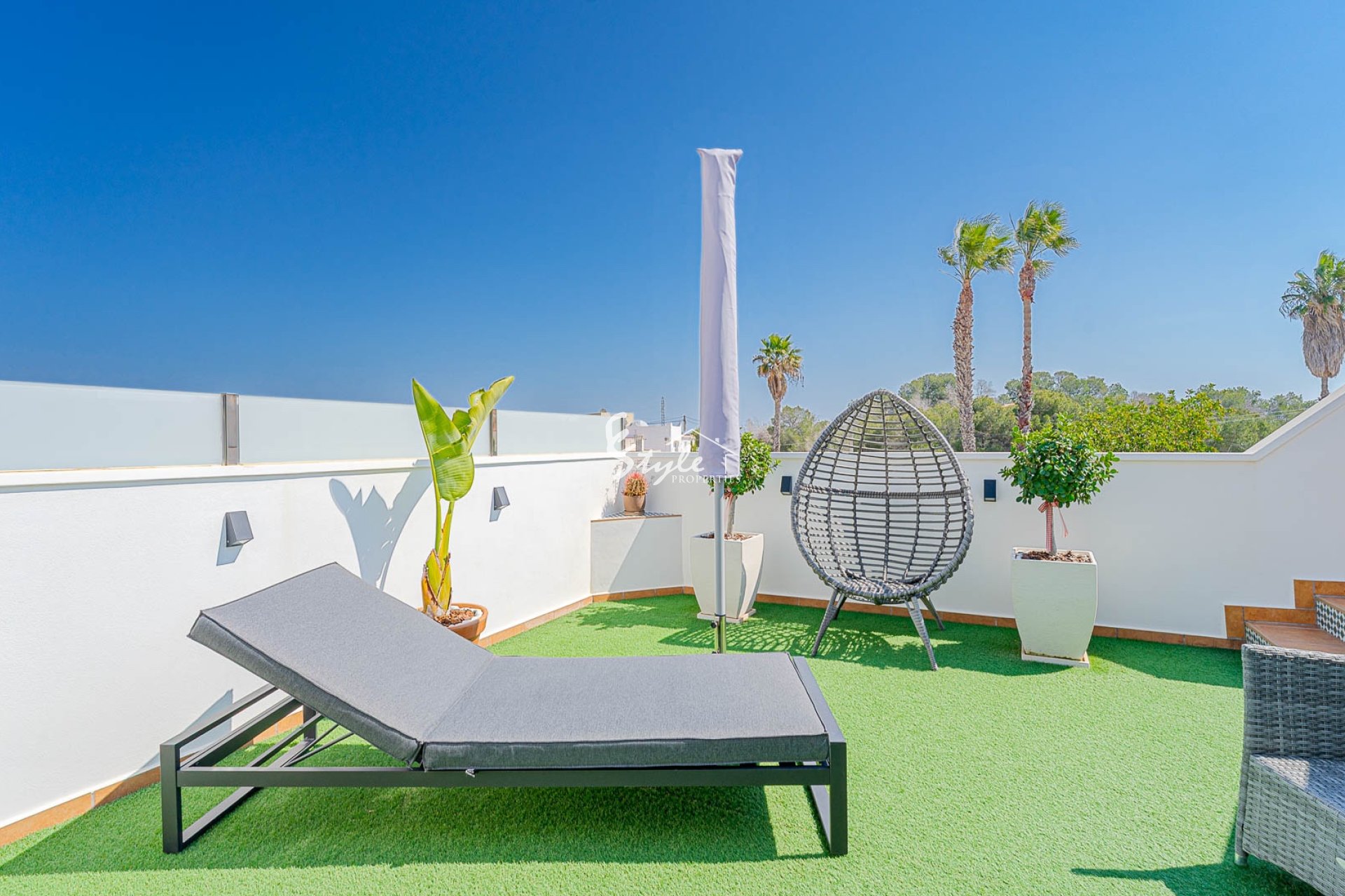 Расположен в тихом районе, ориентация на юго-запад, 2 отдельных входа. Всего 4 км до моря и 3 км до La Zenia Boulevard, есть общий бассейн.