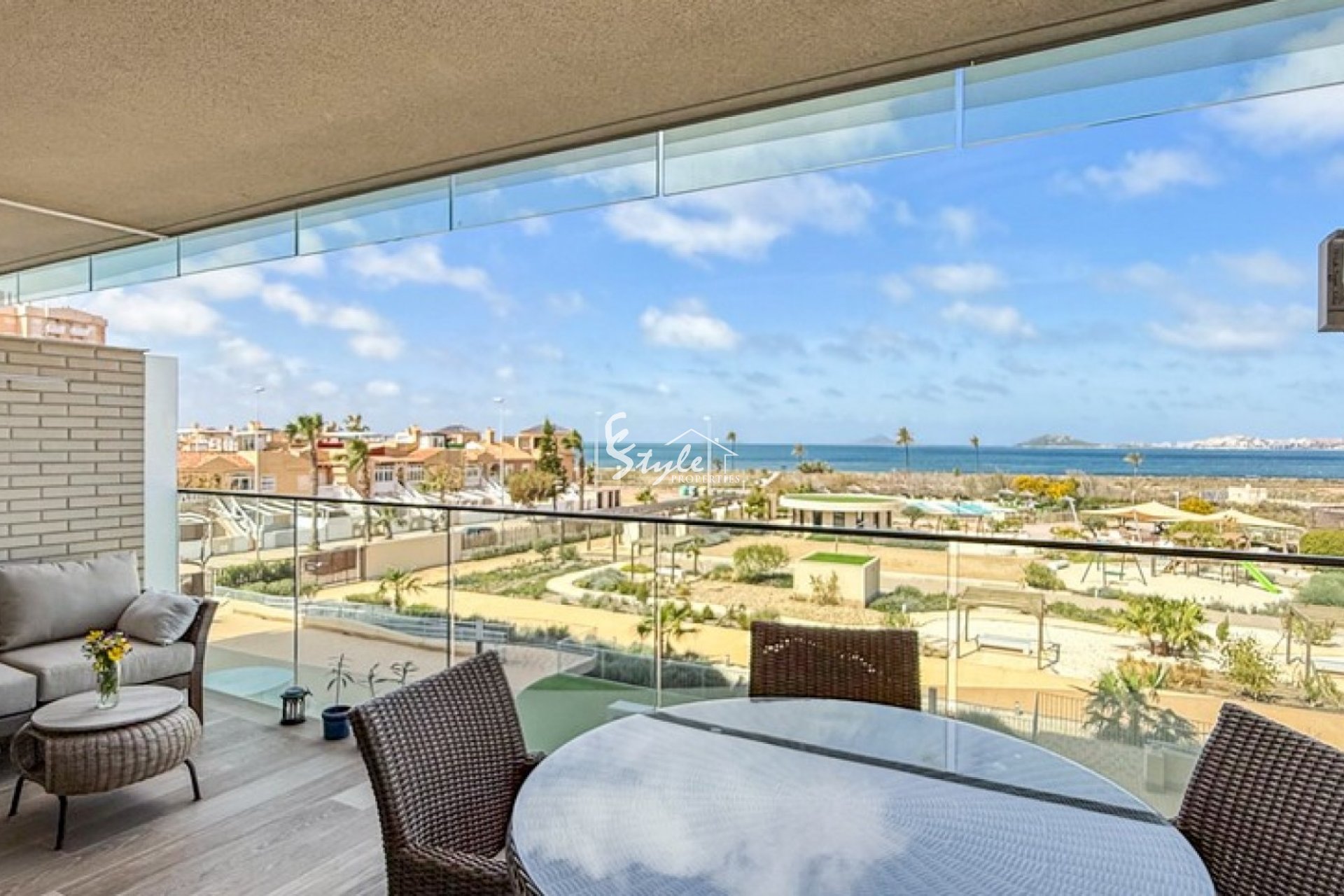 Откройте для себя комфортную жизнь у моря в этой стильной квартире на втором этаже, расположенной в престижном комплексе Los Flamencos в Playa Paraíso, Картахена. Всего в нескольких шагах от пляжа, с террасы открываются захватывающие виды на Мар Менор и Средиземное море.