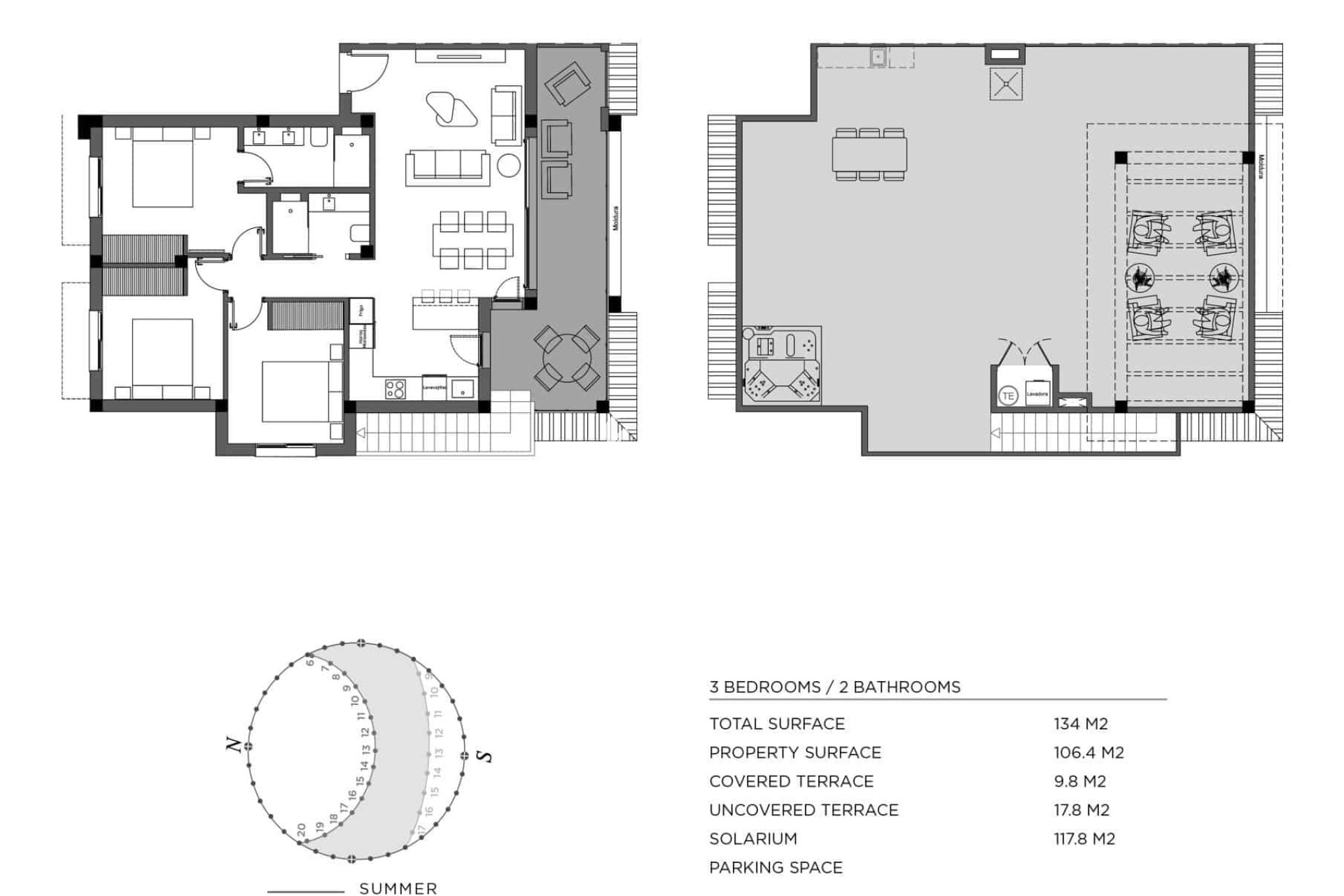 Экстерьеры этих объектов спроектированы для обеспечения открытого жилого пространства, которое дополняет интерьер домов. Каждая недвижимость имеет частный сад, идеально подходящий для наслаждения средиземноморским климатом. Кроме того, террасы предоставляют дополнительное пространство для отдыха или развлечения гостей. Включение солярия в дома позволяет наслаждаться панорамными видами и максимально использовать солнце в течение всего года. Пергола является дополнительным элементом, который обеспечивает тень и стиль, создавая уютную атмосферу для отдыха на открытом воздухе.