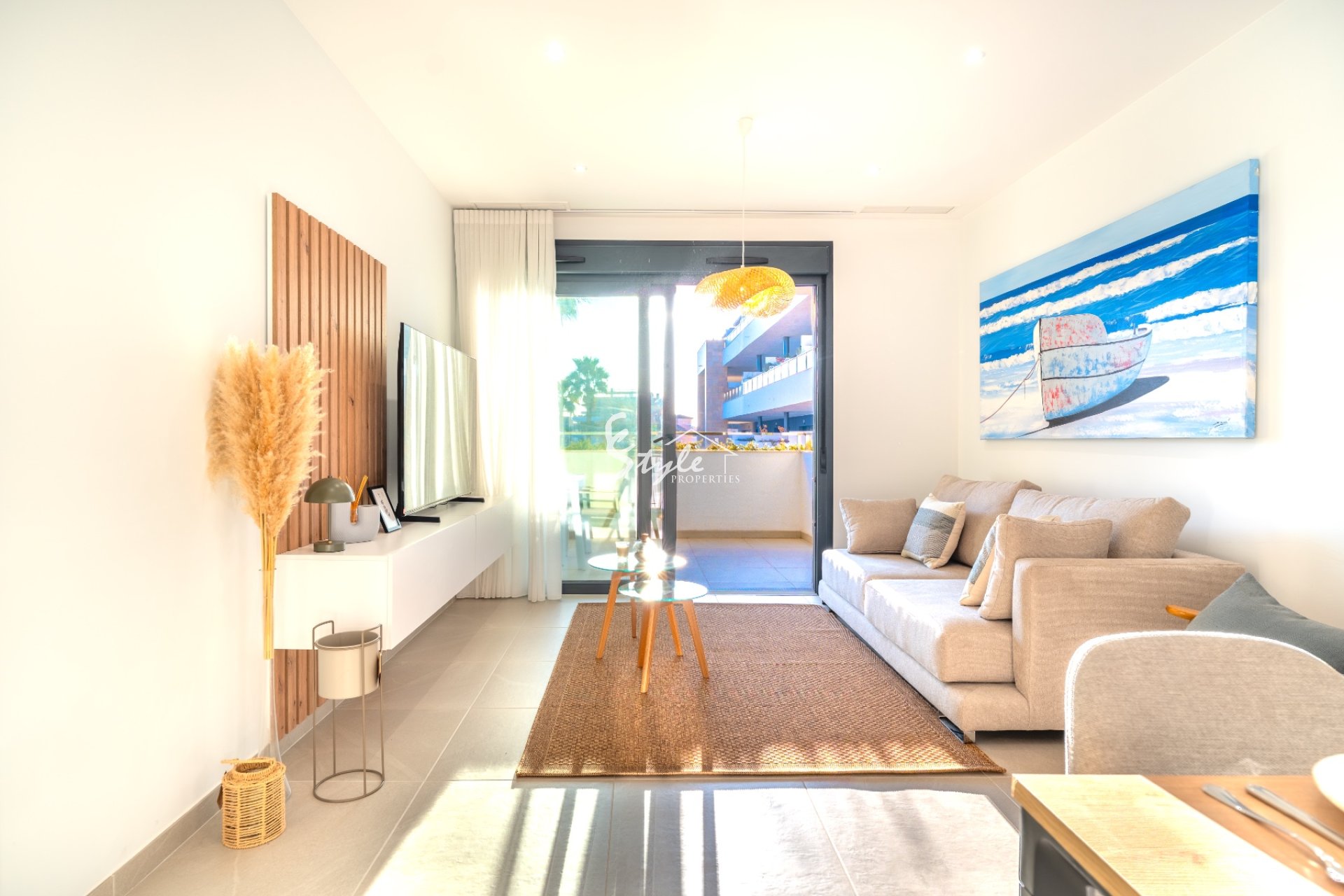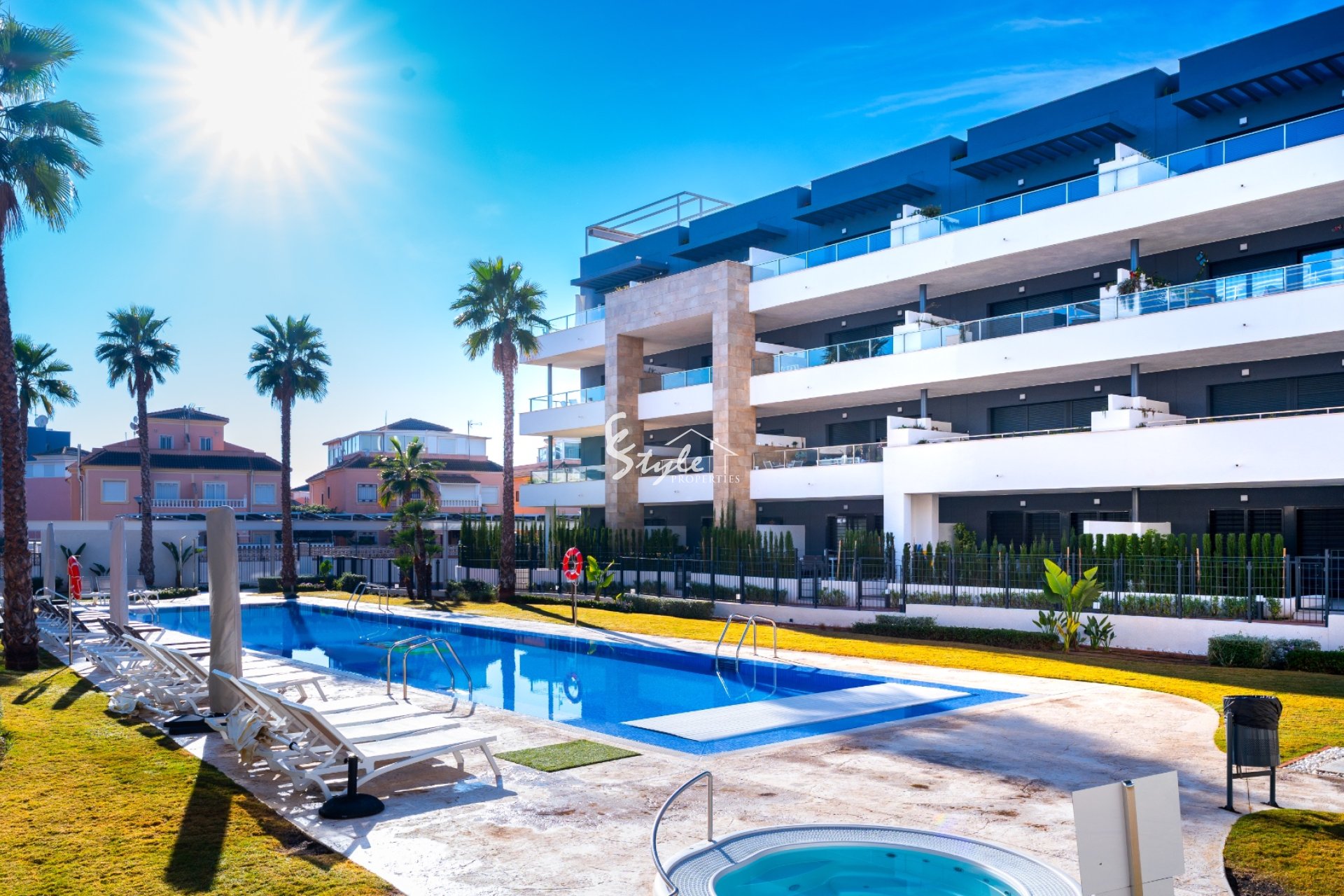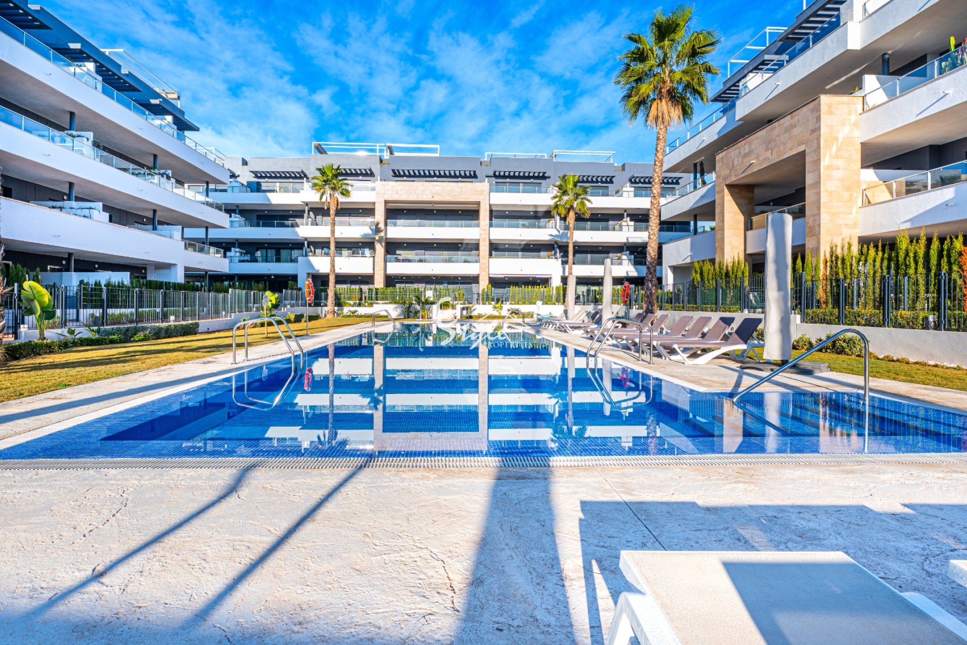 Современная квартира с 3 спальнями, просторной террасой, парковочным местом и кладовой в районе Плайя Фламенка, в престижном жилом комплексе Flamenca Village, всего в 600 метрах от моря и в 350 метрах от торгового центра Zenia Boulevard.