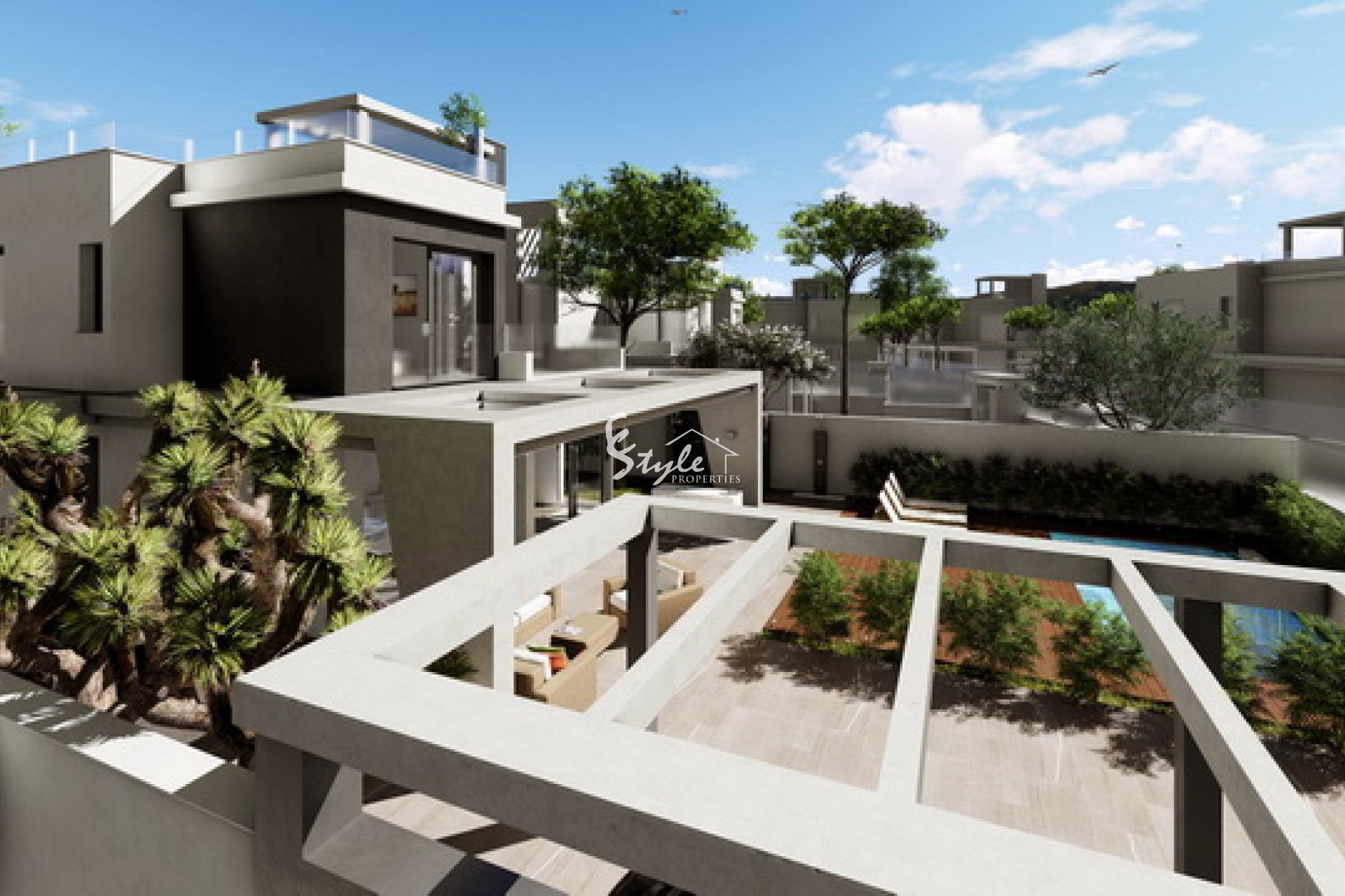 В урбанизации а прекрасно развита инфраструктура: бары, рестораны, медицинские учреждения, школы, супермаркеты, автобусные остановки, а также фитнес-центры и спортивные комплексы с бассейнами. Примерно в 20 минутах езды - международный аэропорт Аликанте. Отличный вариант для проживания с семьей в Испании