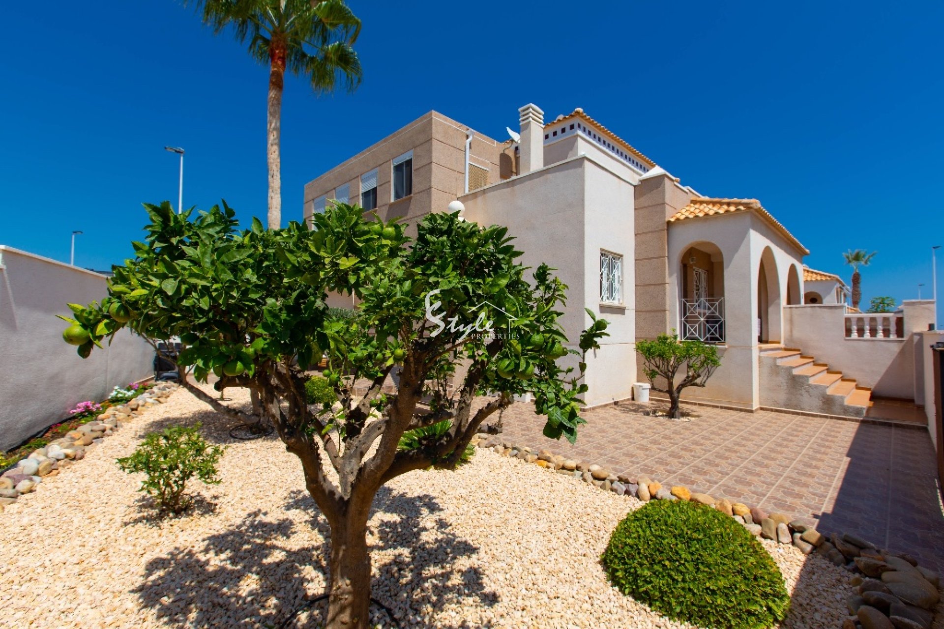 На прилегающей к дому территории есть ухоженный сад с цитрусовыми и оливковыми деревьями, пальмой .... В урбанизации Altos de la Bahia для вашего удобства есть общий бассейн. До моря и пляжа 1,5 км.Дом расположен в отличном районе, рядом с удобствами, магазинами, супермаркетами, школой, детскими и спортивными площадками и остановками транспорта.